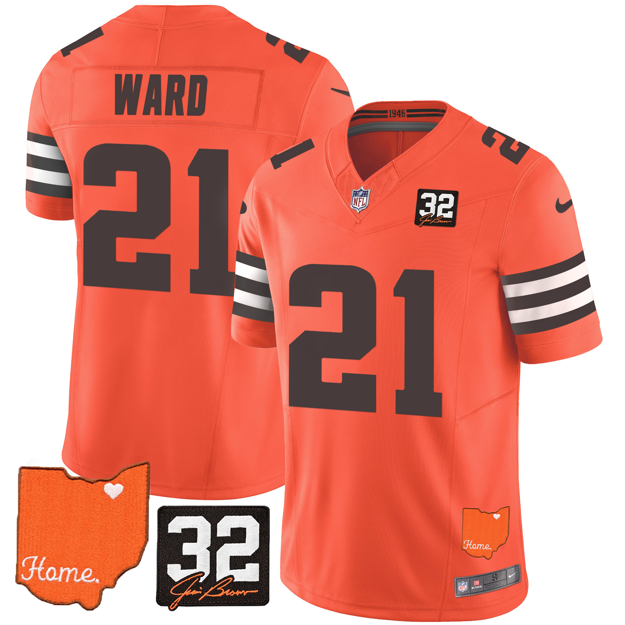 Men’s Cleveland Browns #32 Jim Brown Memorial & Home Patch Jersey – All Stitched