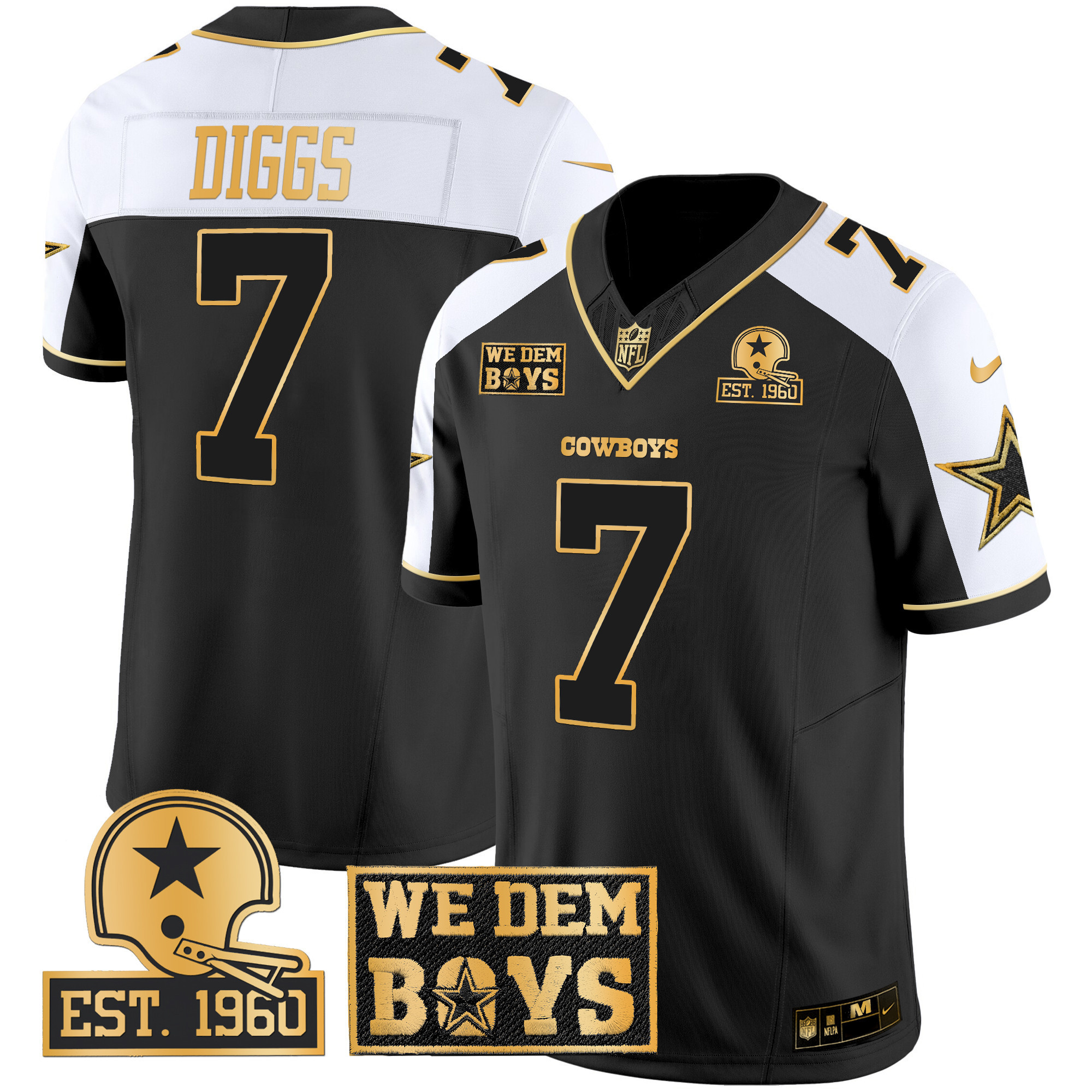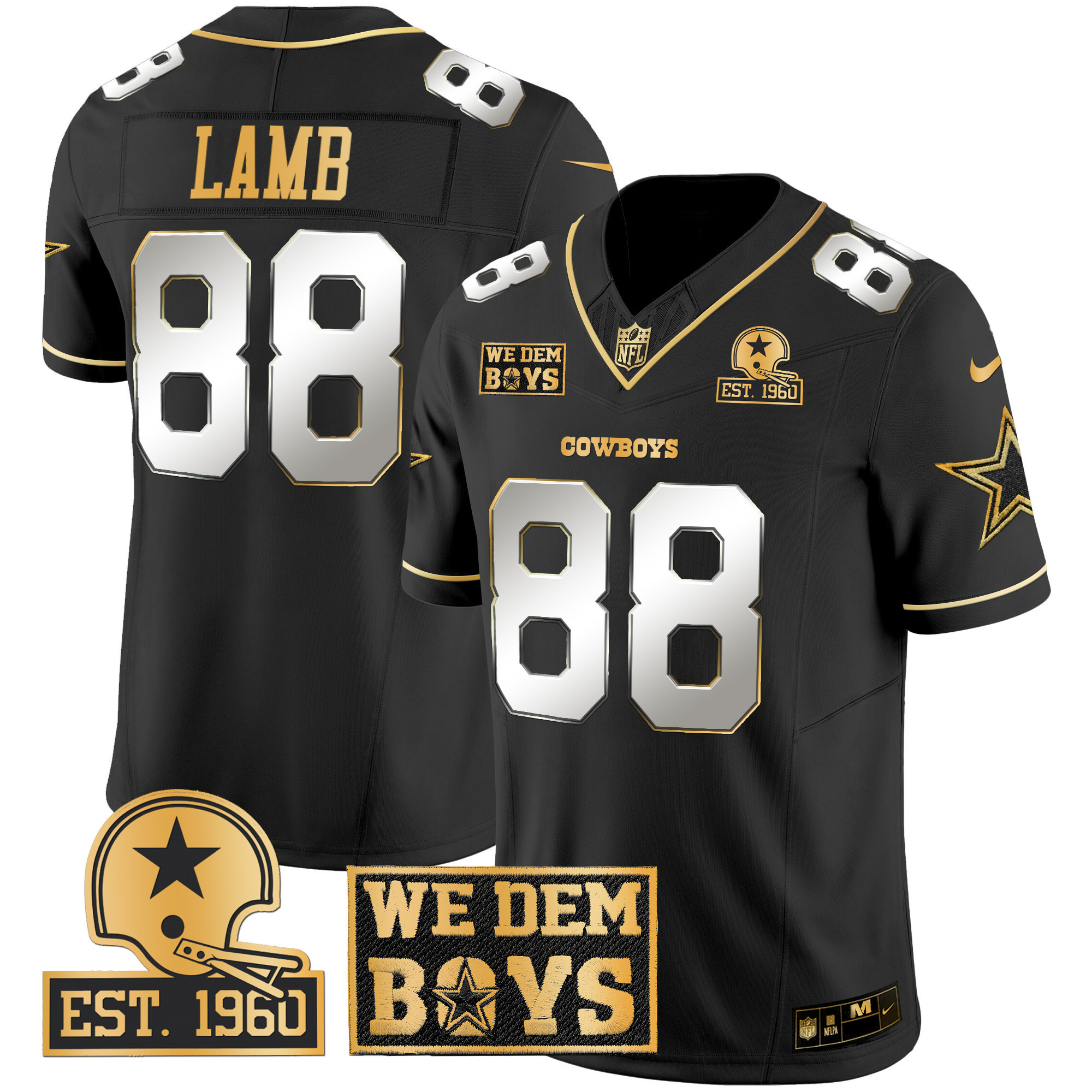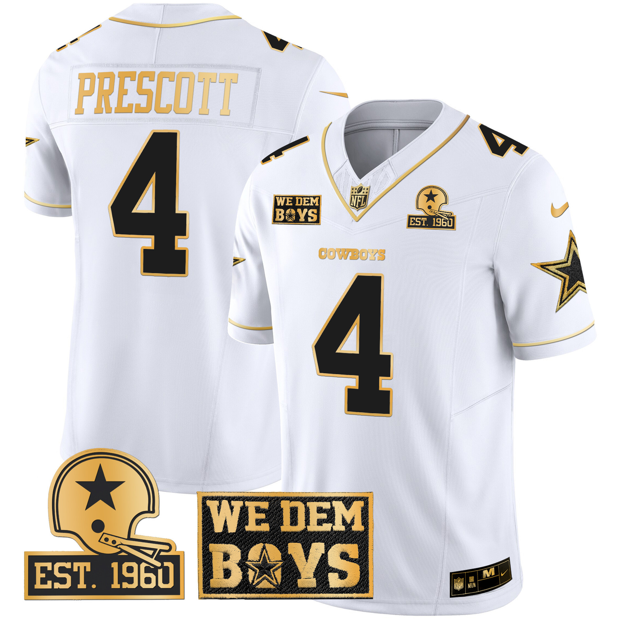 Men’s Dallas Cowboys Est. 1960 & We Dem Boyz Patch Gold Vapor Limited Jersey – All Stitched