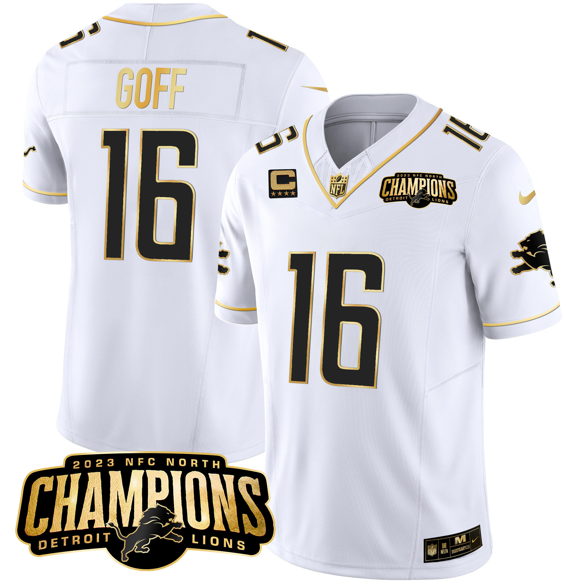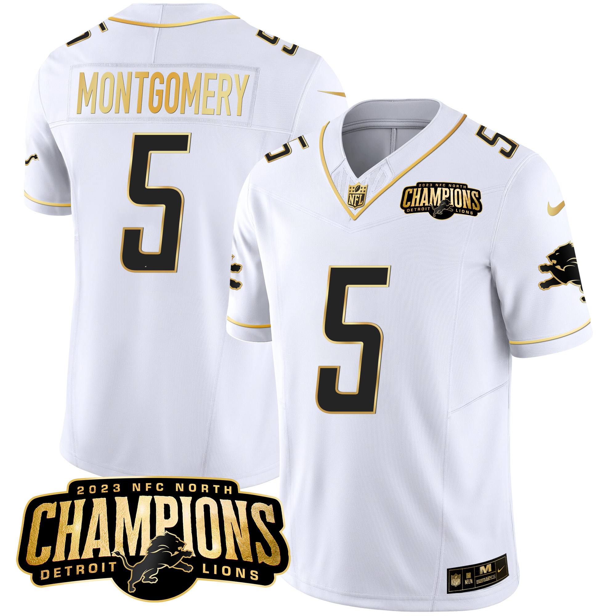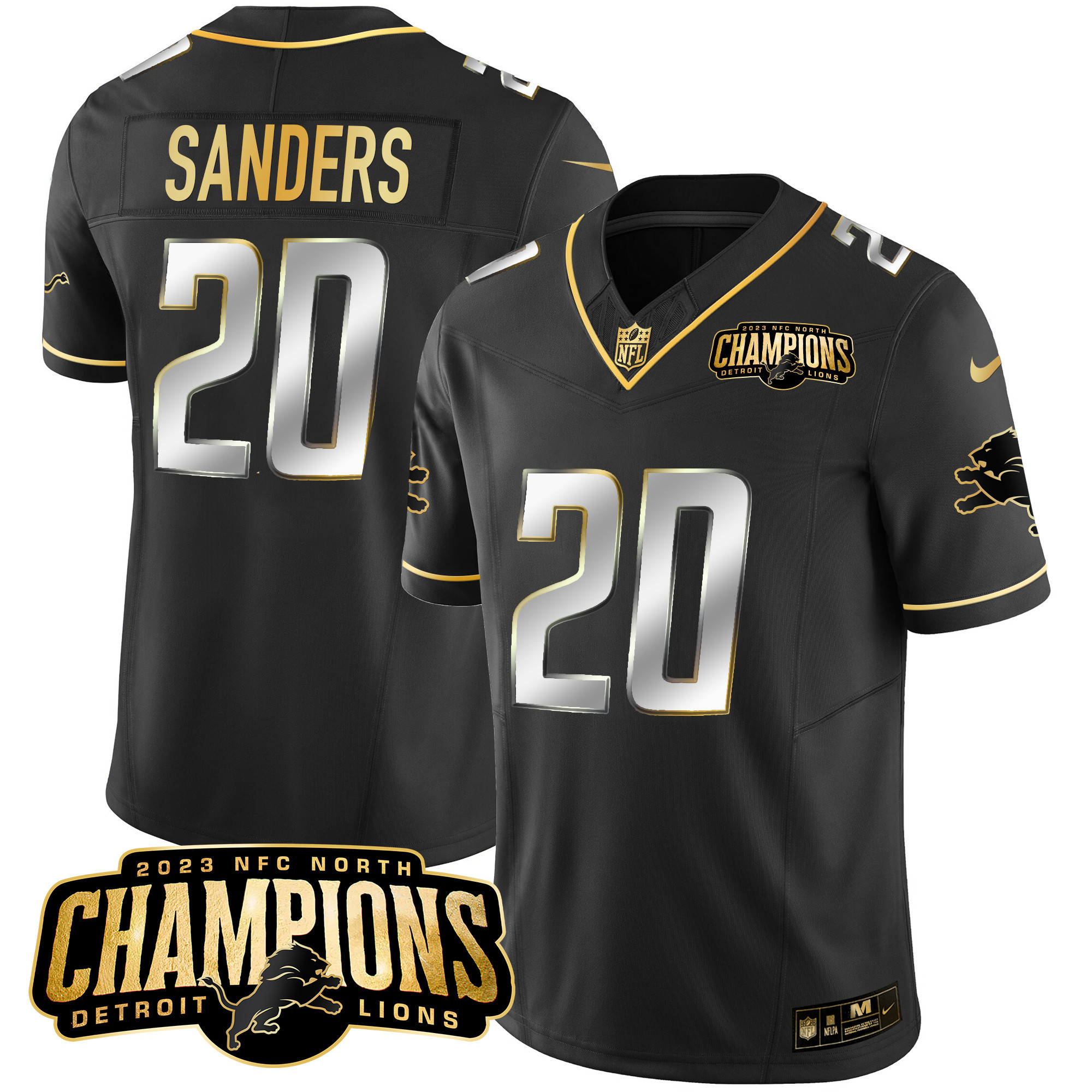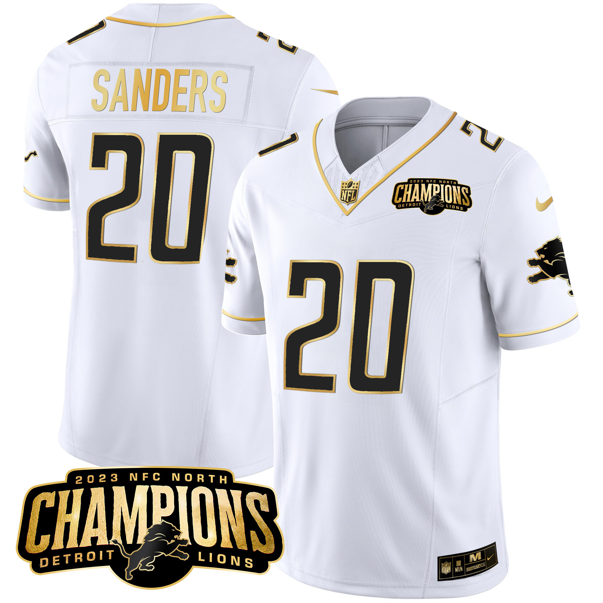 Men’s Detroit Lions 2023 NFC North Champions Patch Gold Vapor Jersey – All Stitched
