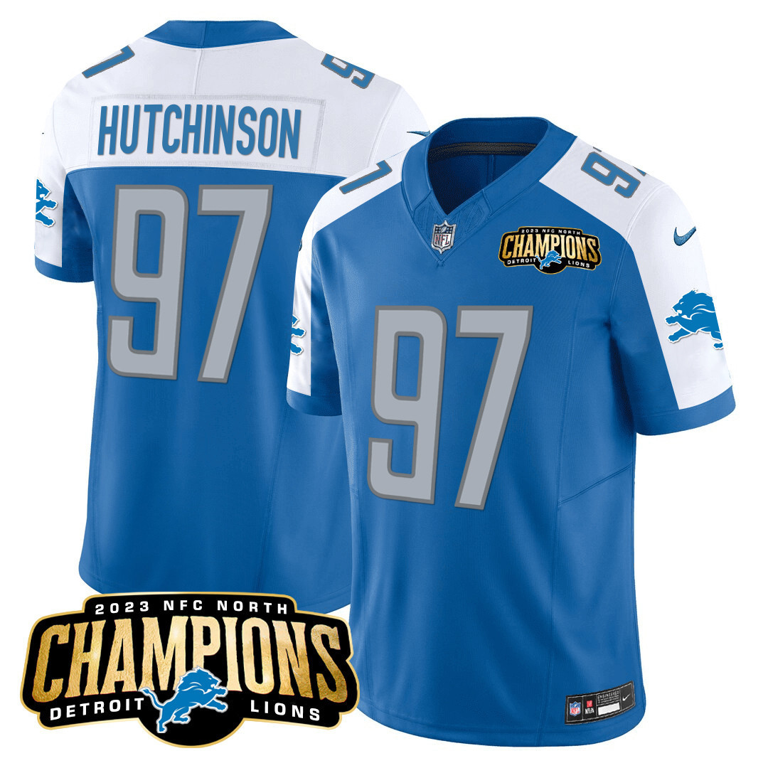Men’s Detroit Lions 2023 NFC North Champions Patch Vapor Jersey – All Stitched