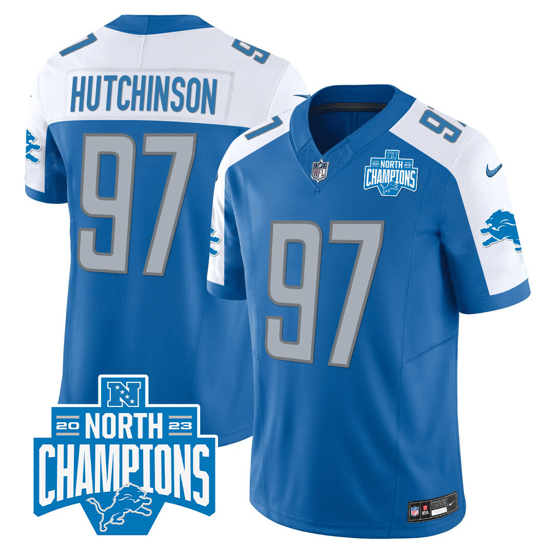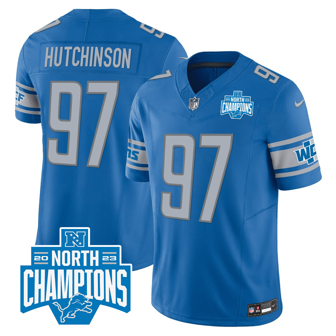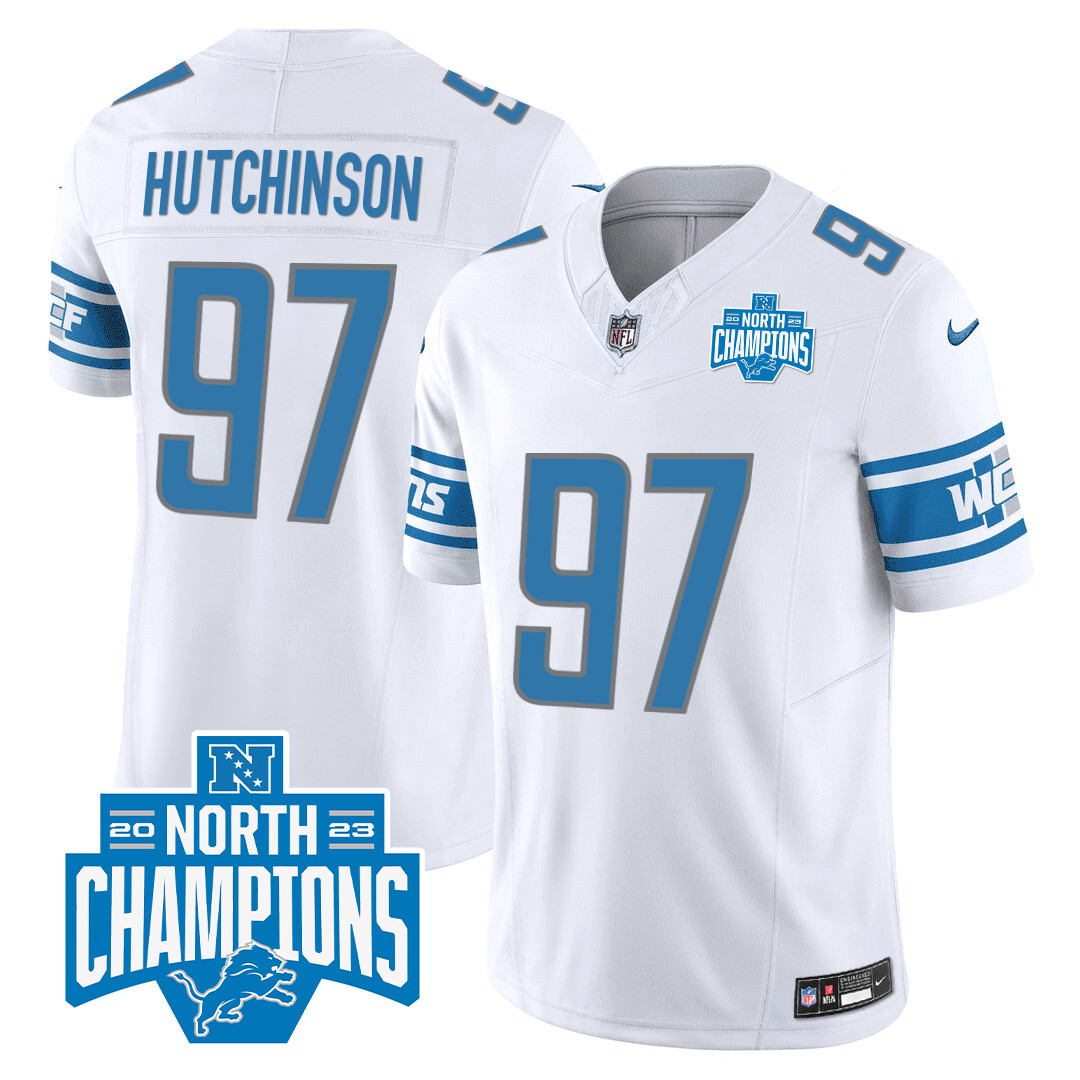 Men’s Detroit Lions 2023 NFC North Division Champions Patch Vapor Jersey – All Stitched