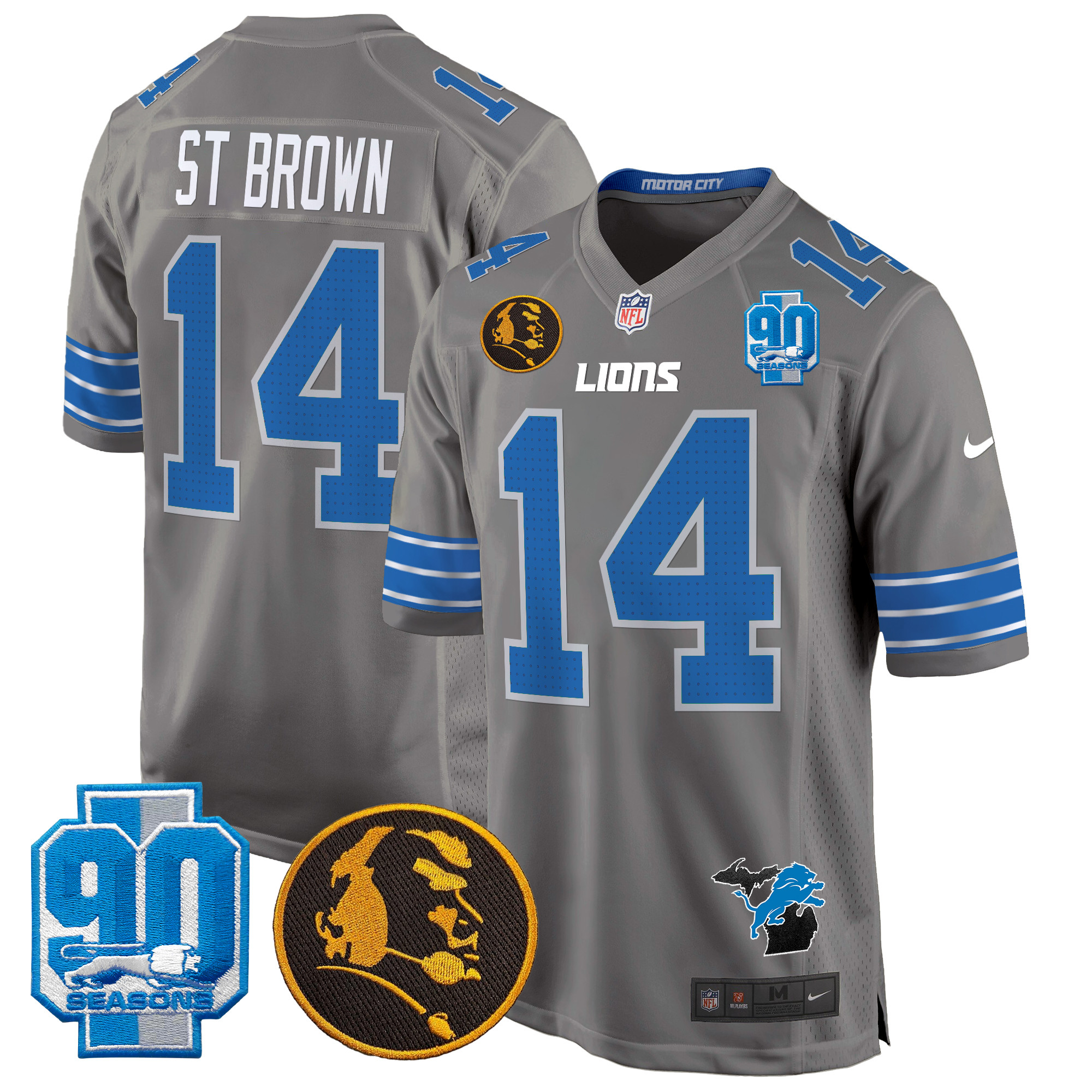 Men’s Detroit Lions 2024 90th & John Madden Patch Game Jersey – All Stitched