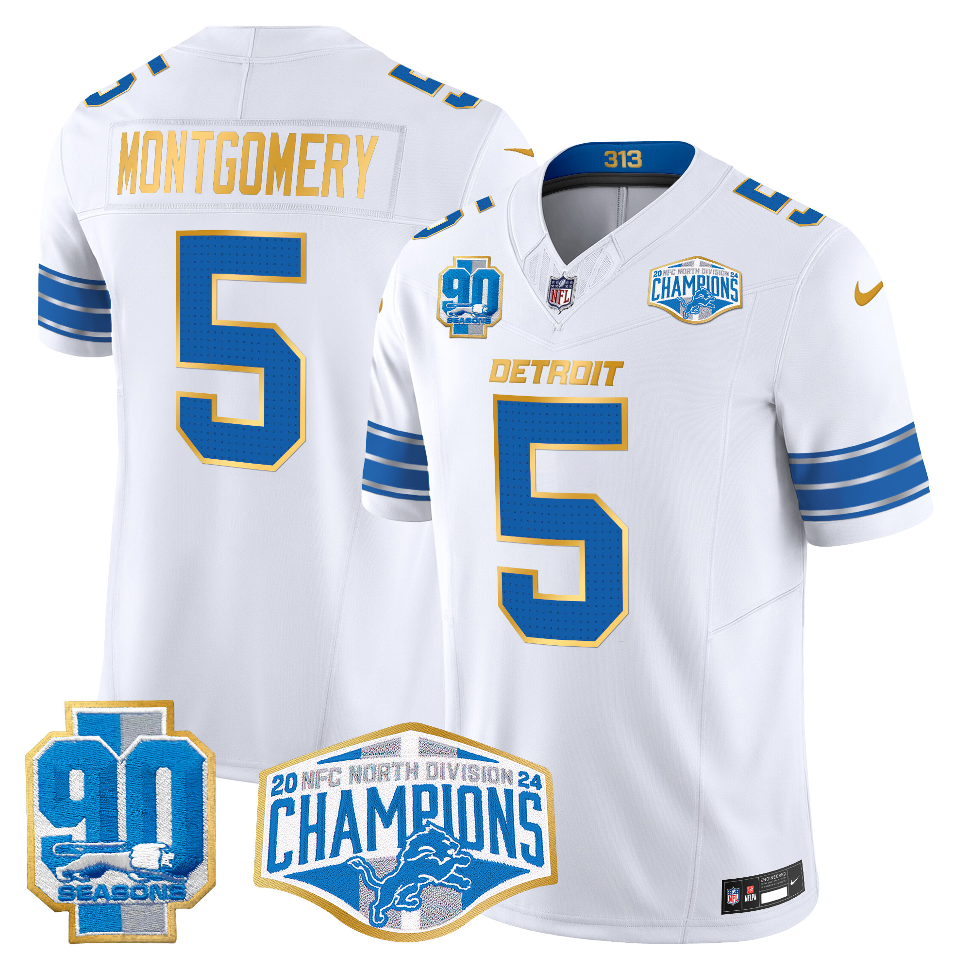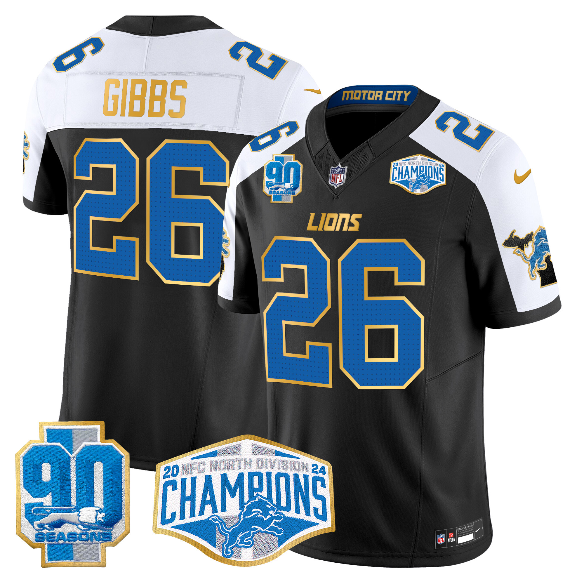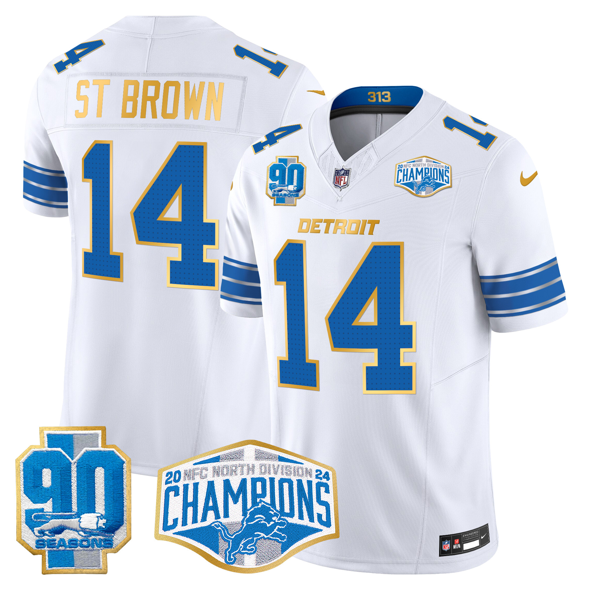 Men’s Detroit Lions 2024 NFC North Division Champions Patch Gold Trim Vapor Limited Jersey – All Stitched