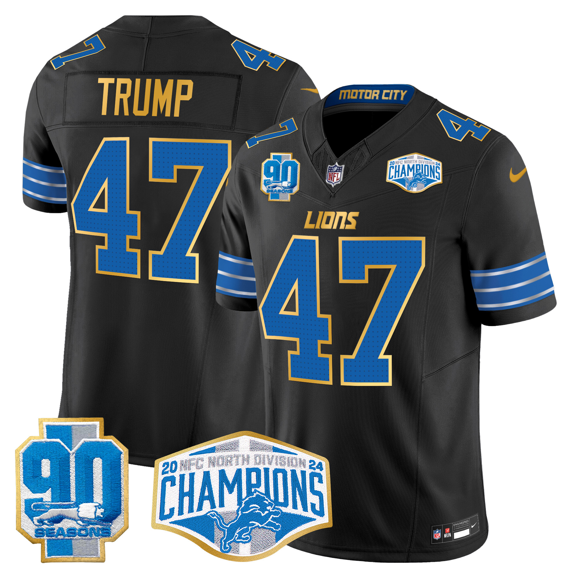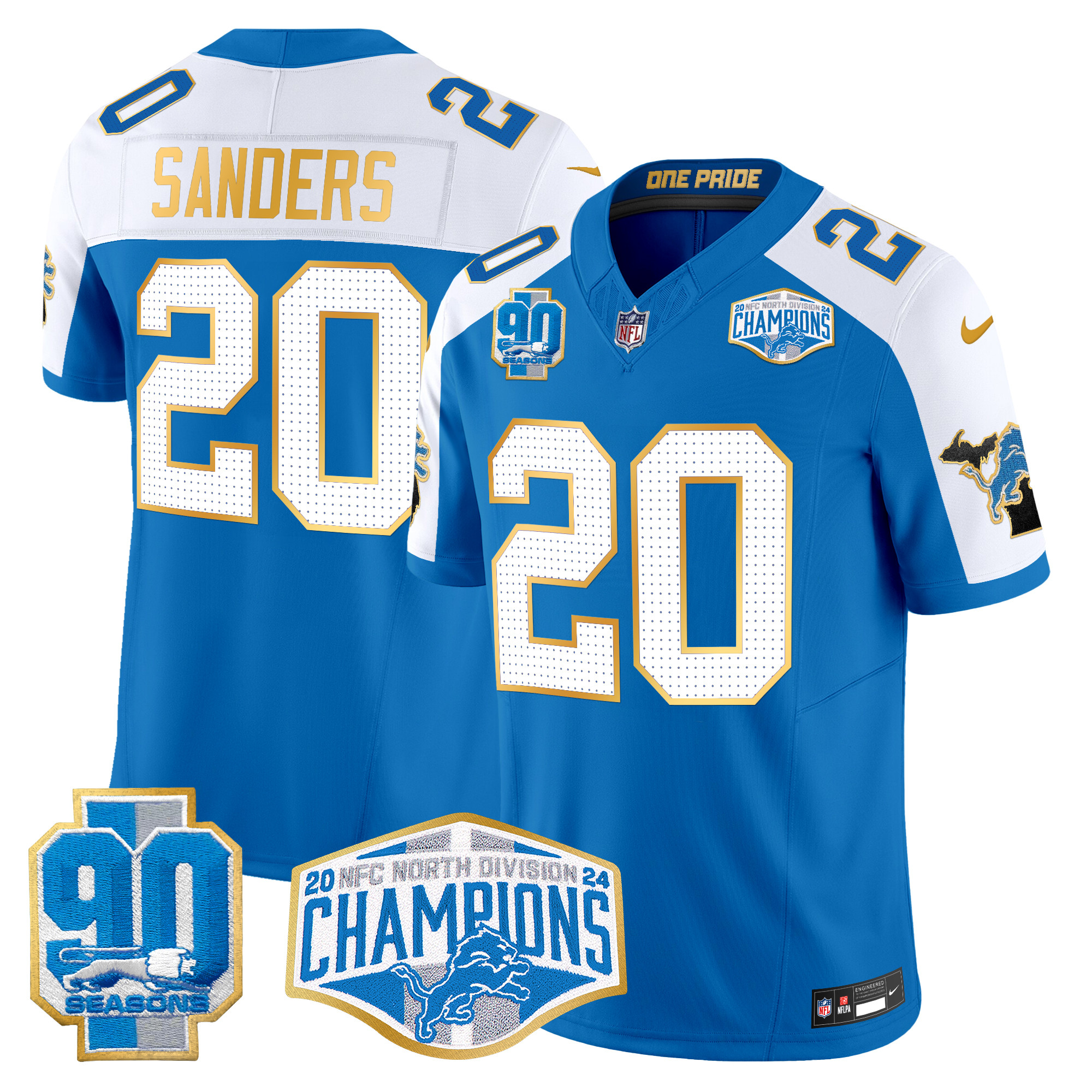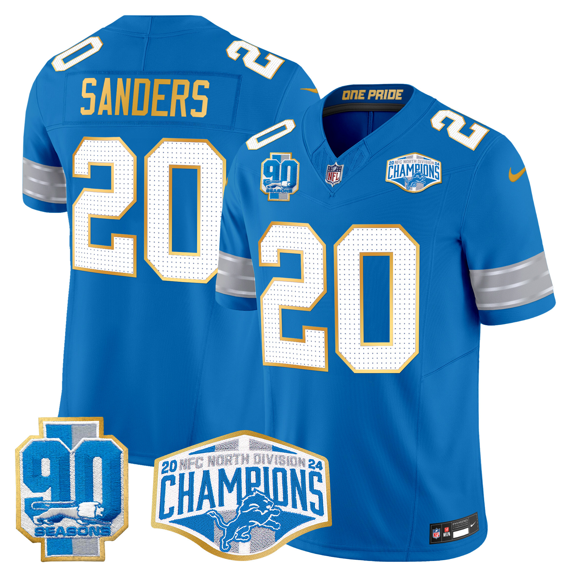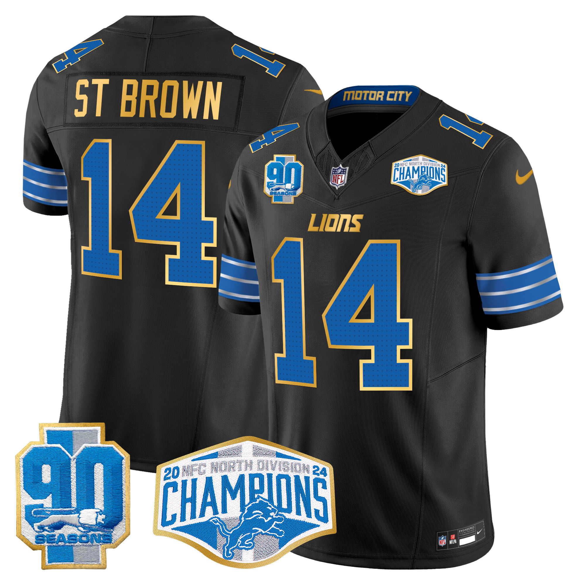 Men’s Detroit Lions 2024 NFC North Division Champions Patch Gold Trim Vapor Limited Jersey – All Stitched