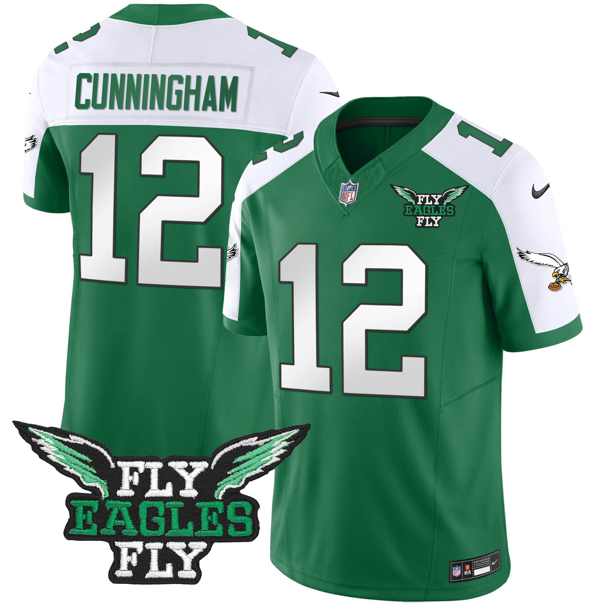 Men’s Fly Philadelphia Eagles Fly Patch Throwback Kelly Green Vapor Jersey – All Stitched