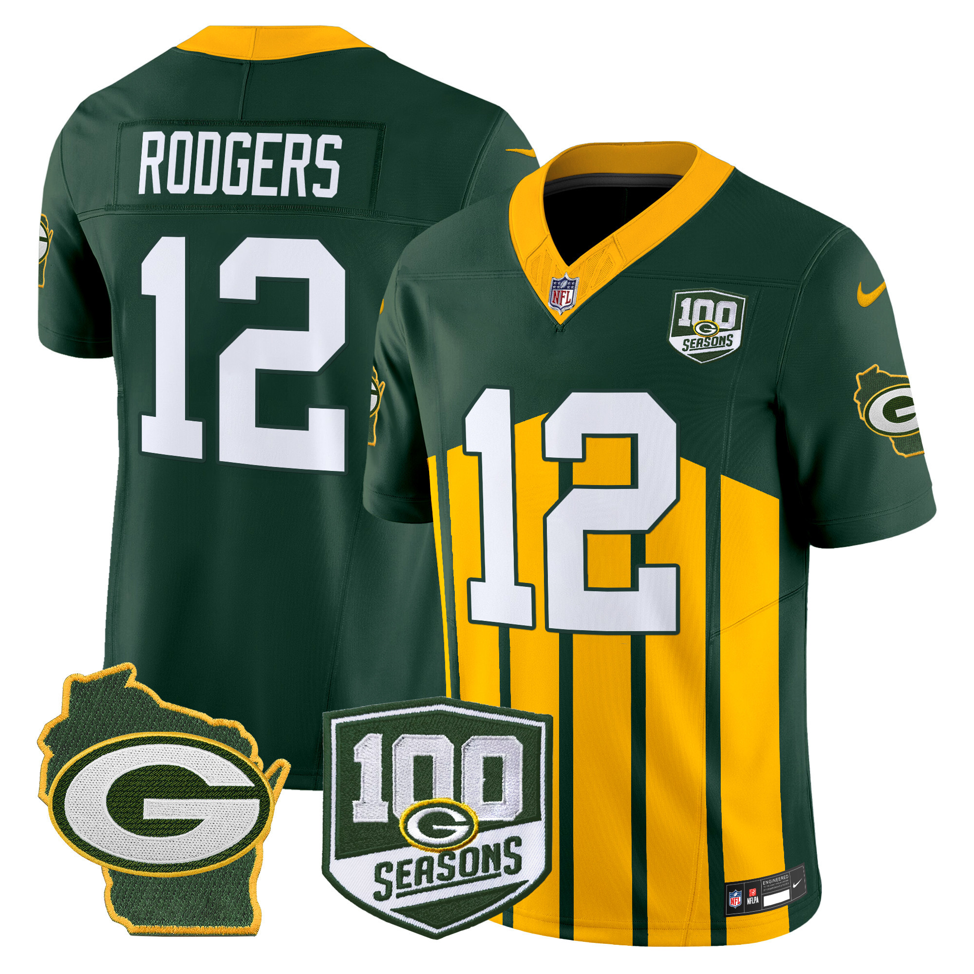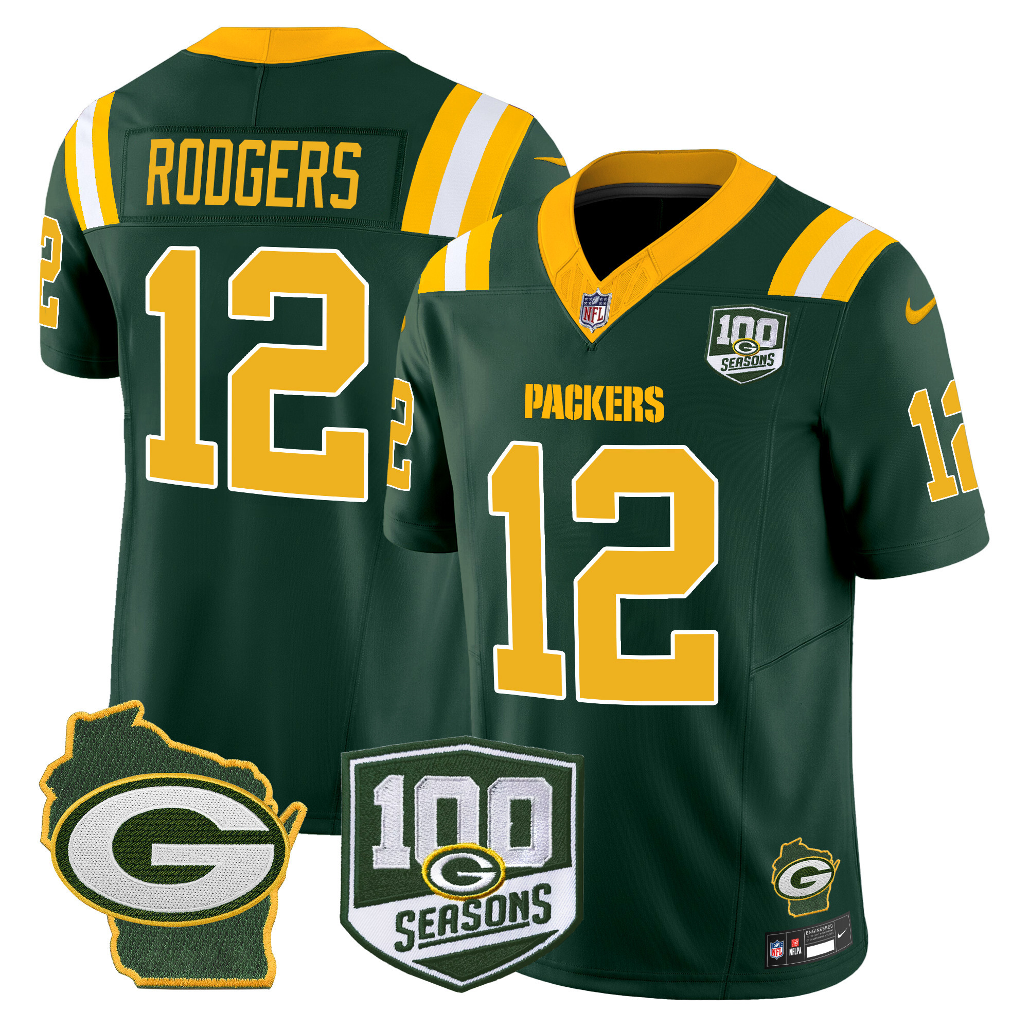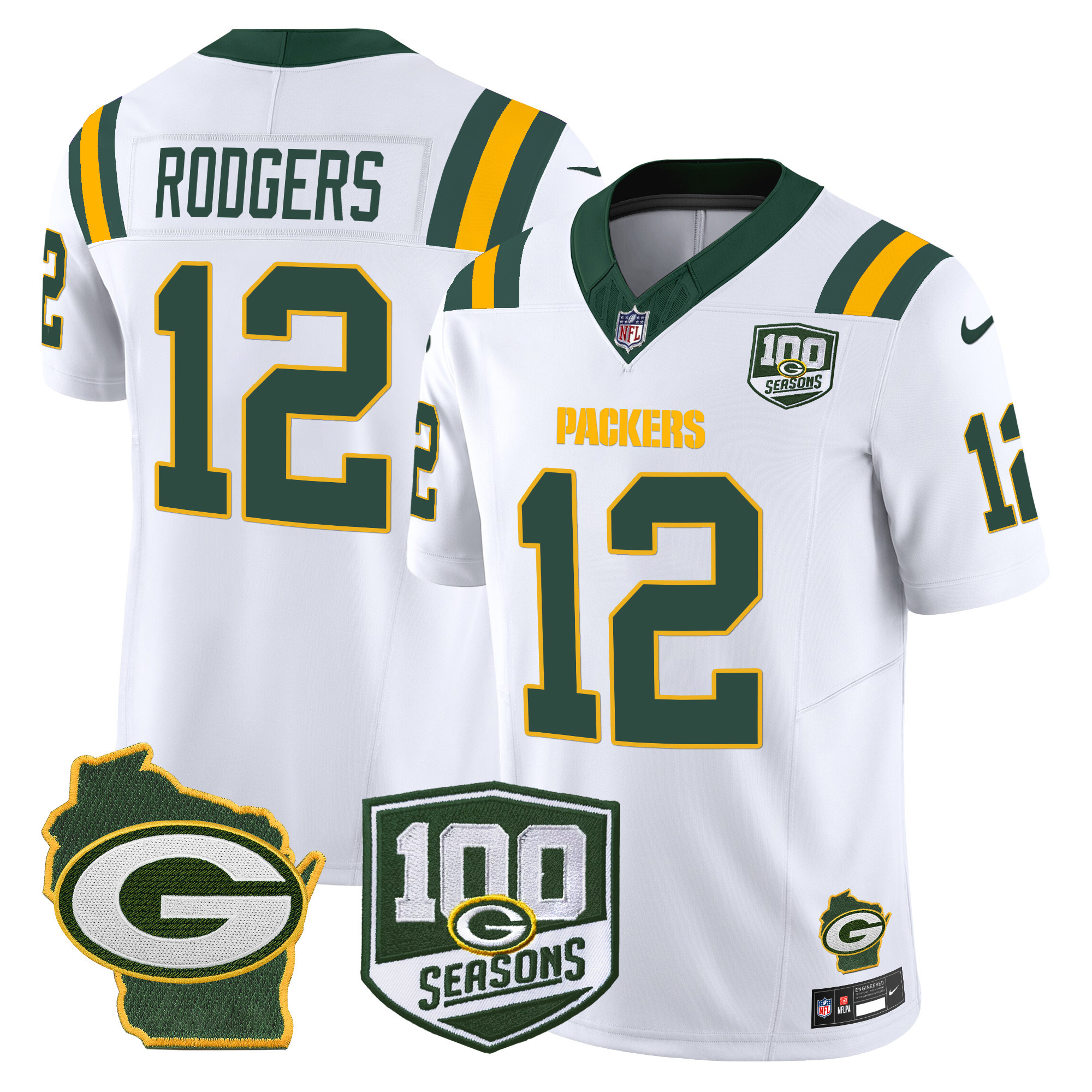 Men’s Green Bay Packers 100th Season & Home Patch Vapor Limited Jersey – All Stitched