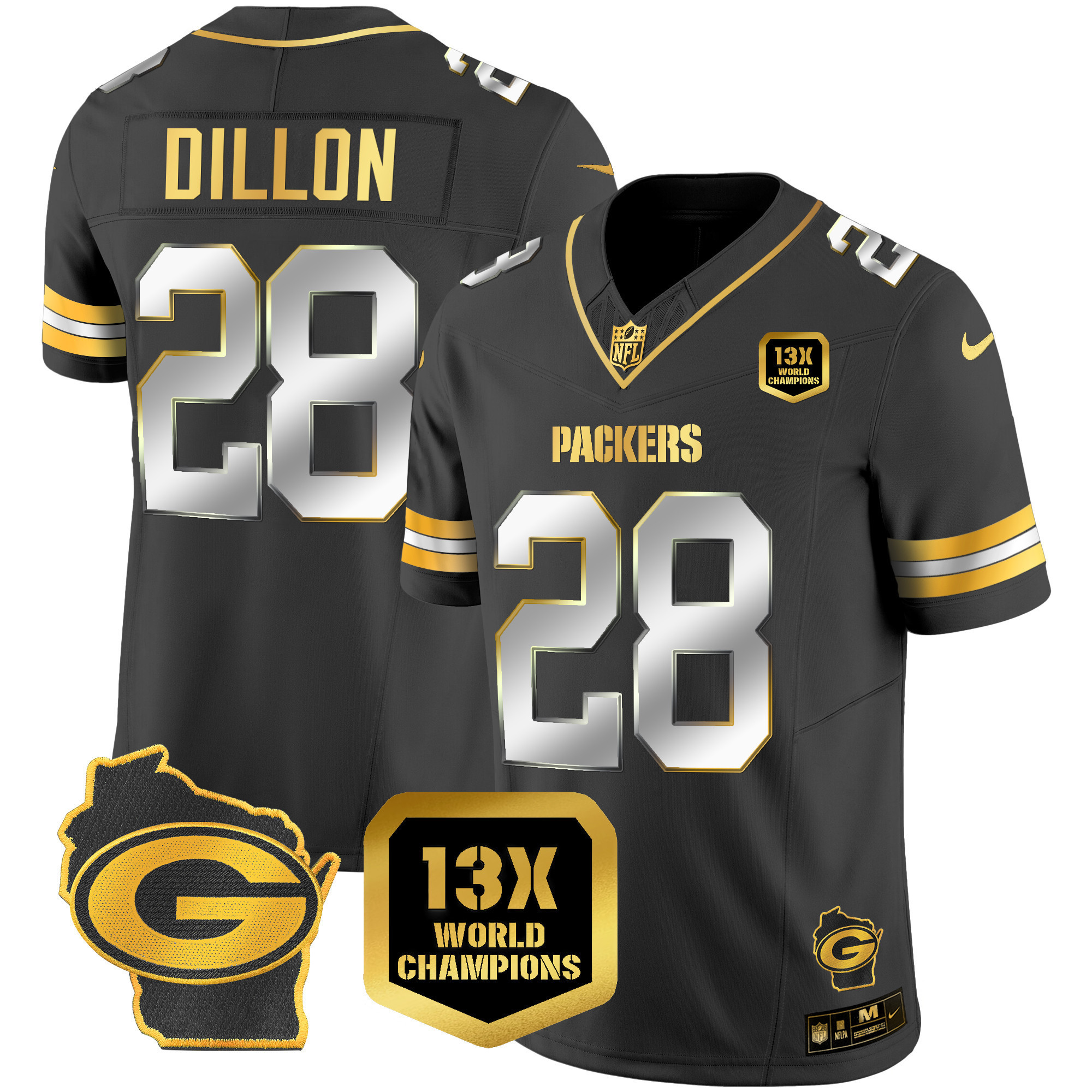Men’s Green Bay Packers 13 Time World Champions & Home Patch Gold Vapor Jersey � All Stitched