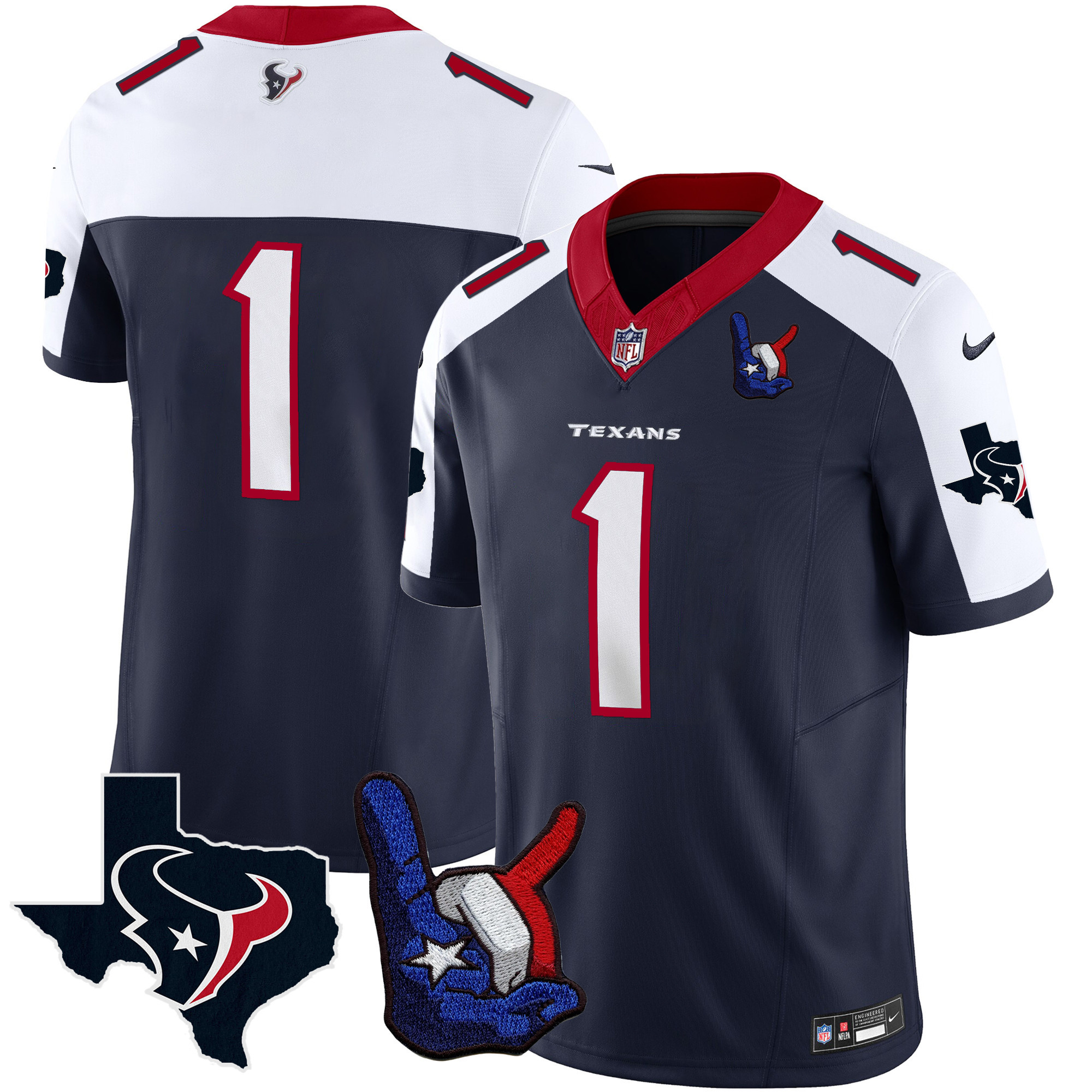 Men’s Houston Texans Hand Sign Throwing Up The H Vapor Jersey – All Stitched