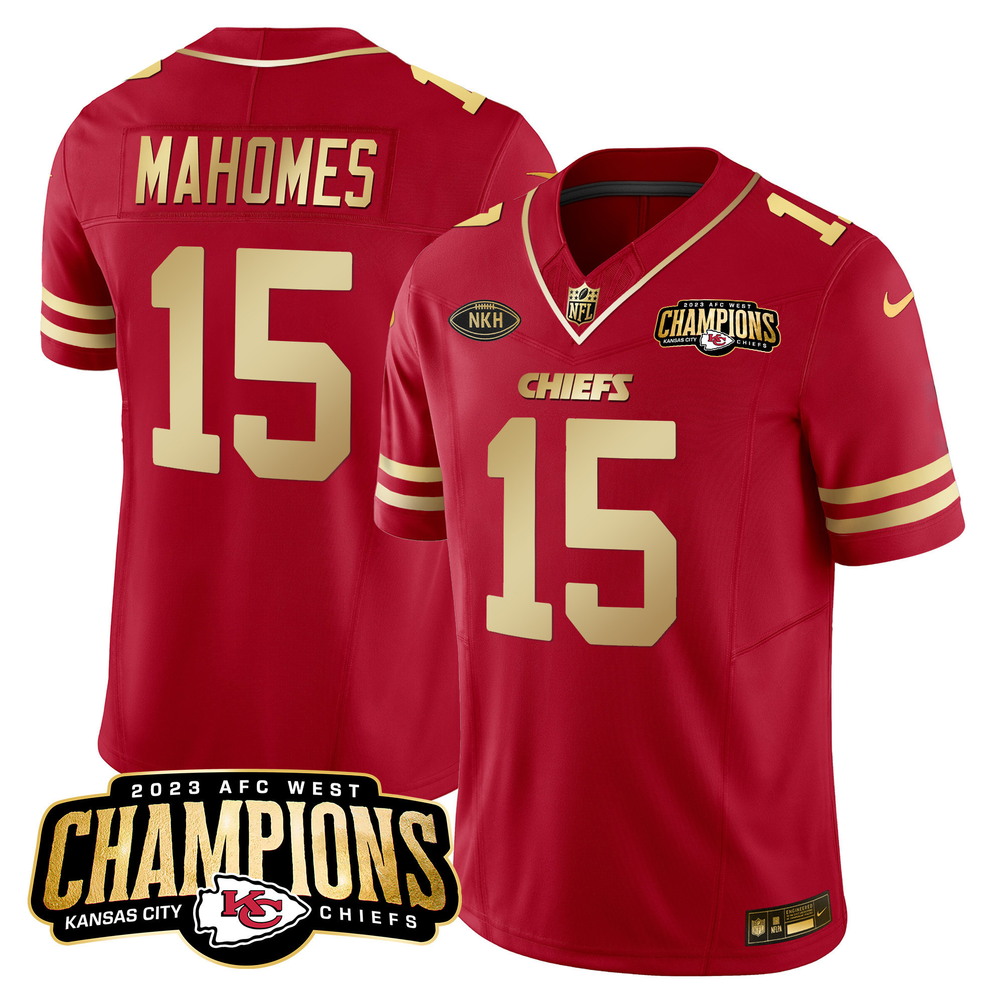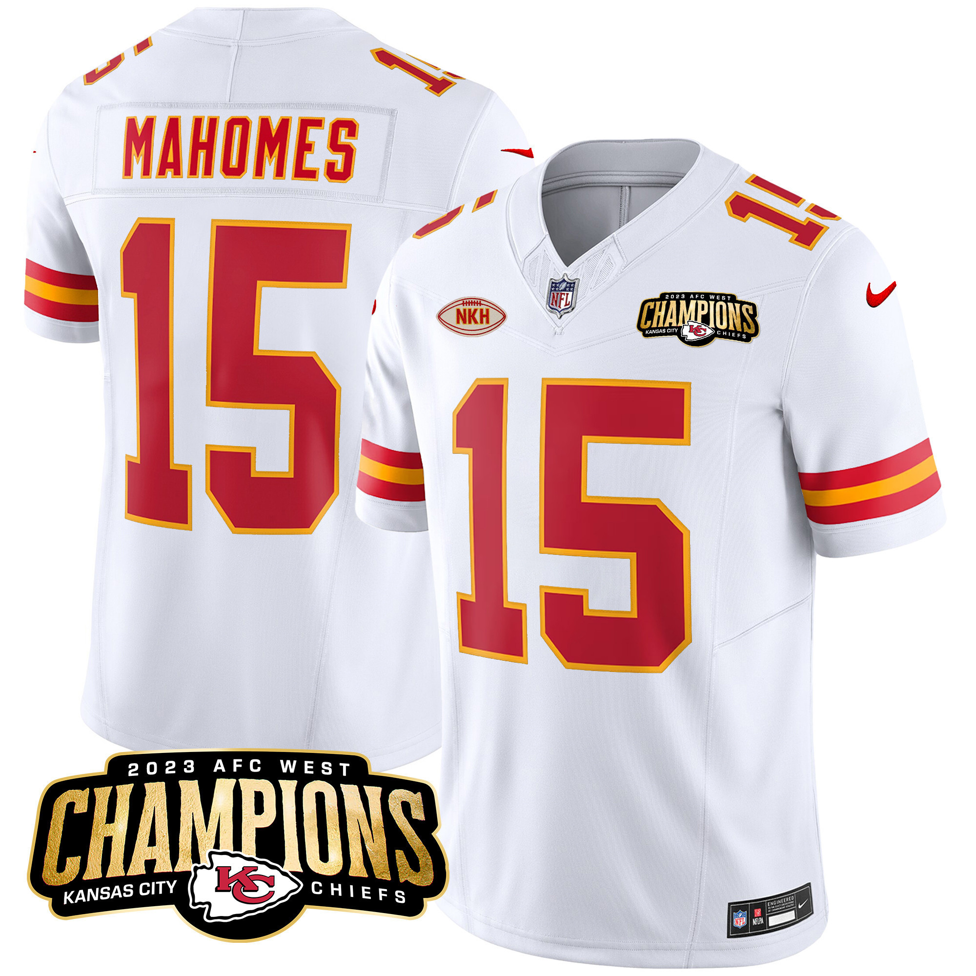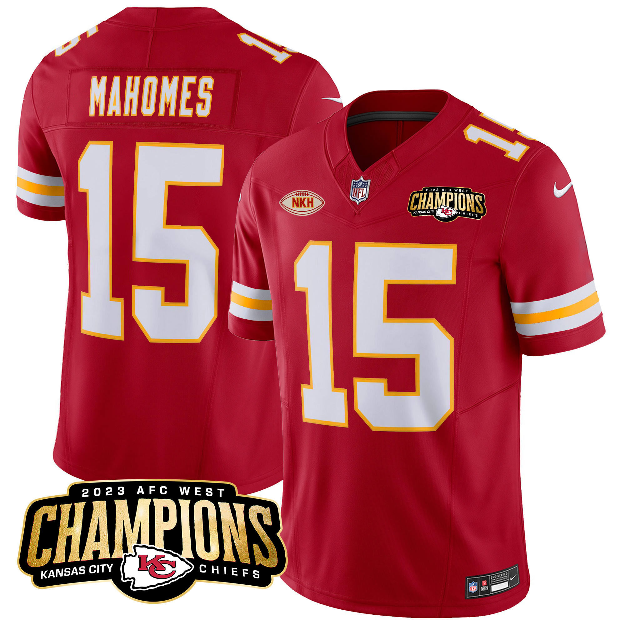 Men’s Kansas City Chiefs 2023 AFC West Champions Patch Vapor Limited Jersey – All Stitched