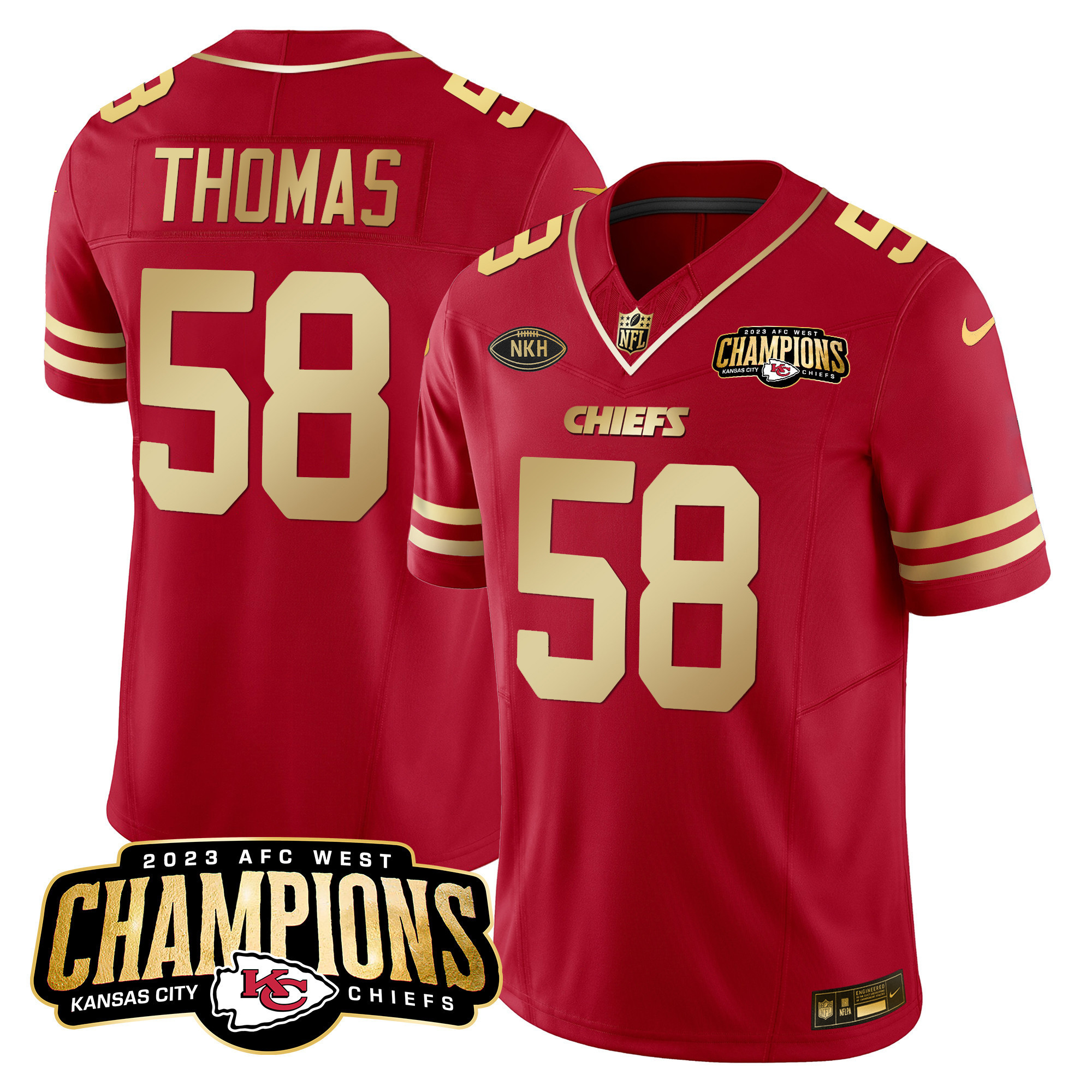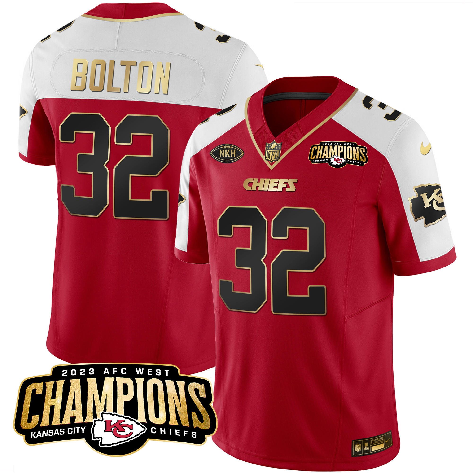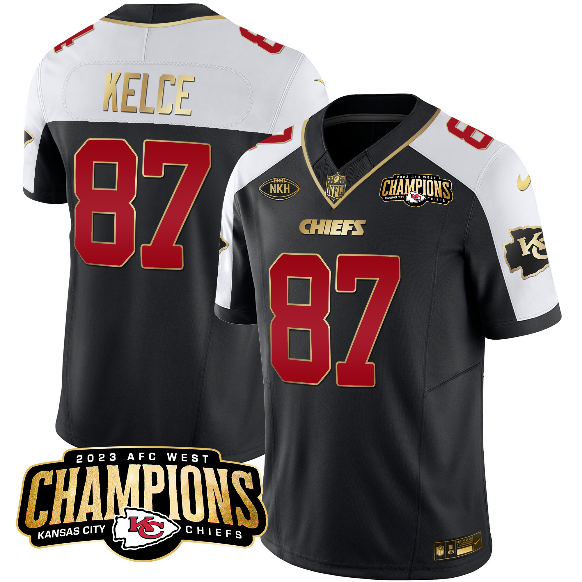 Men’s Kansas City Chiefs 2023 AFC West Champions Patch Vapor Limited Jersey – All Stitched