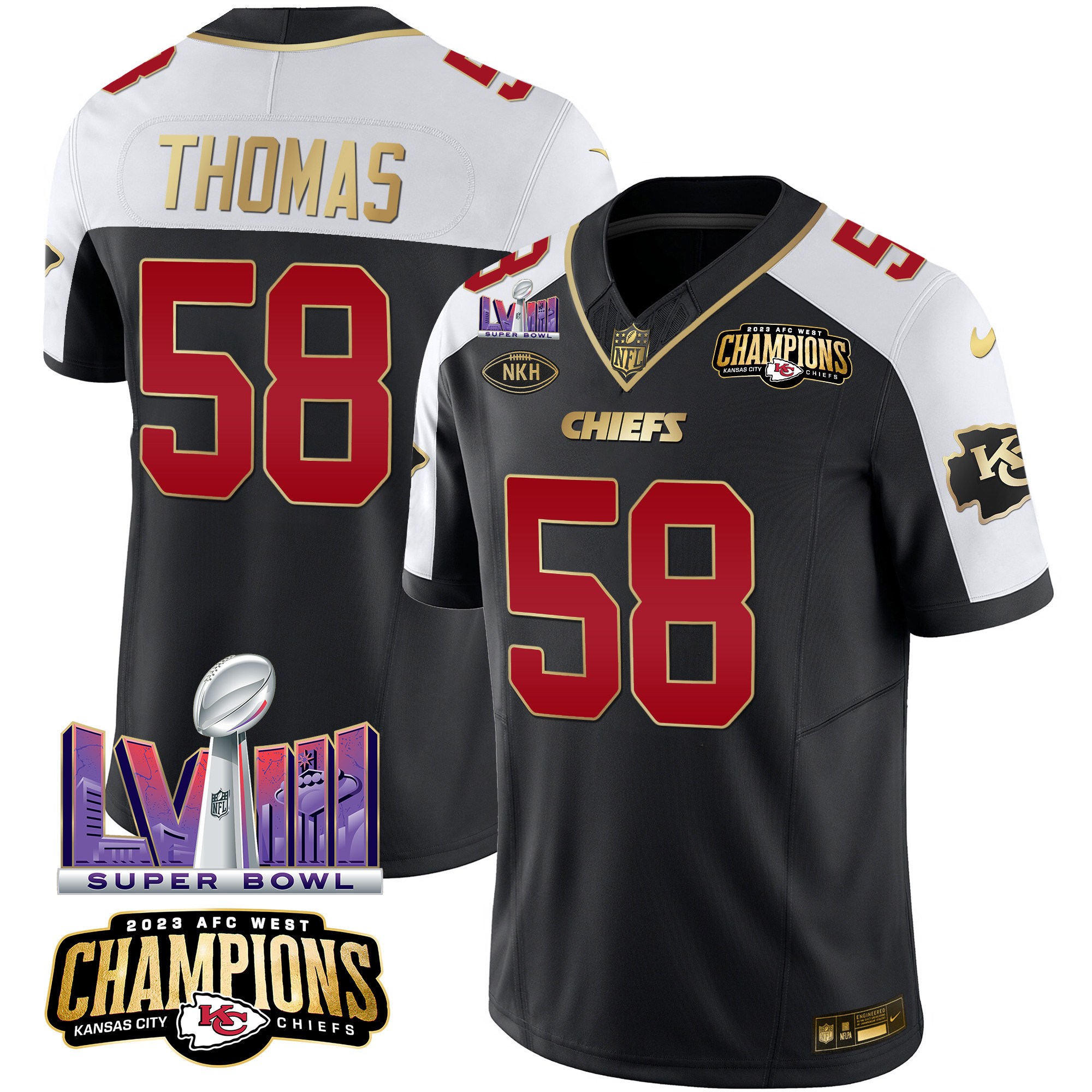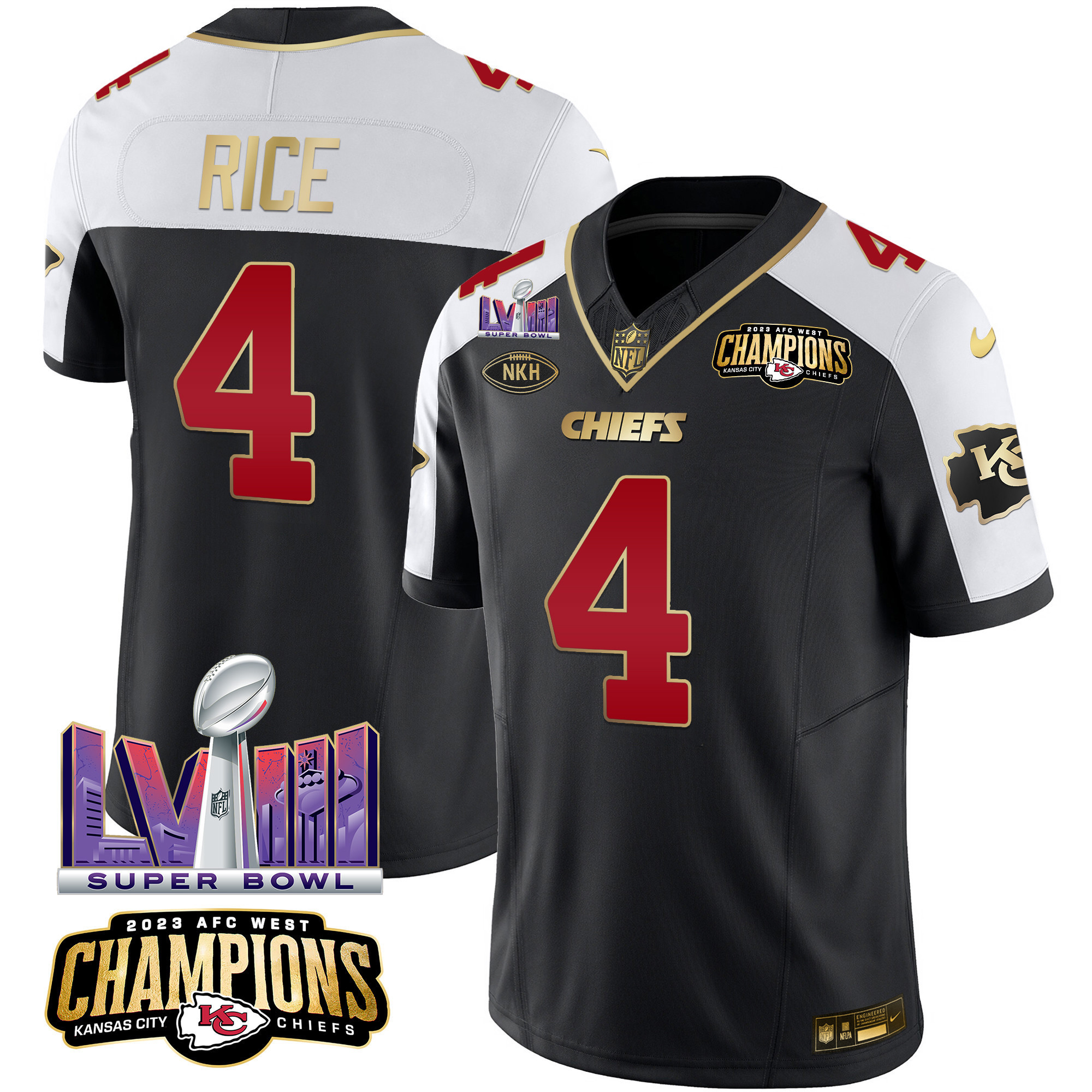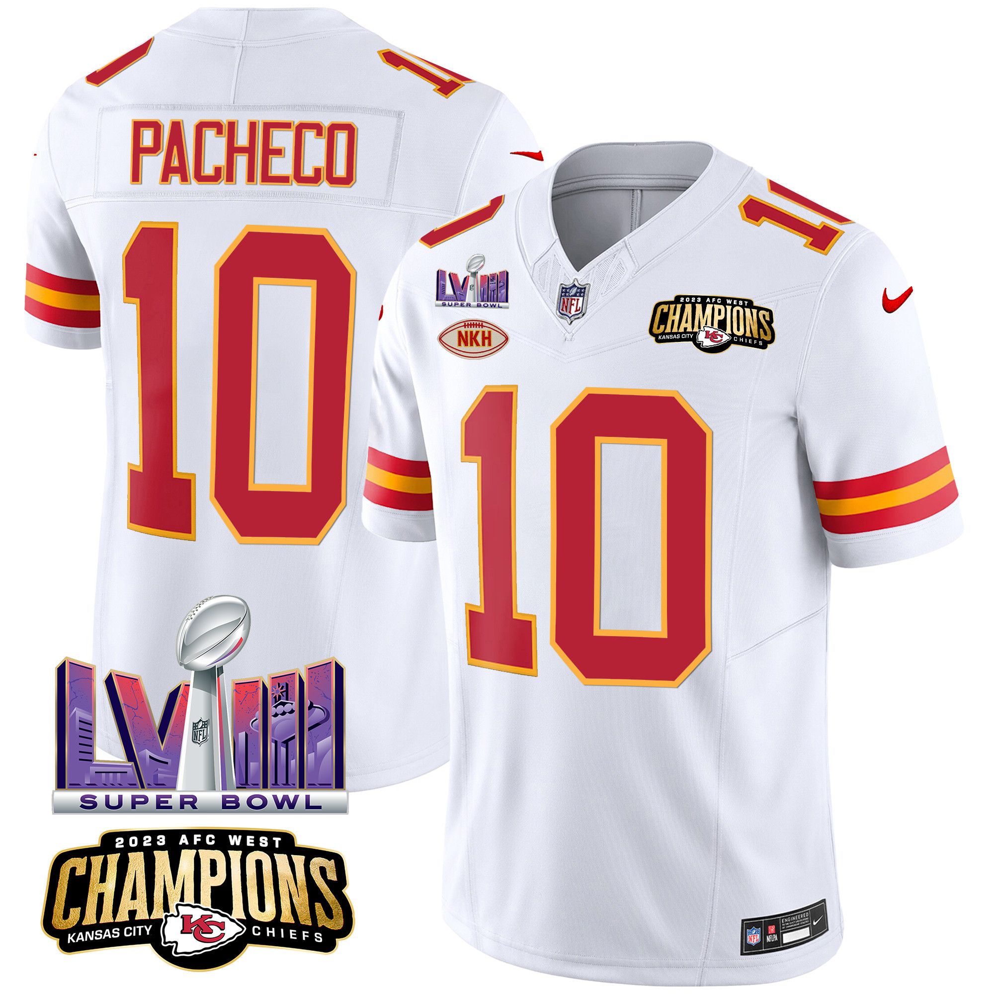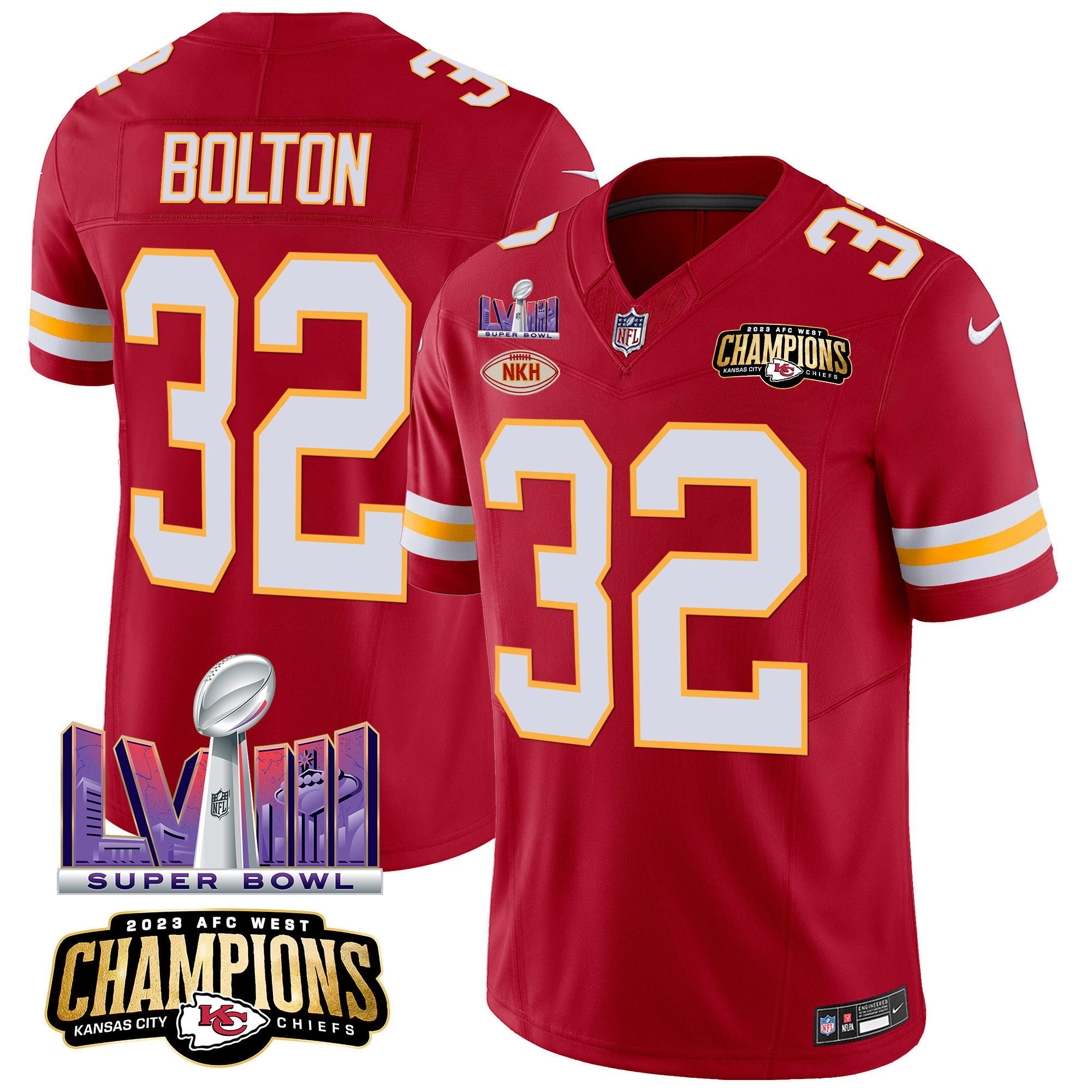 Men’s Kansas City Chiefs AFC West Champions & Super Bowl LVIII Patch Vapor Jersey – All Stitched