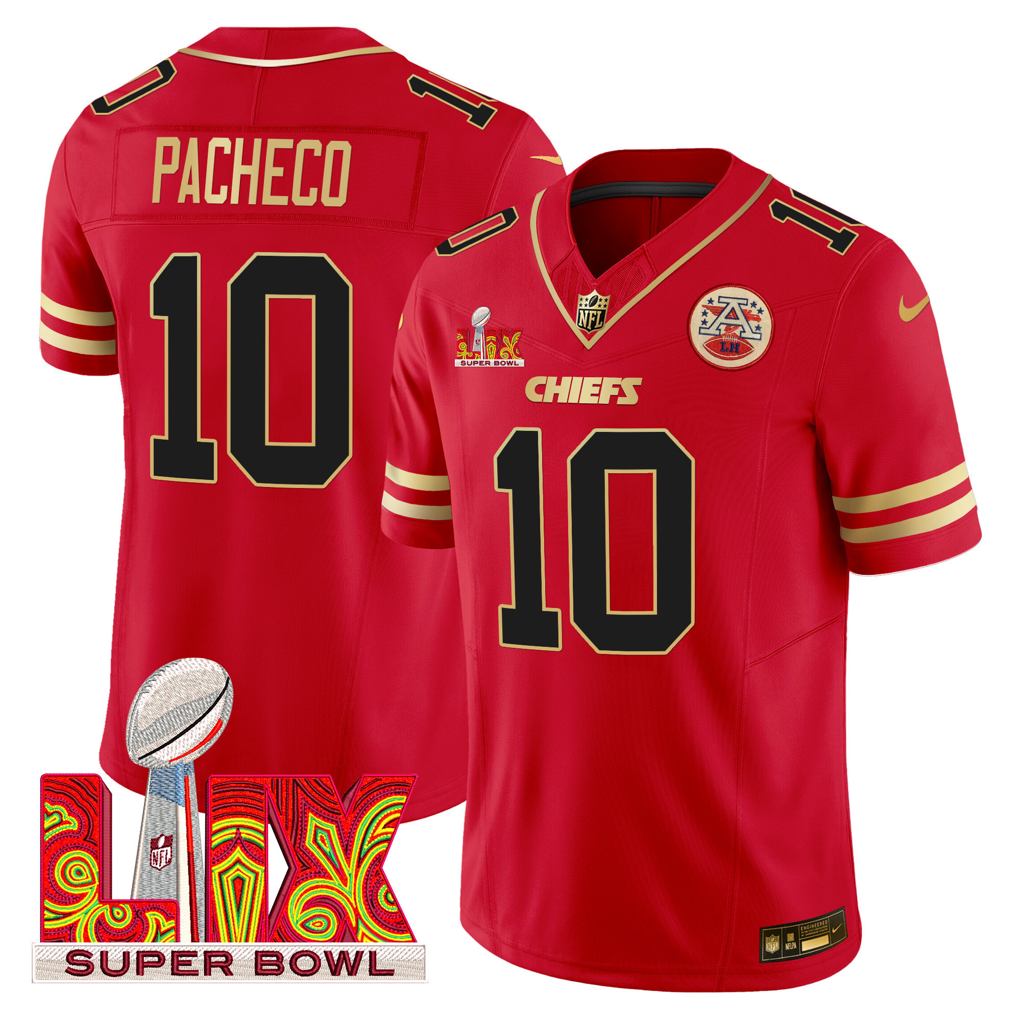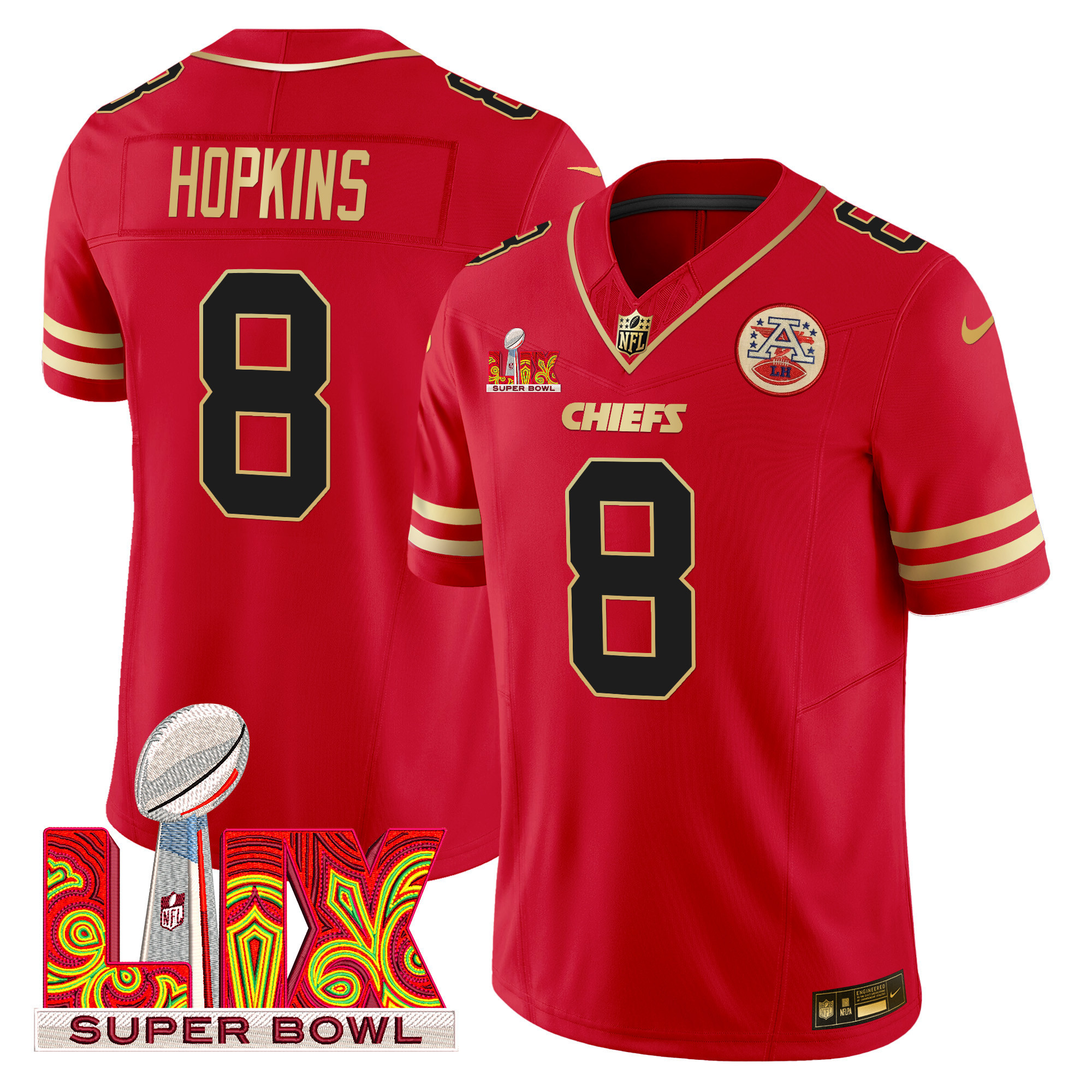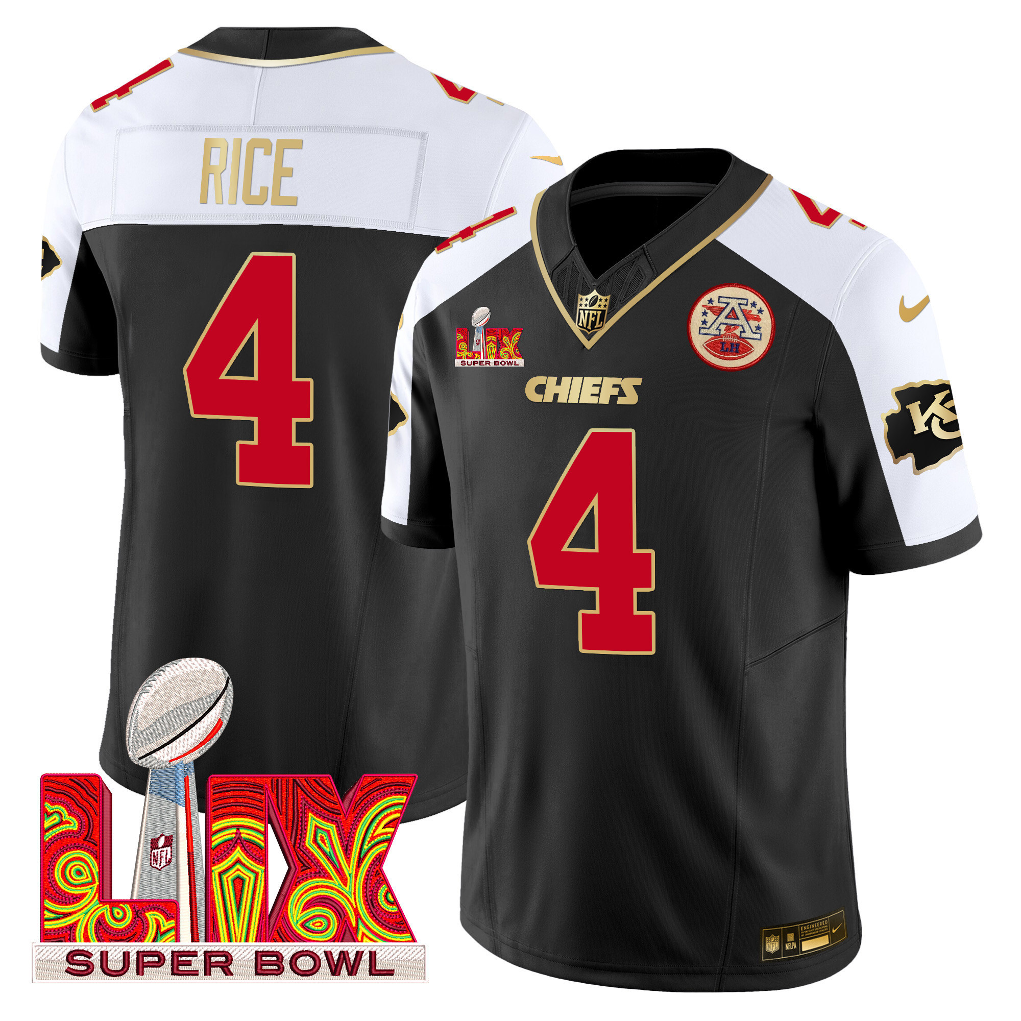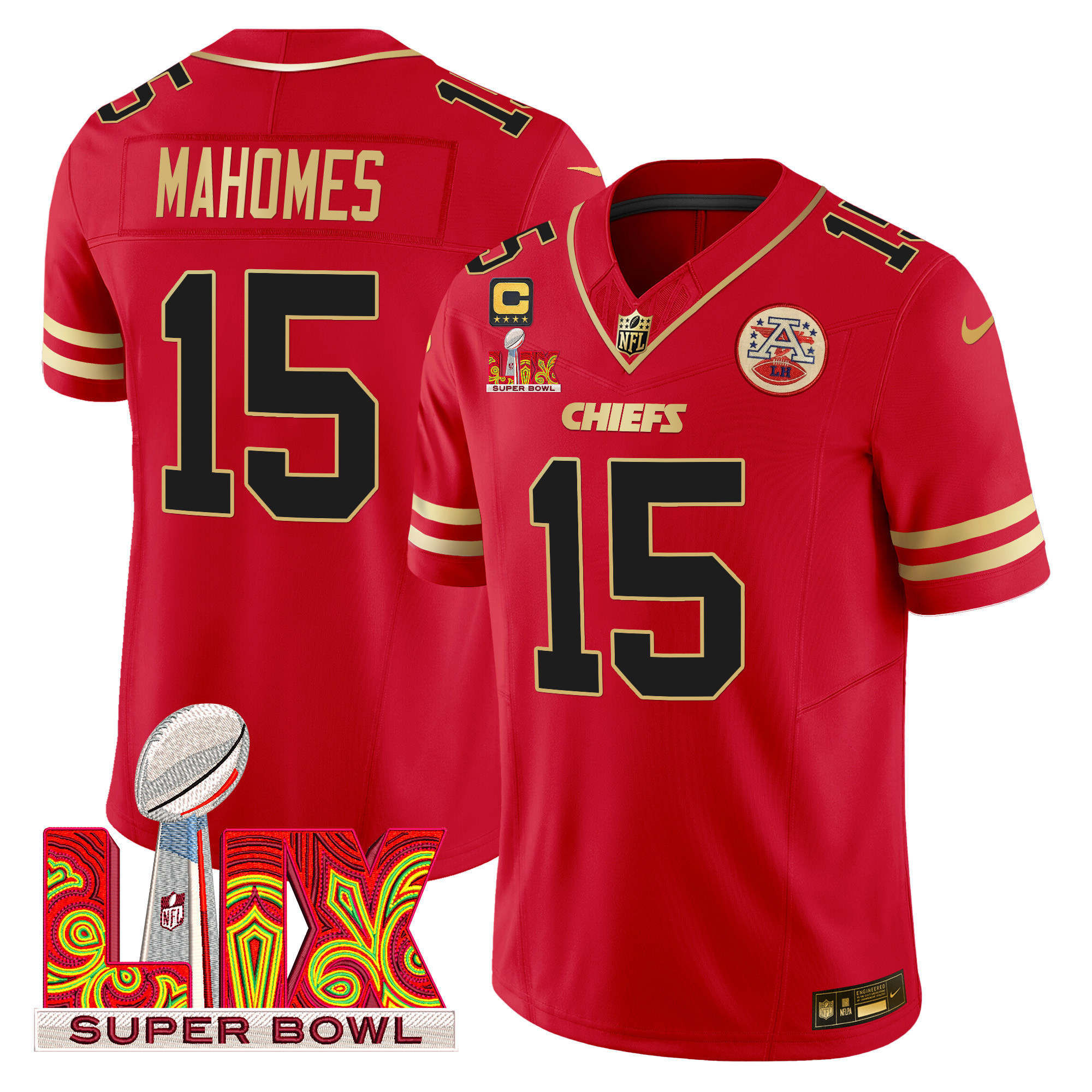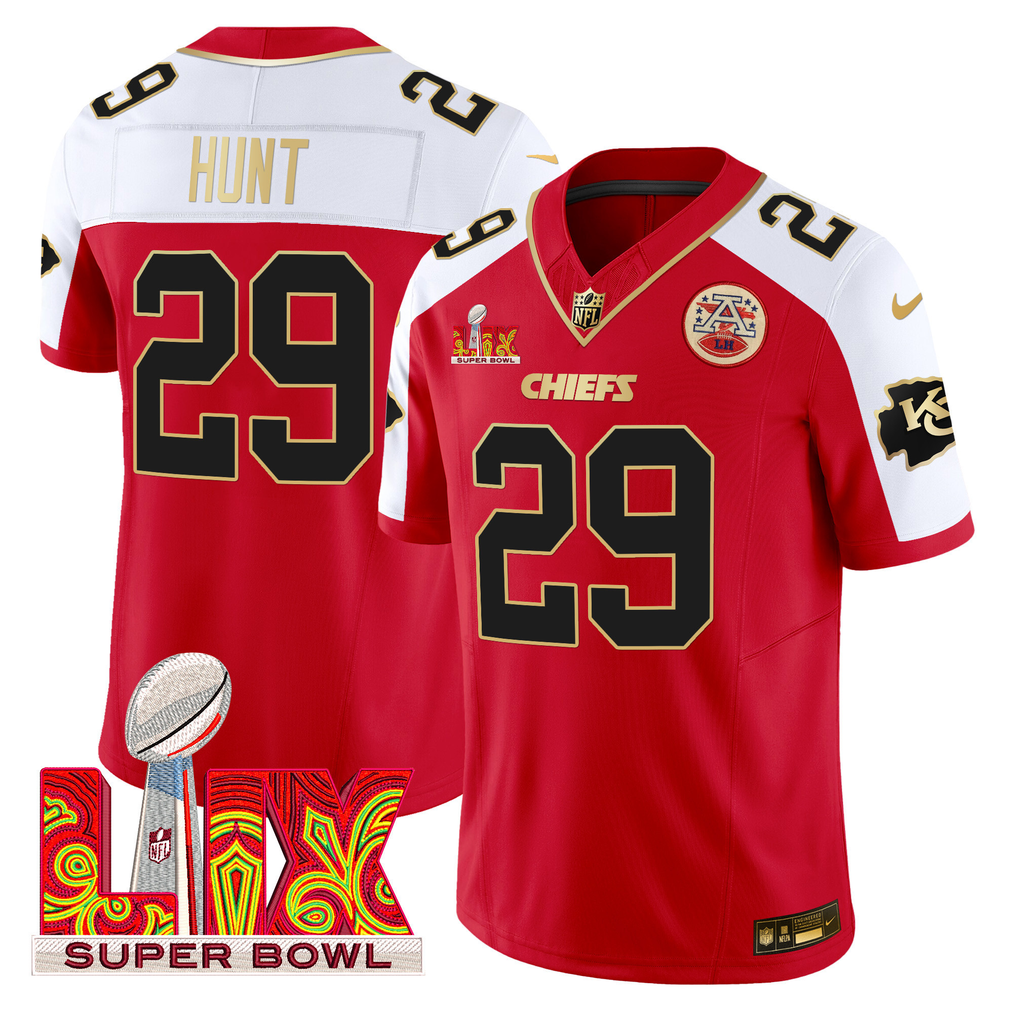 Men’s Kansas City Chiefs Super Bowl LIX Patch Gold Trim Vapor Limited Jersey – All Stitched