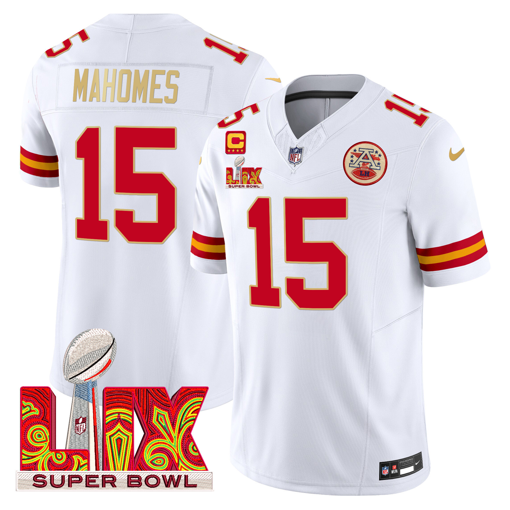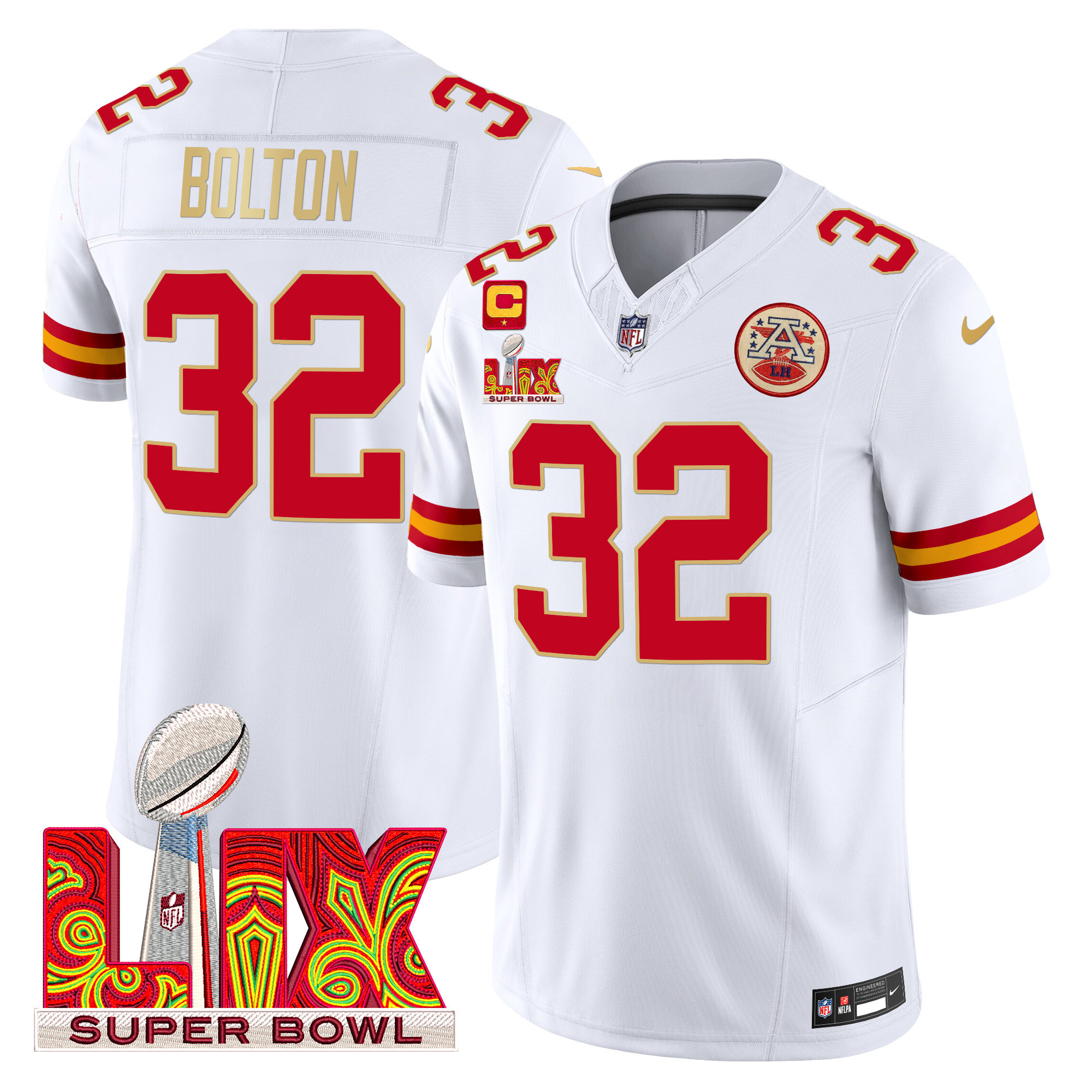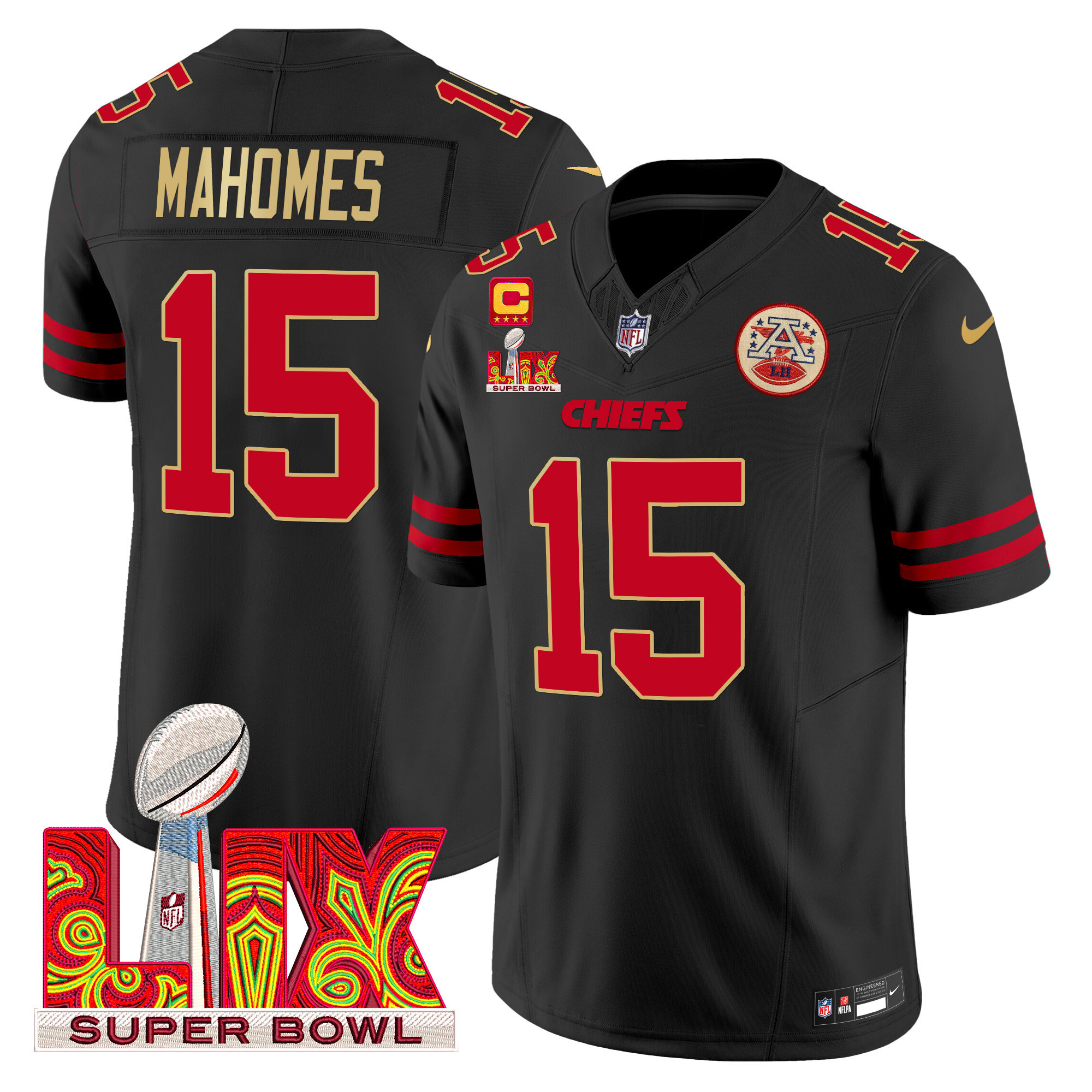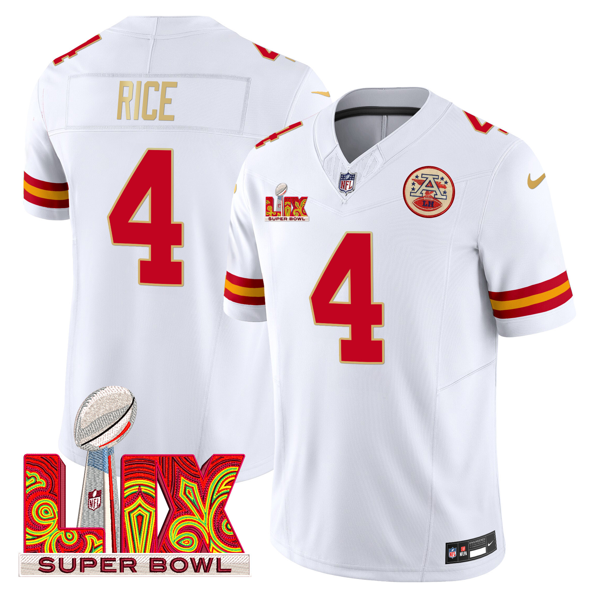 Men’s Kansas City Chiefs Super Bowl LIX Patch Gold Trim Vapor Limited Jersey – All Stitched