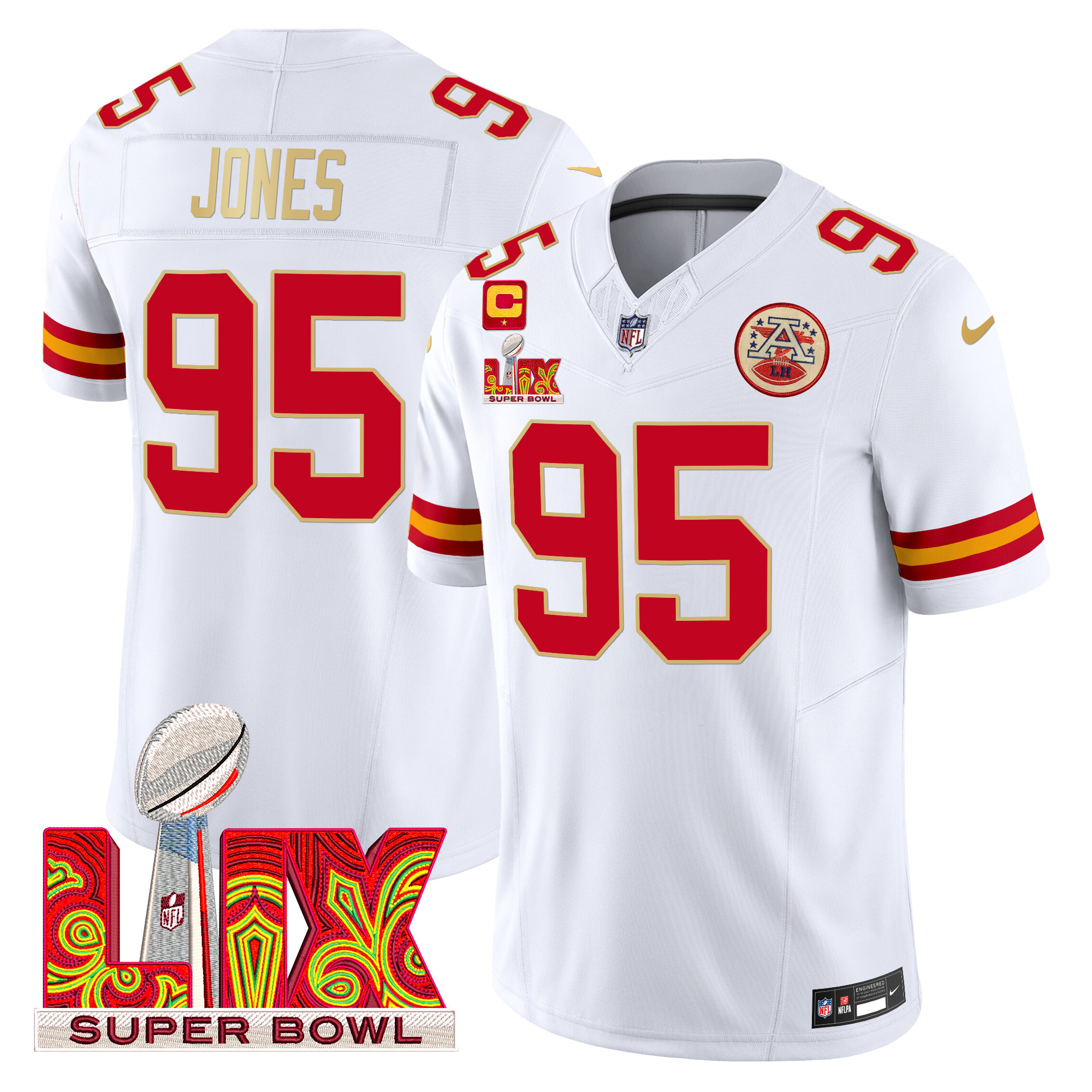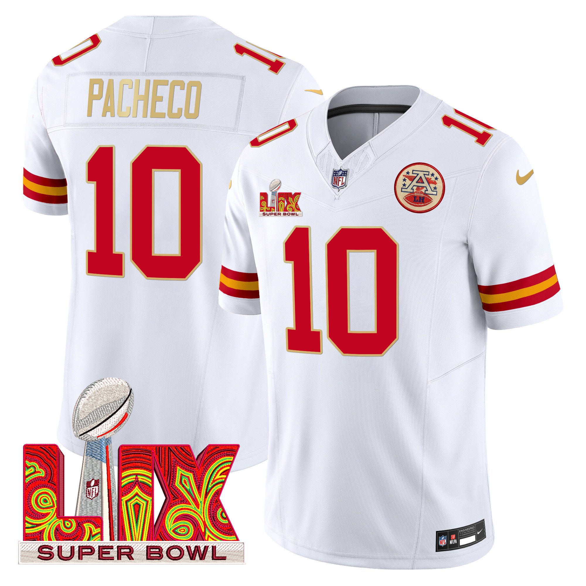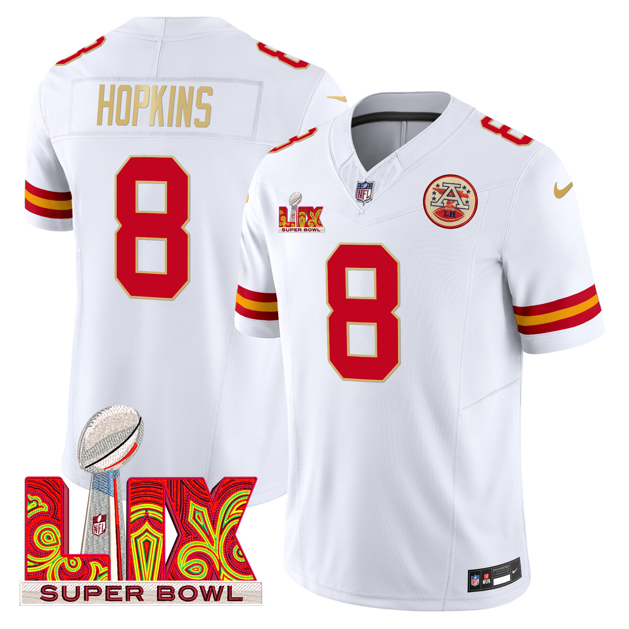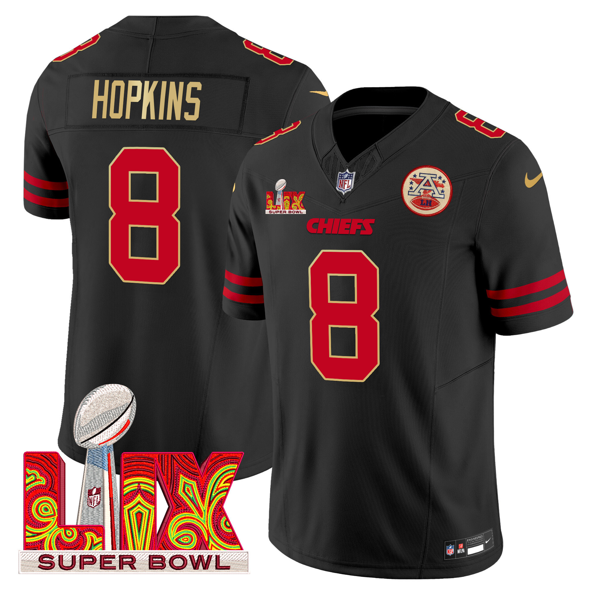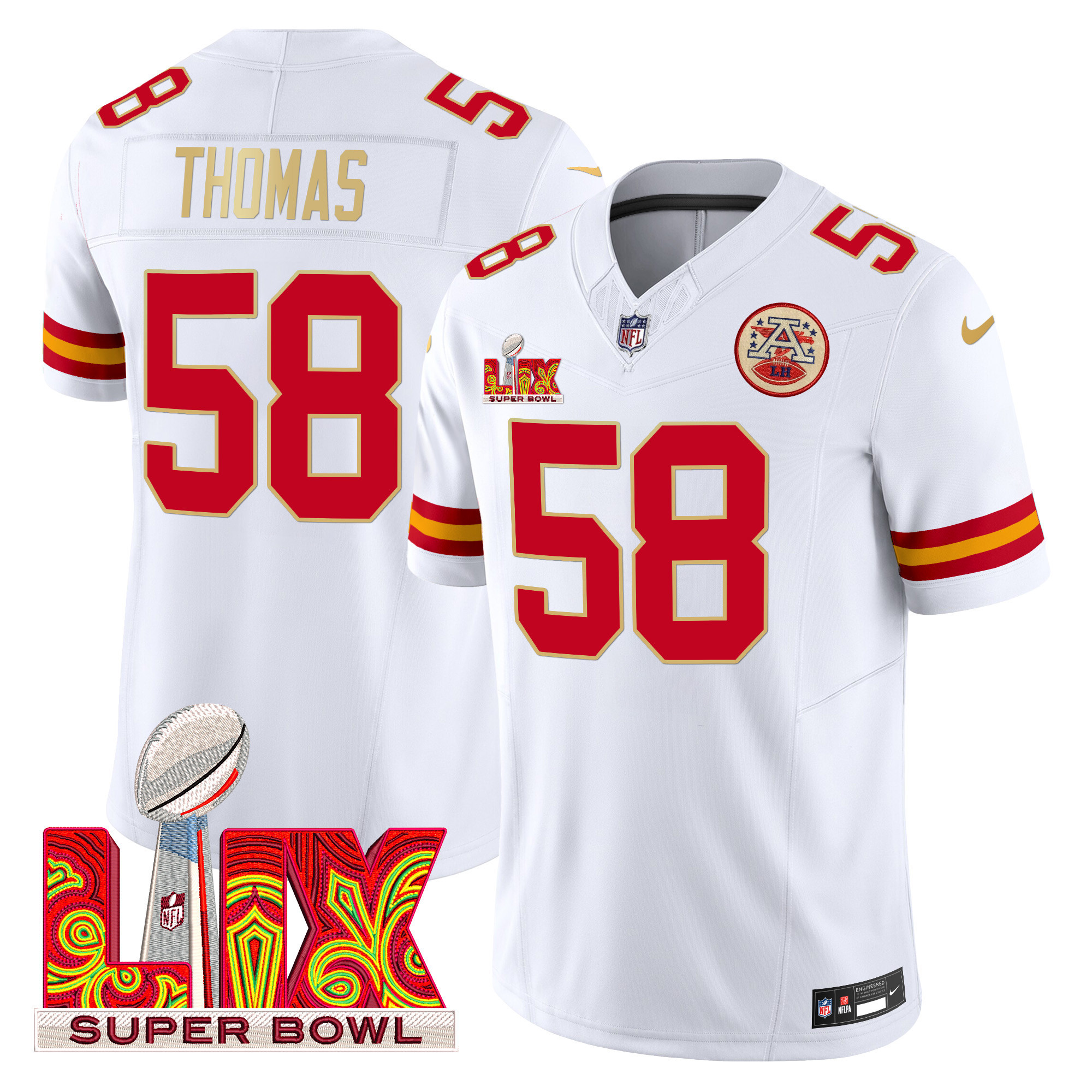 Men’s Kansas City Chiefs Super Bowl LIX Patch Gold Trim Vapor Limited Jersey – All Stitched