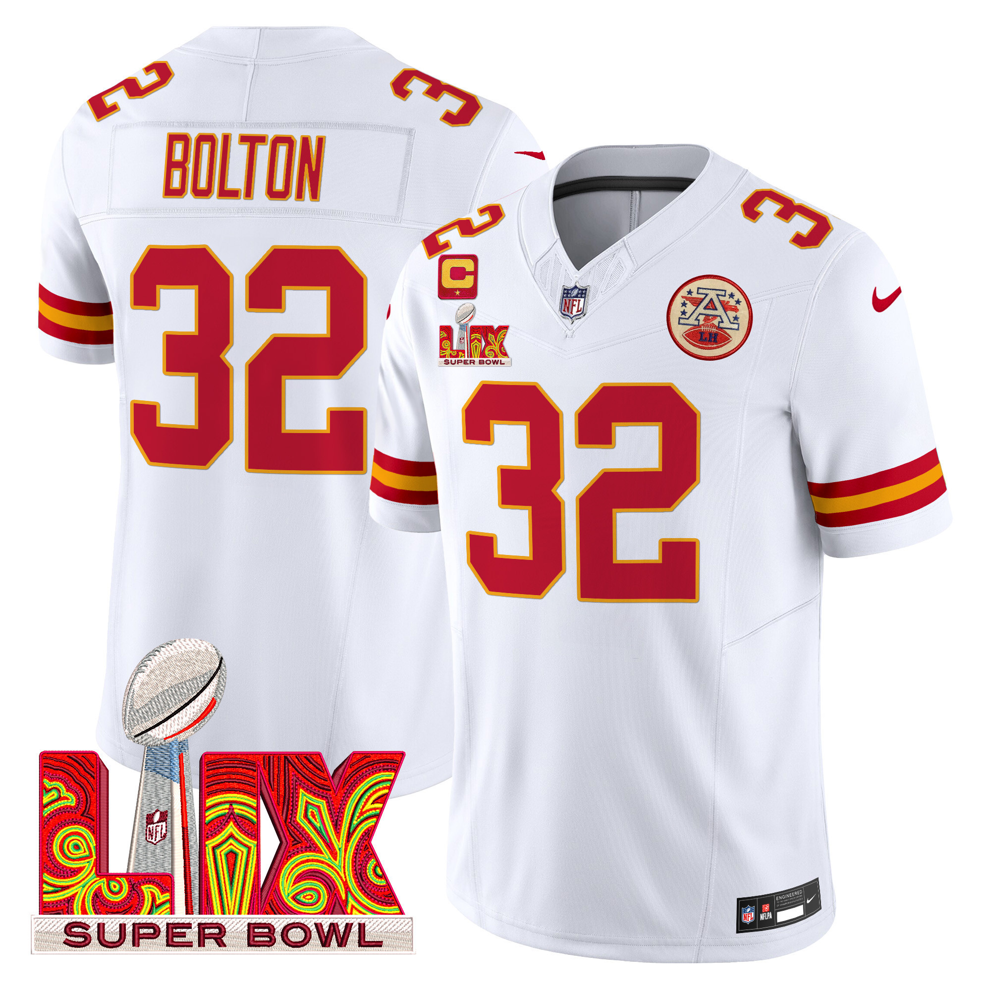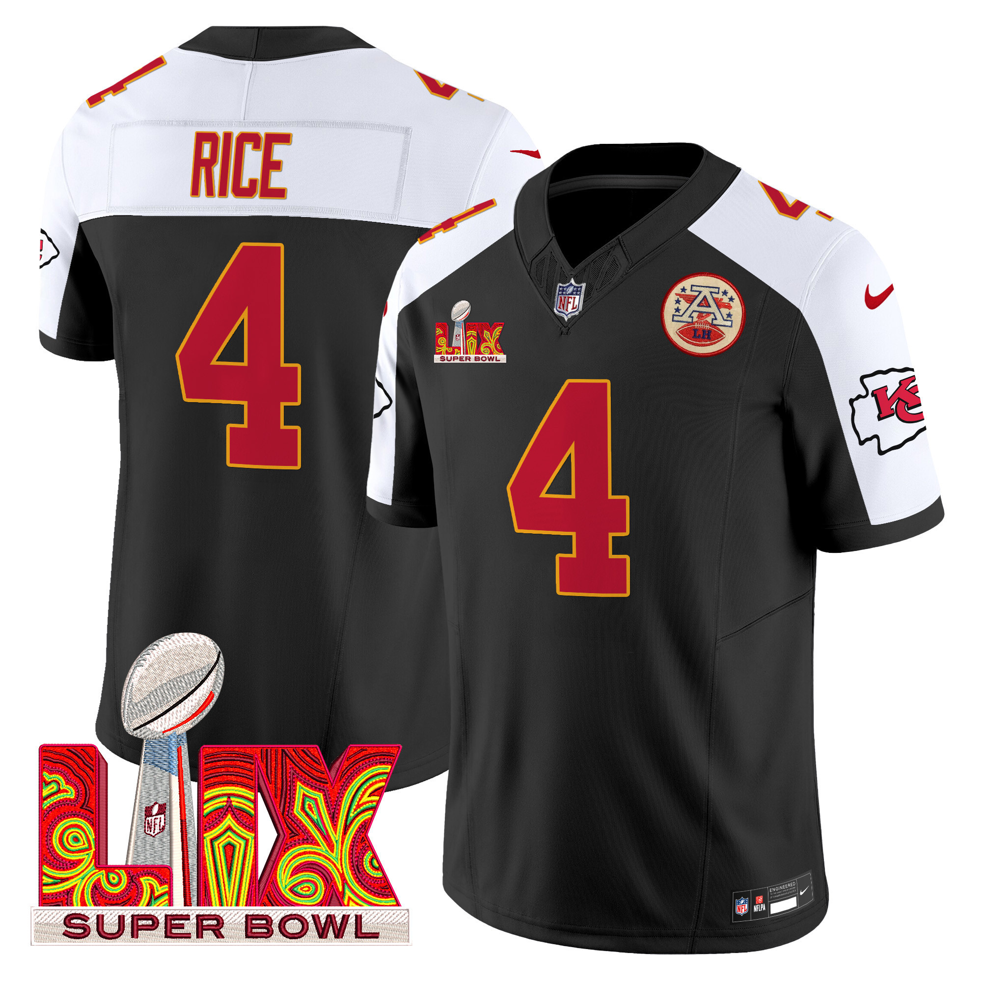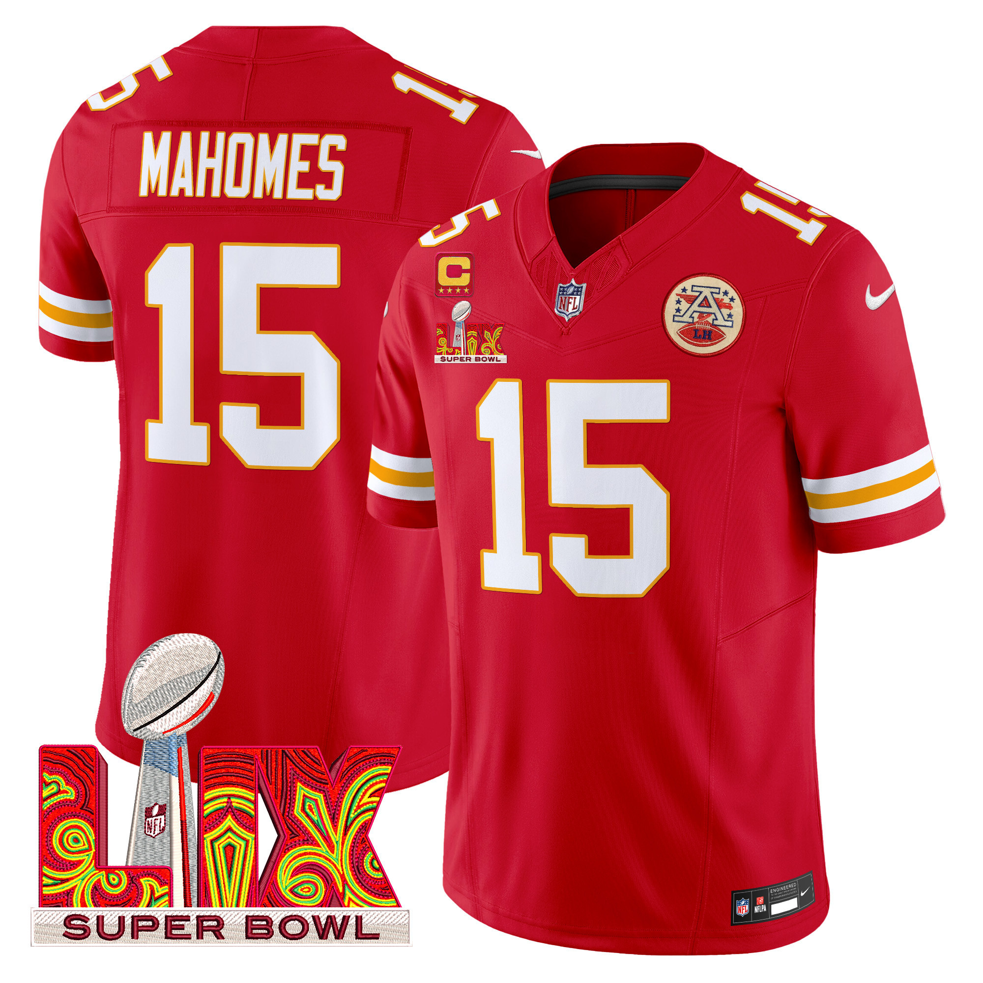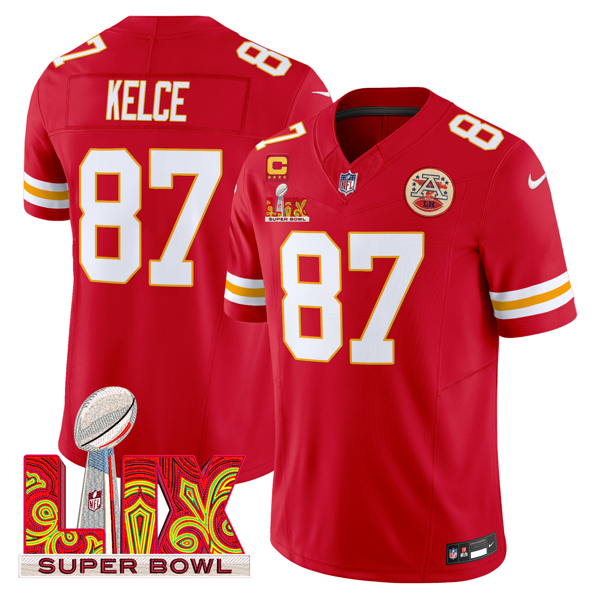 Men’s Kansas City Chiefs Super Bowl LIX Patch Vapor Limited Jersey – All Stitched