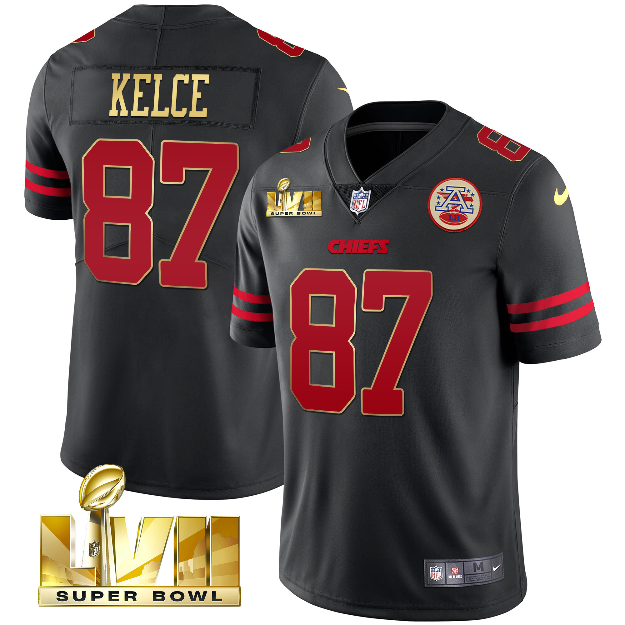 Men’s Kansas City Chiefs Super Bowl LVII Gold Trim Vapor Jersey – All Stitched