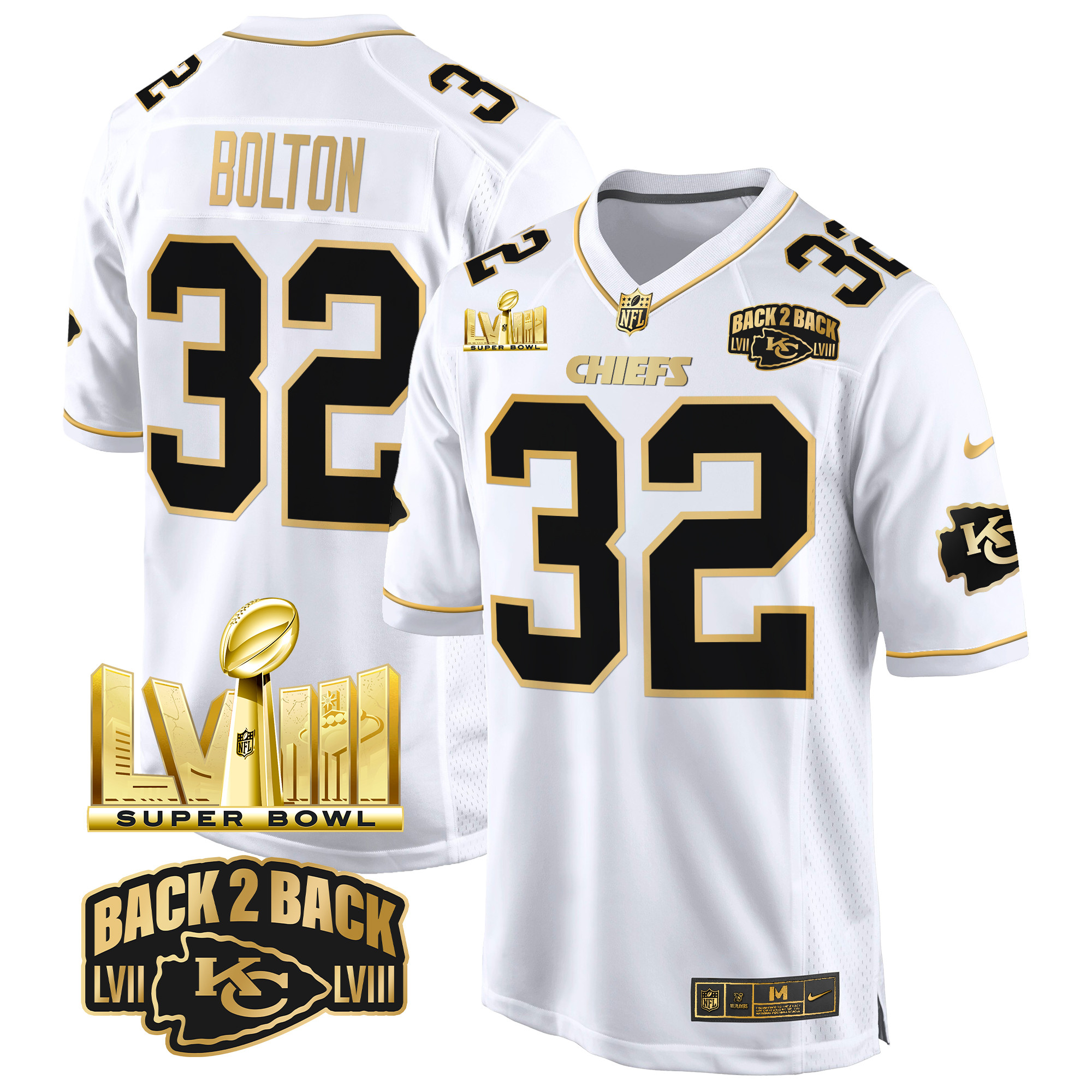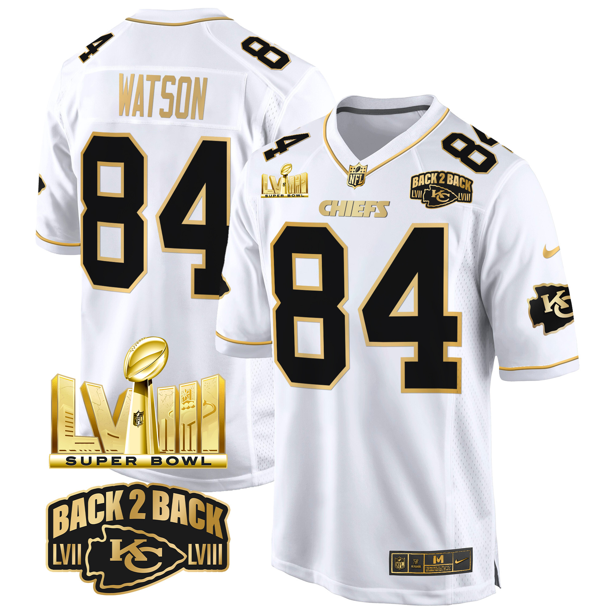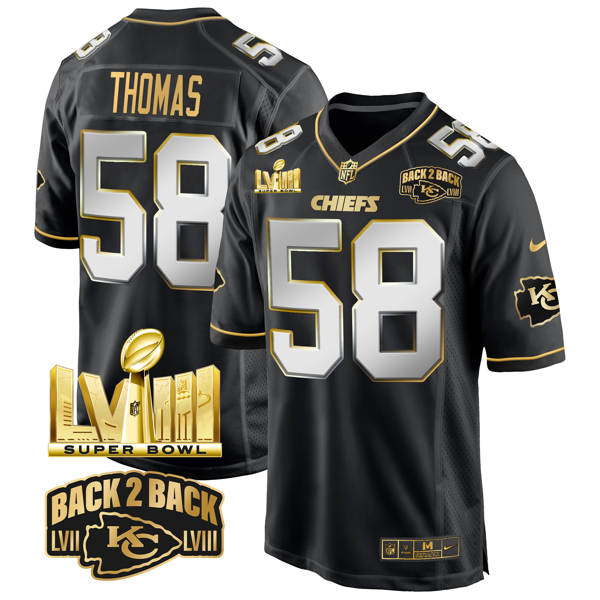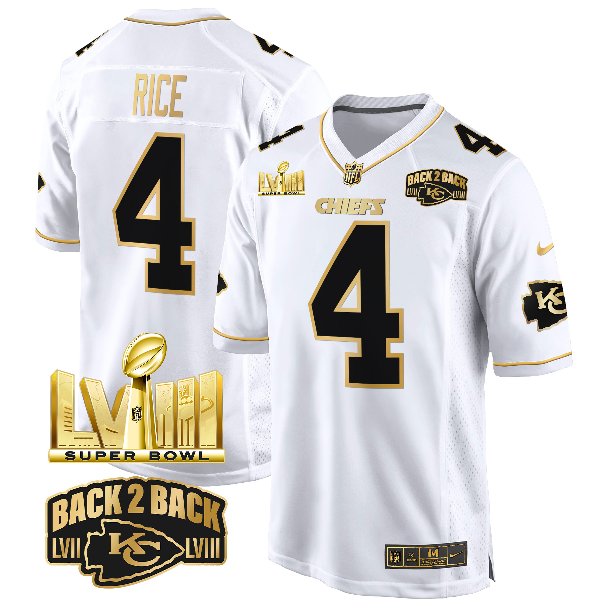 Men’s Kansas City Chiefs Super Bowl LVIII & Back 2 Back Gold Game Jersey – All Stitched