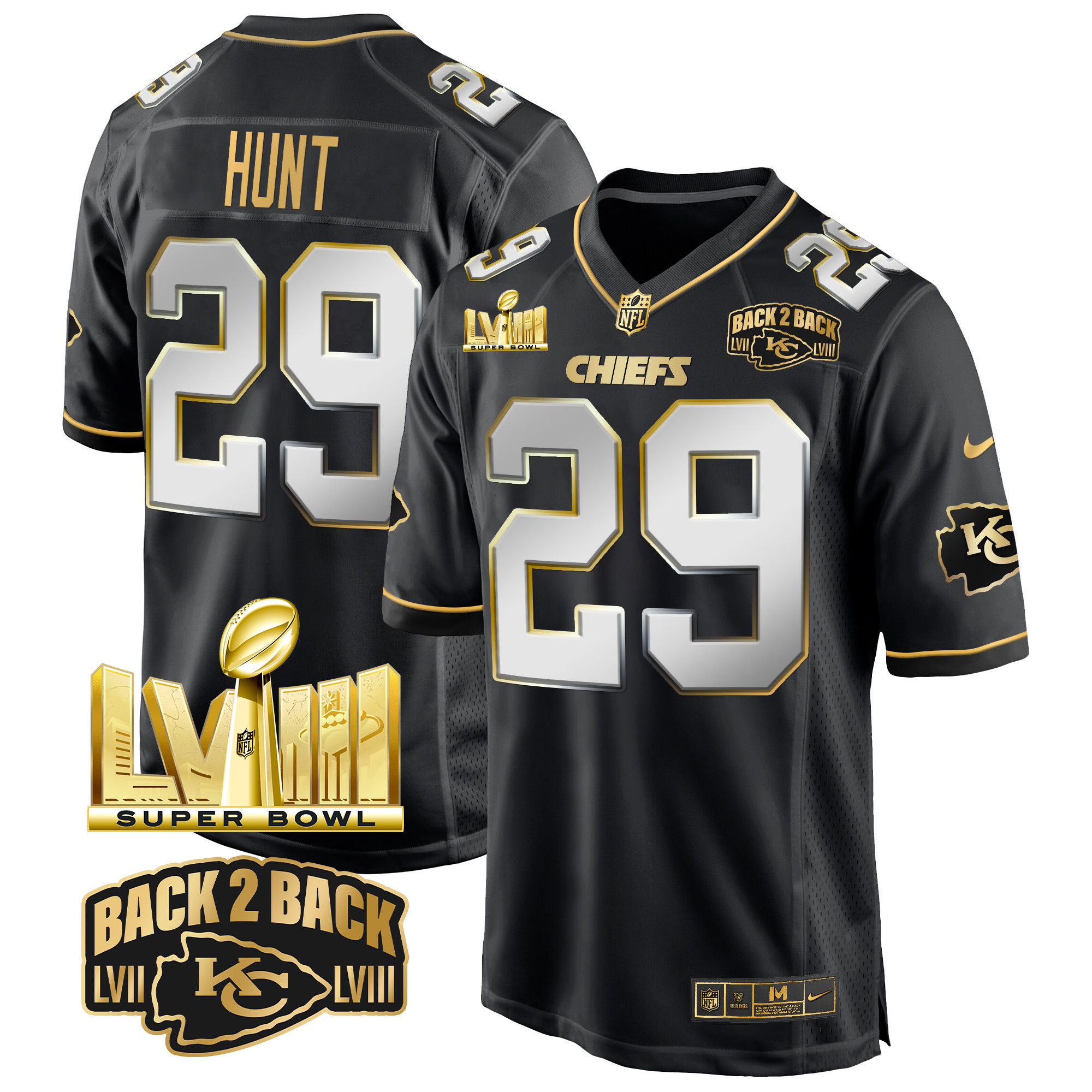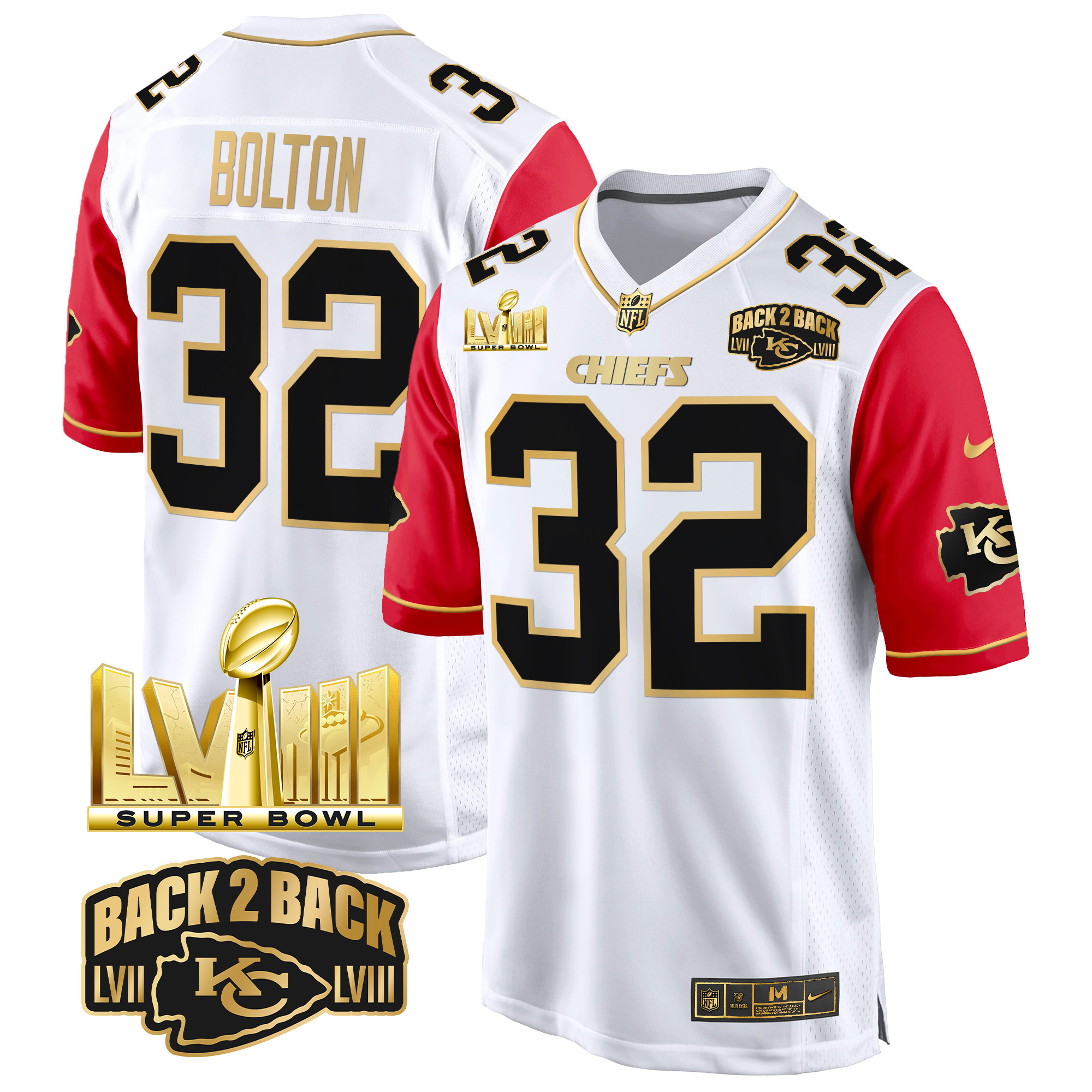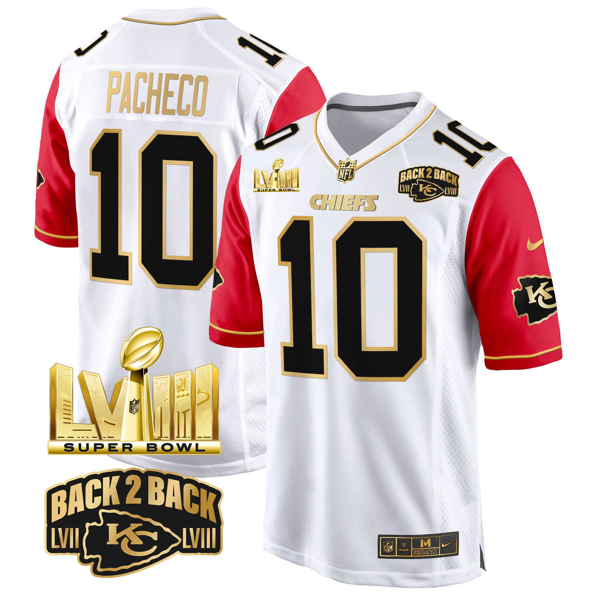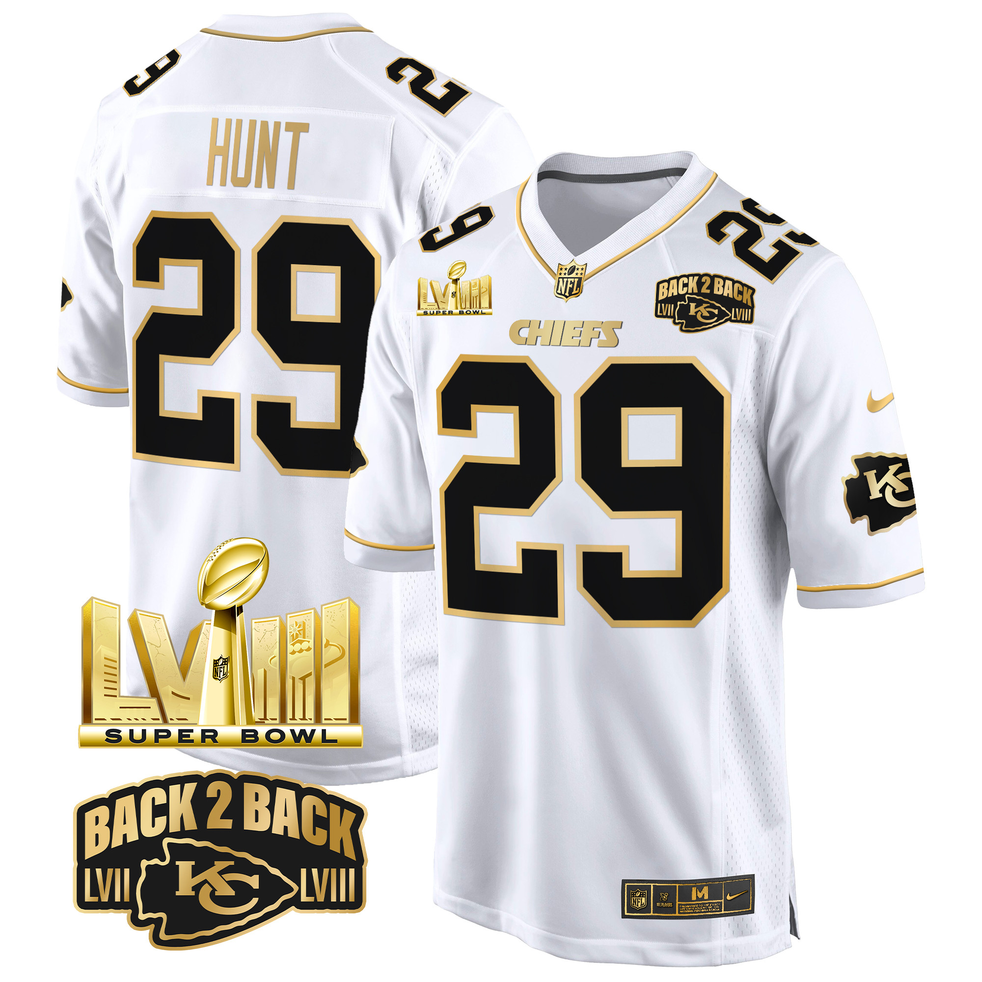 Men’s Kansas City Chiefs Super Bowl LVIII & Back 2 Back Gold Game Jersey – All Stitched