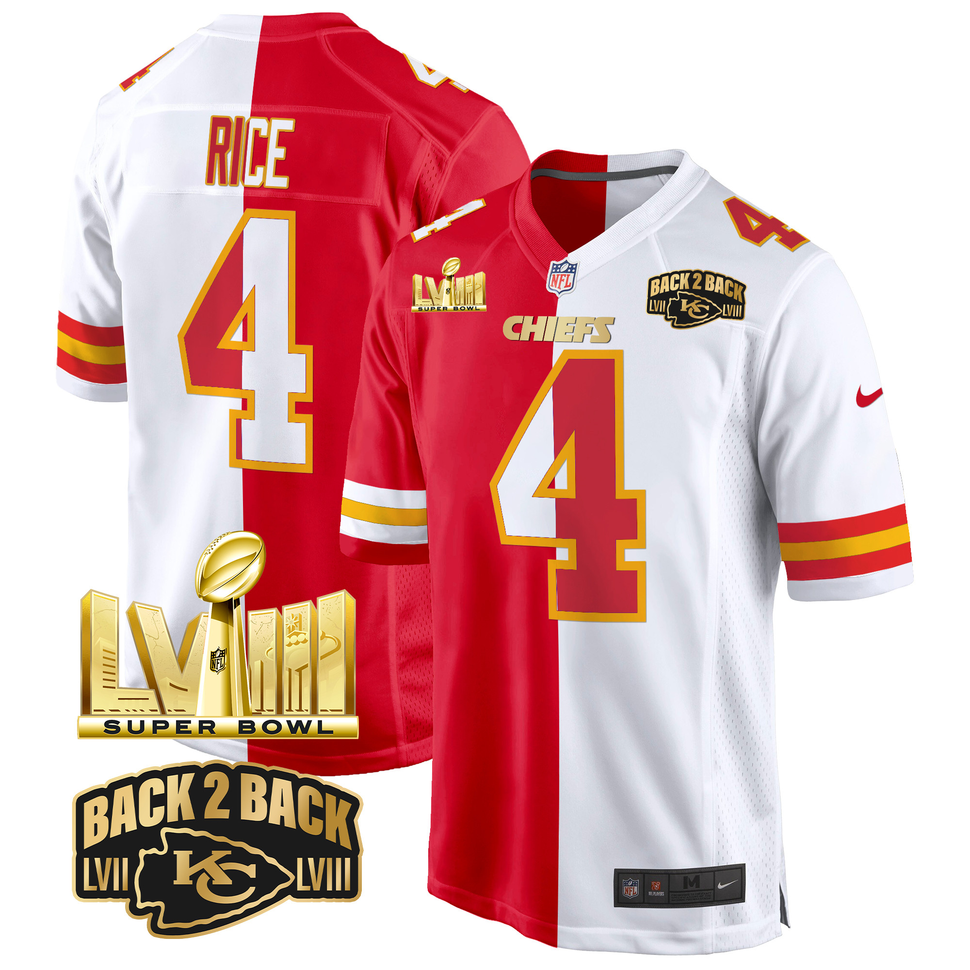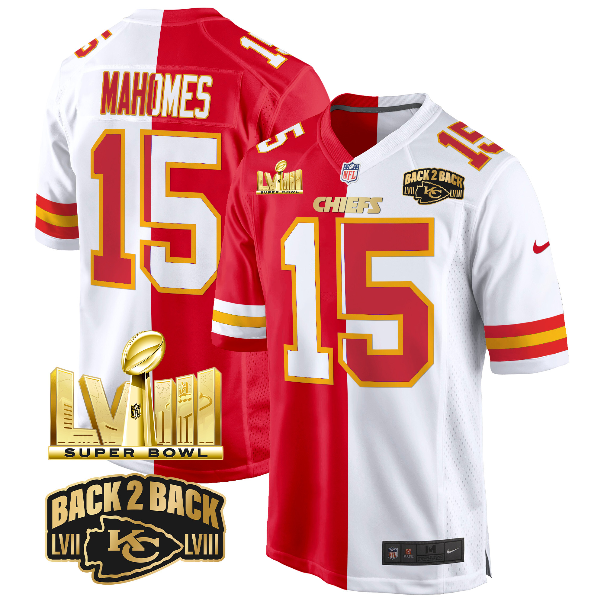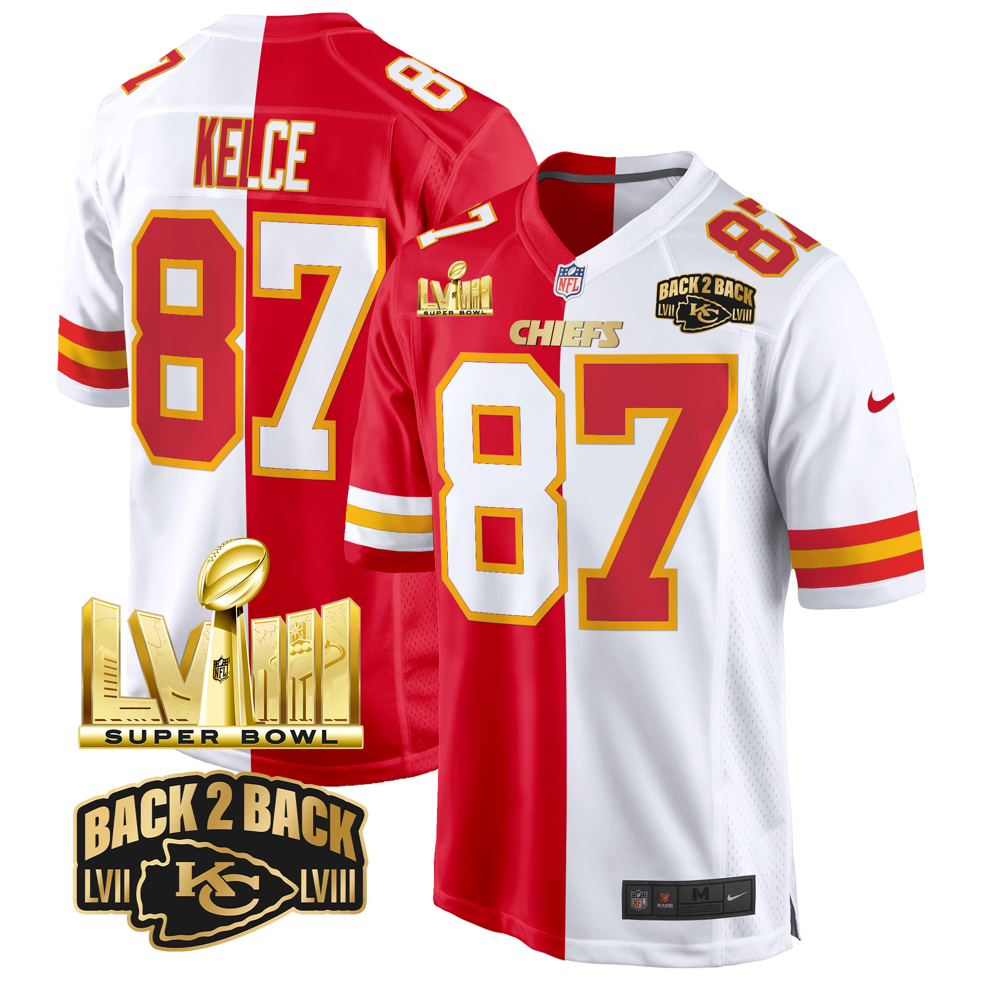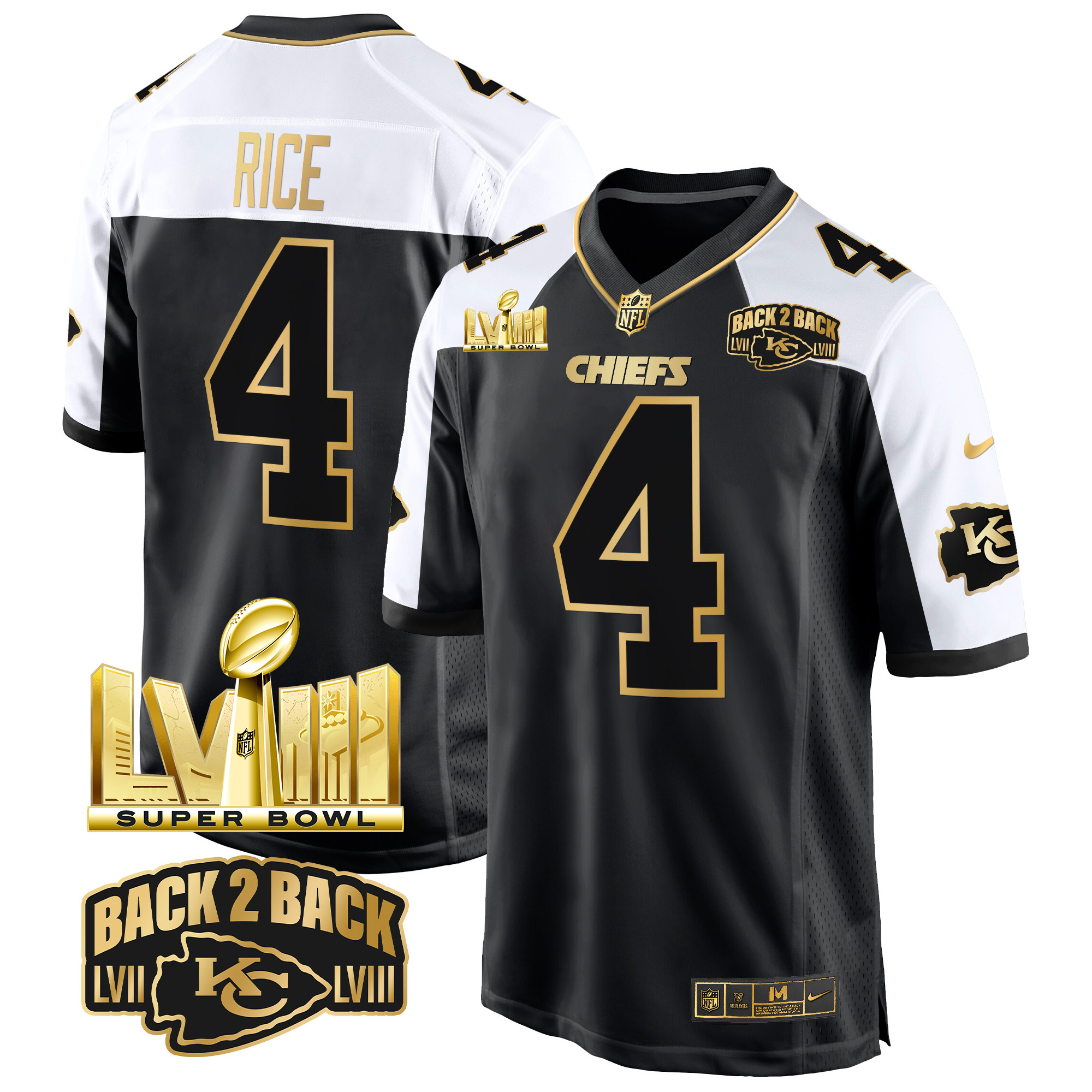 Men’s Kansas City Chiefs Super Bowl LVIII & Back 2 Back Gold Game Jersey – All Stitched