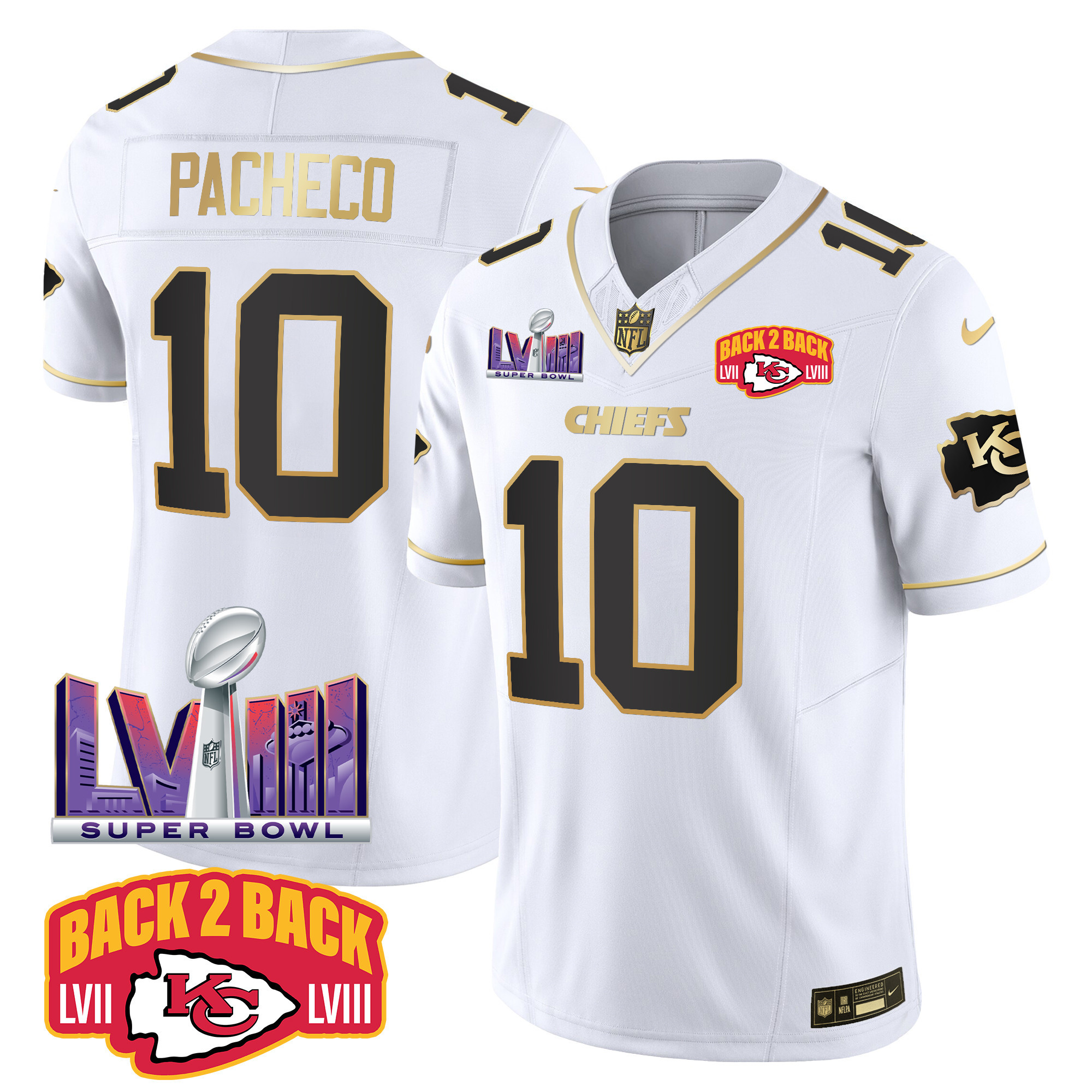 Men’s Kansas City Chiefs Super Bowl LVIII & Back 2 Back Patch Vapor Jersey V2 – All Stitched