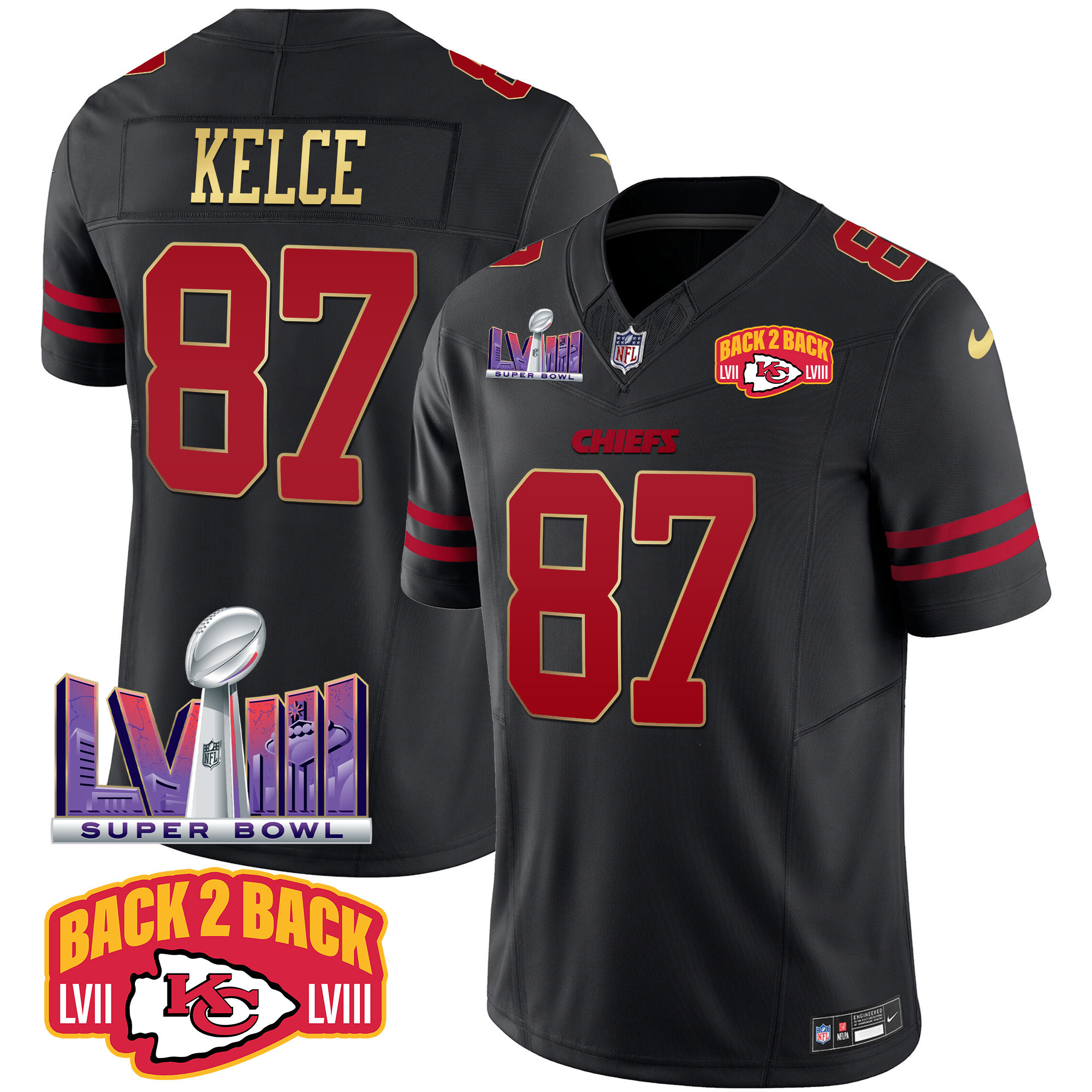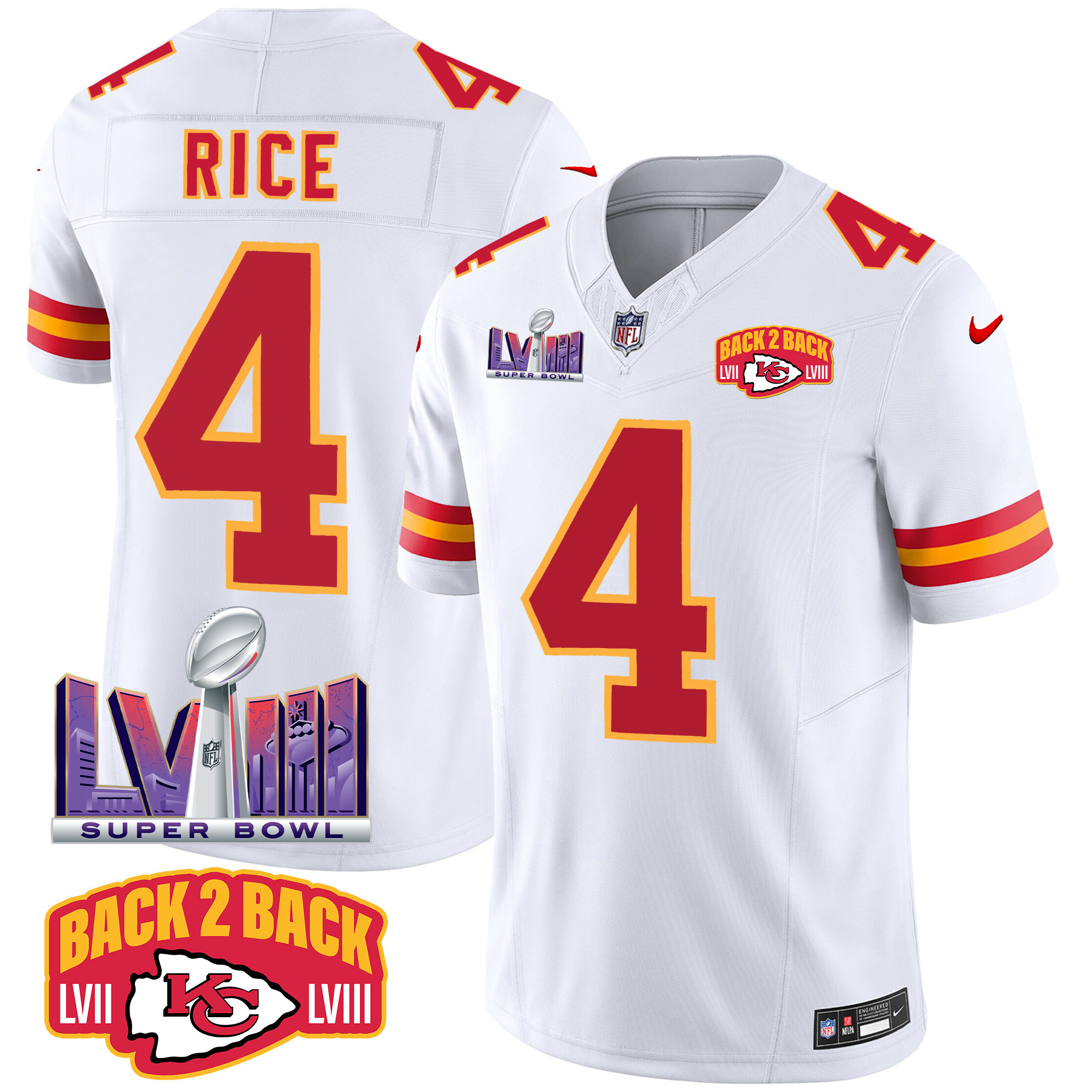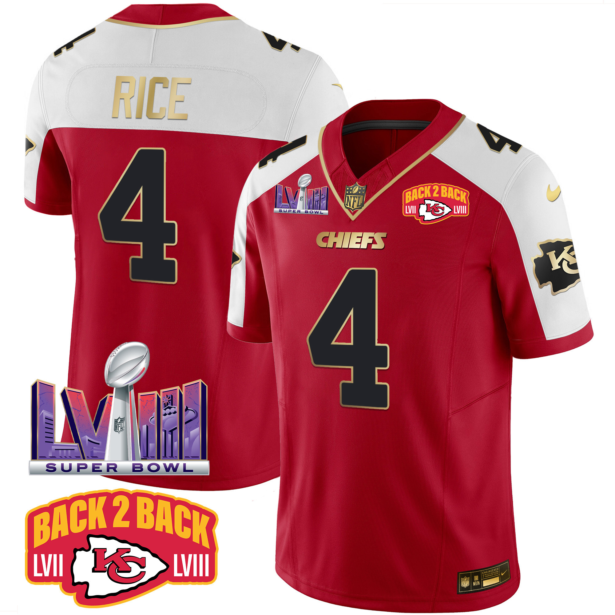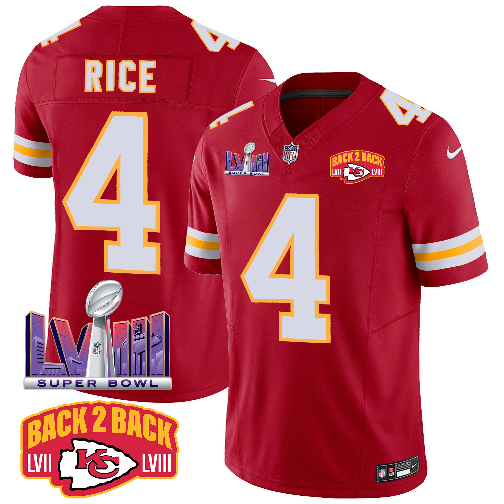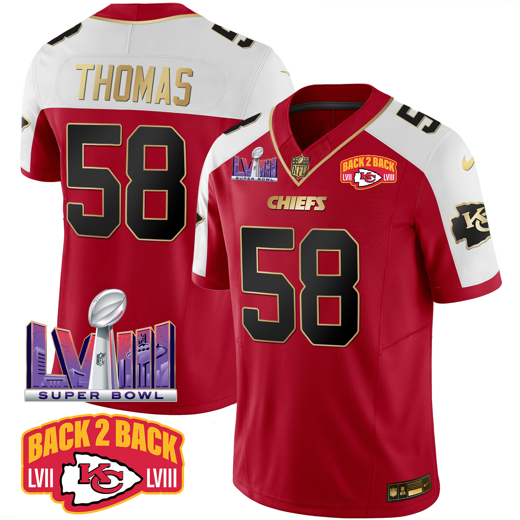 Men’s Kansas City Chiefs Super Bowl LVIII & Back 2 Back Patch Vapor Jersey – All Stitched