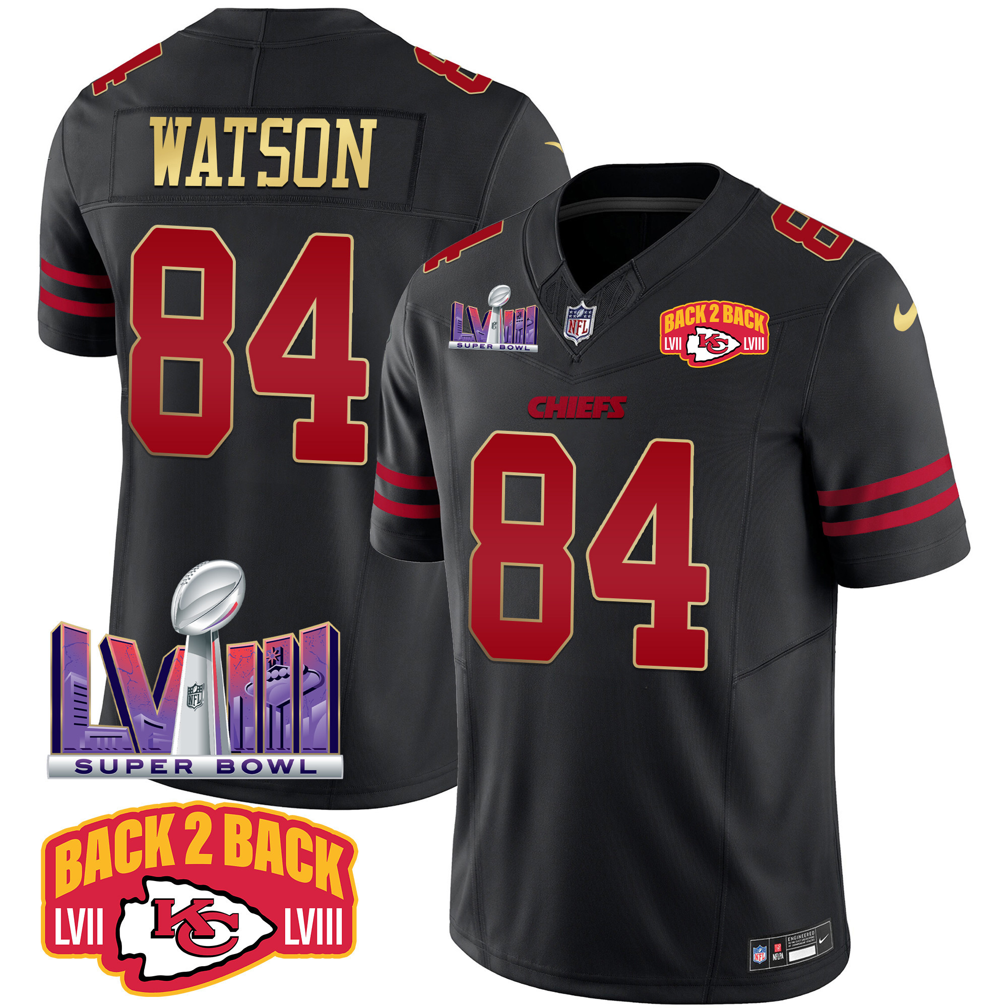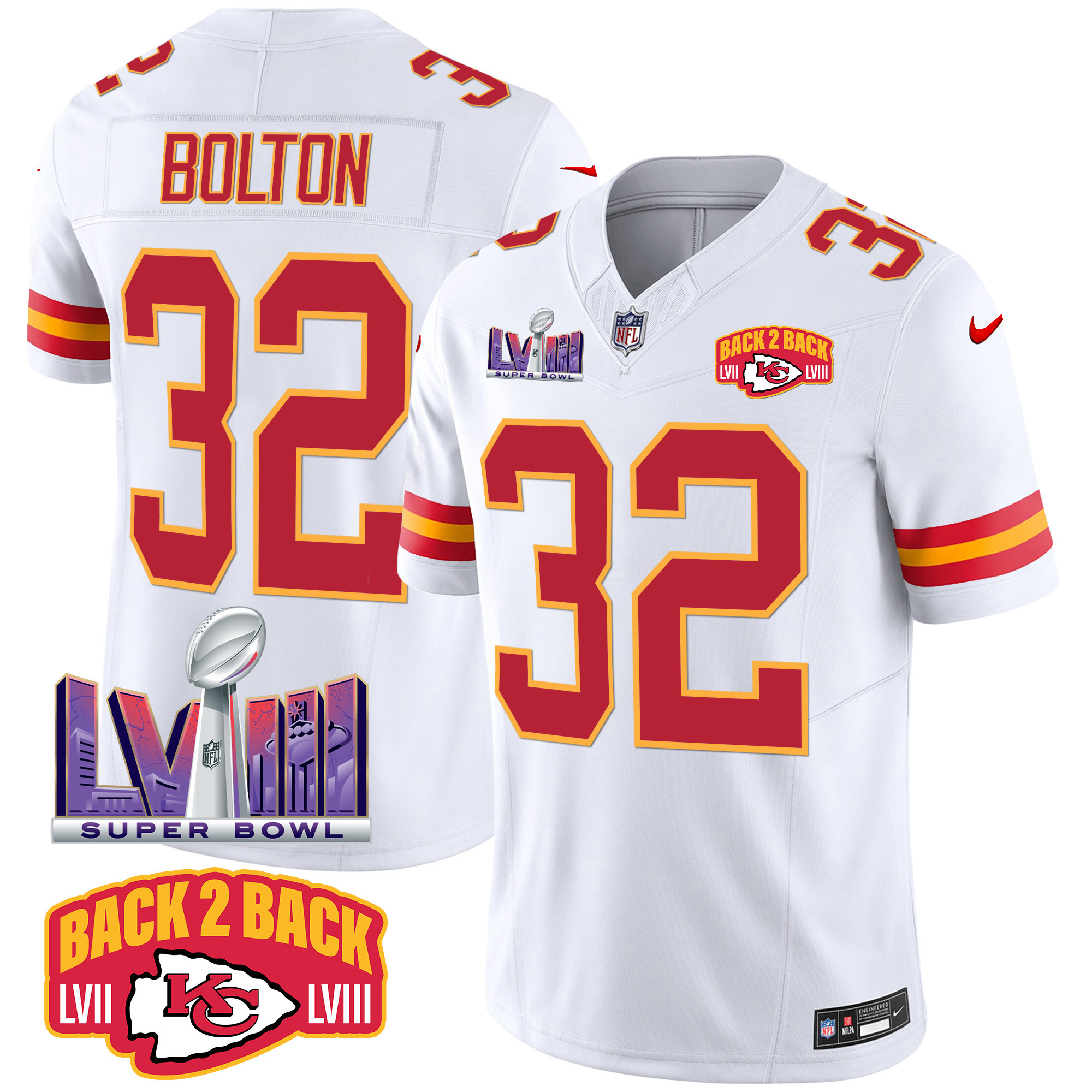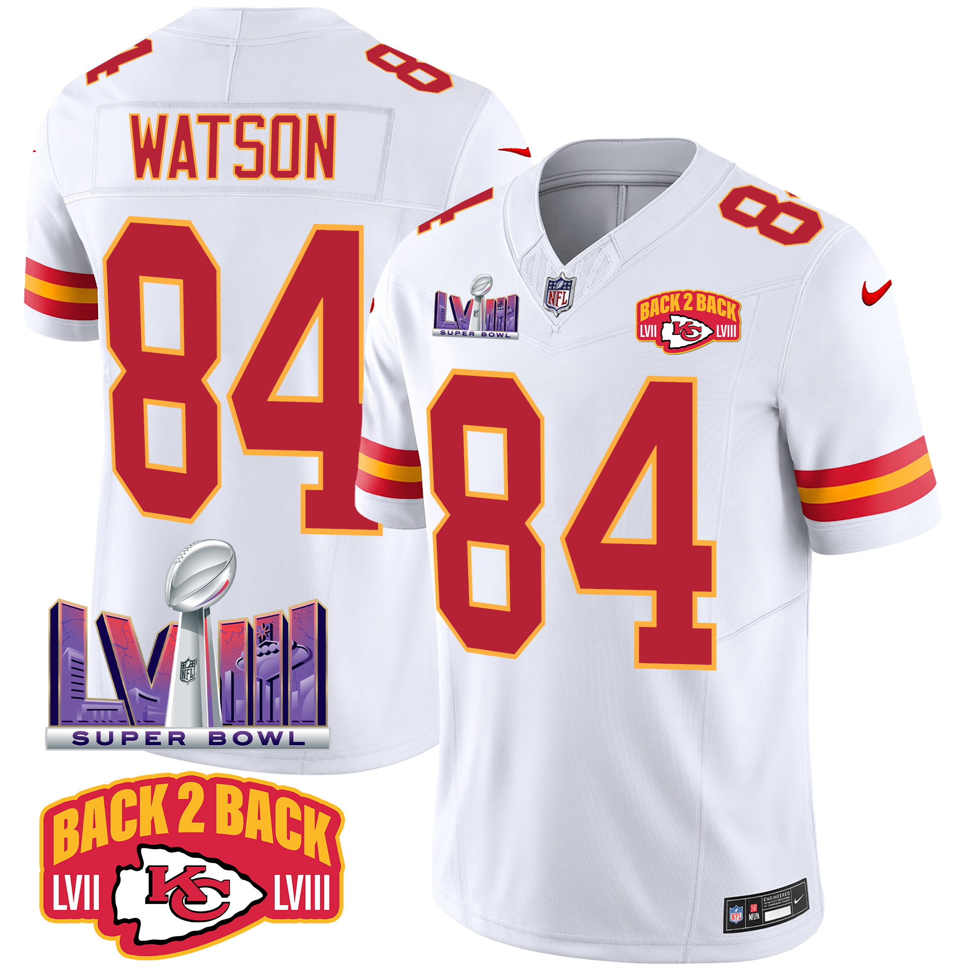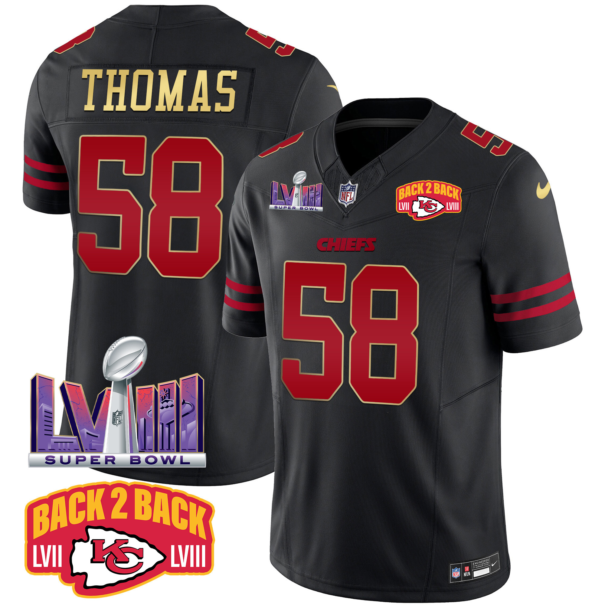 Men’s Kansas City Chiefs Super Bowl LVIII & Back 2 Back Patch Vapor Jersey – All Stitched