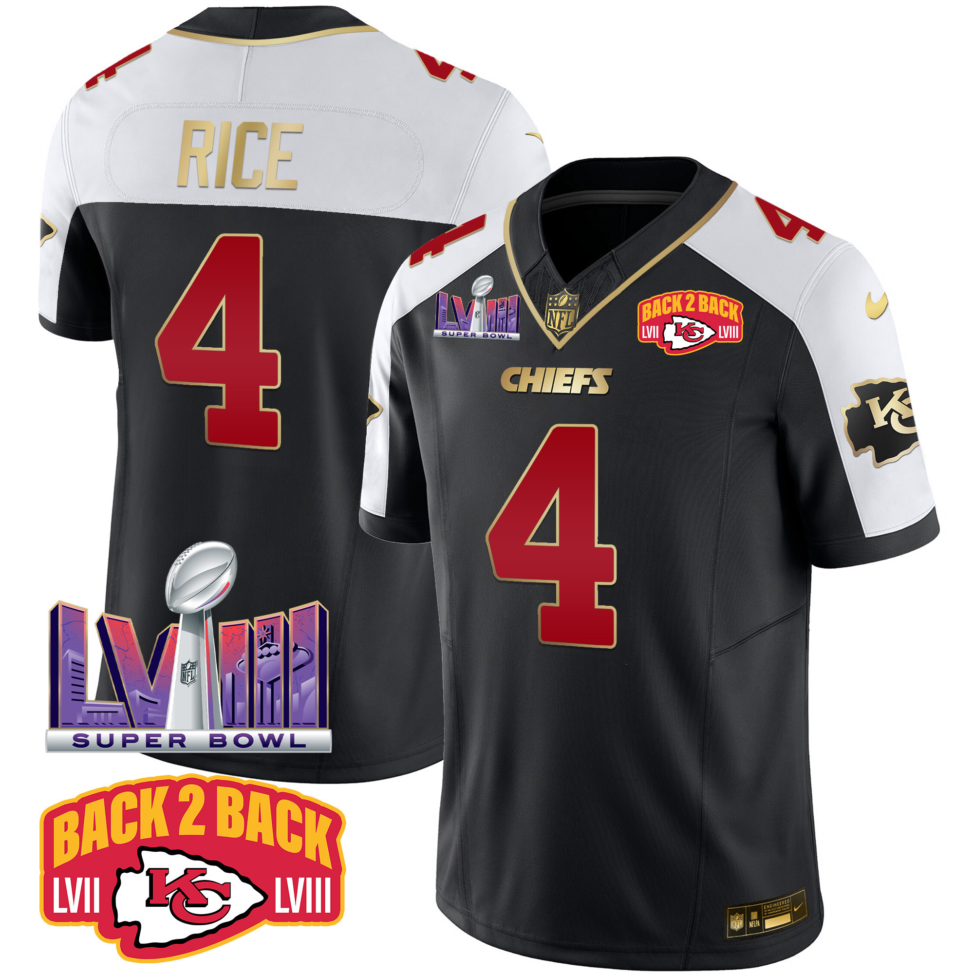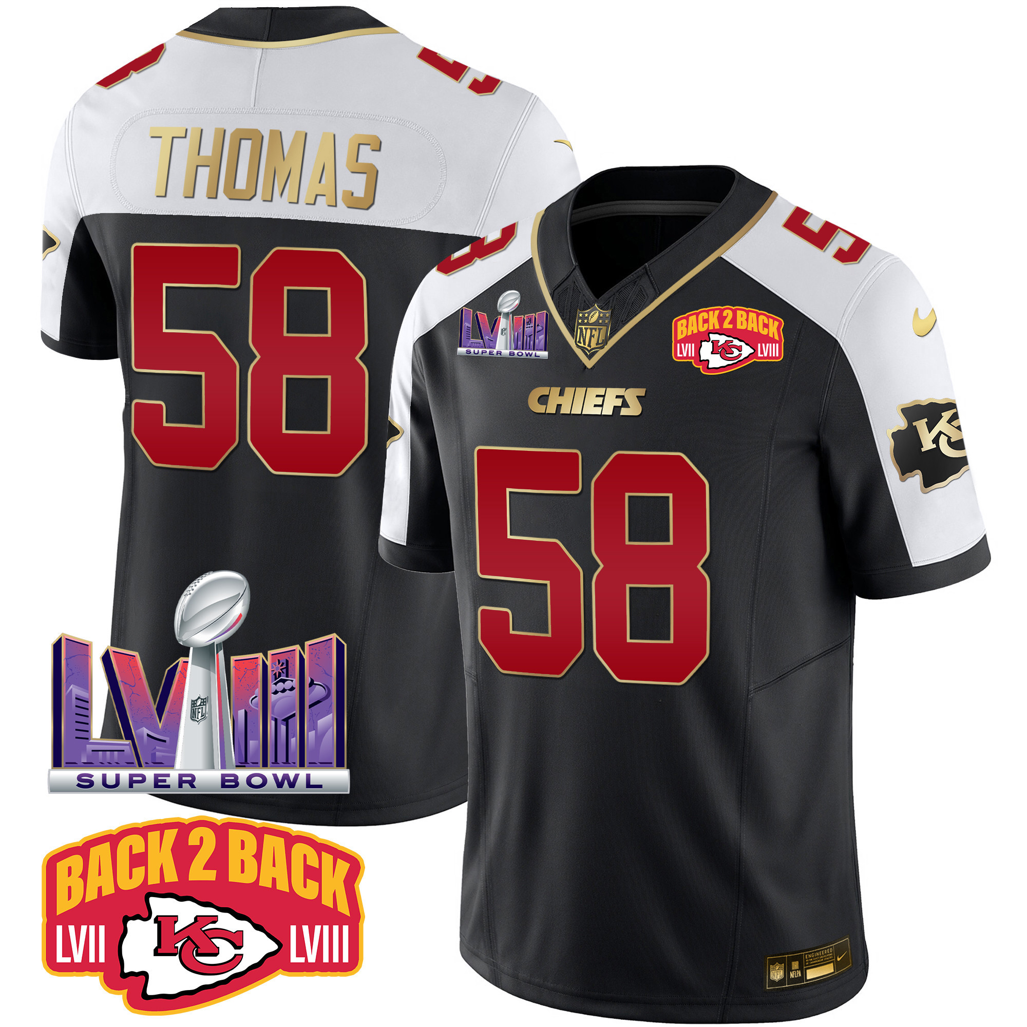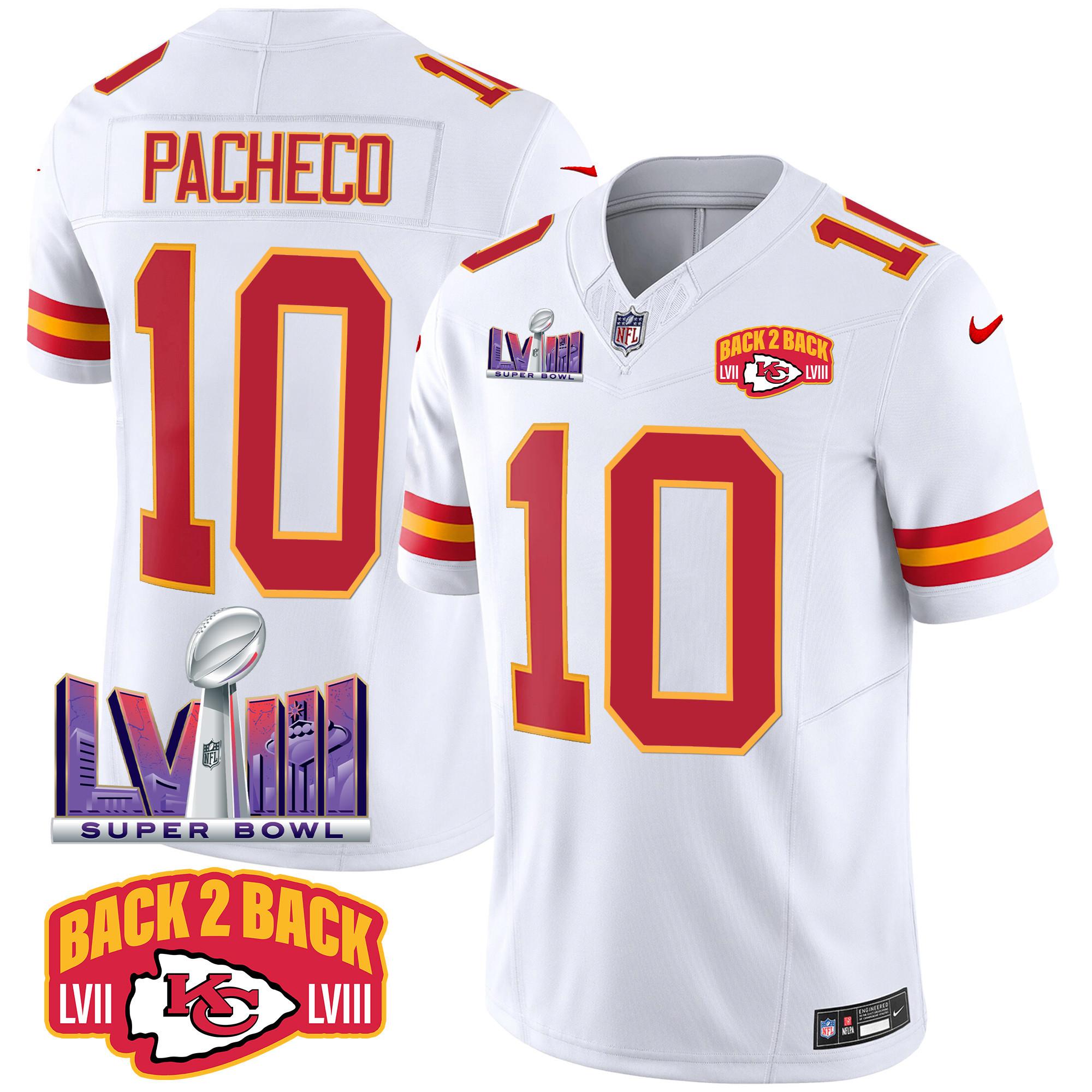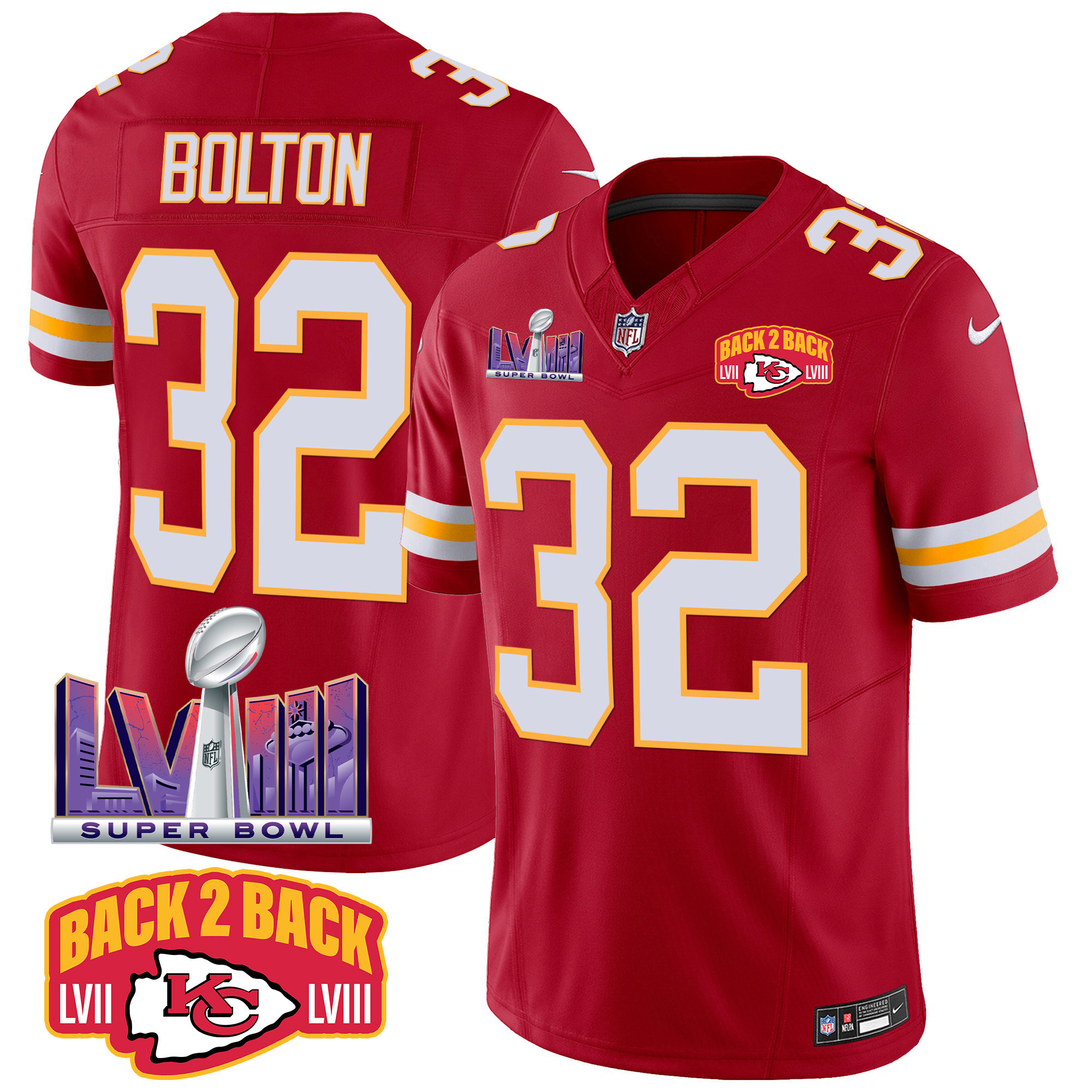Men’s Kansas City Chiefs Super Bowl LVIII & Back 2 Back Patch Vapor Jersey – All Stitched