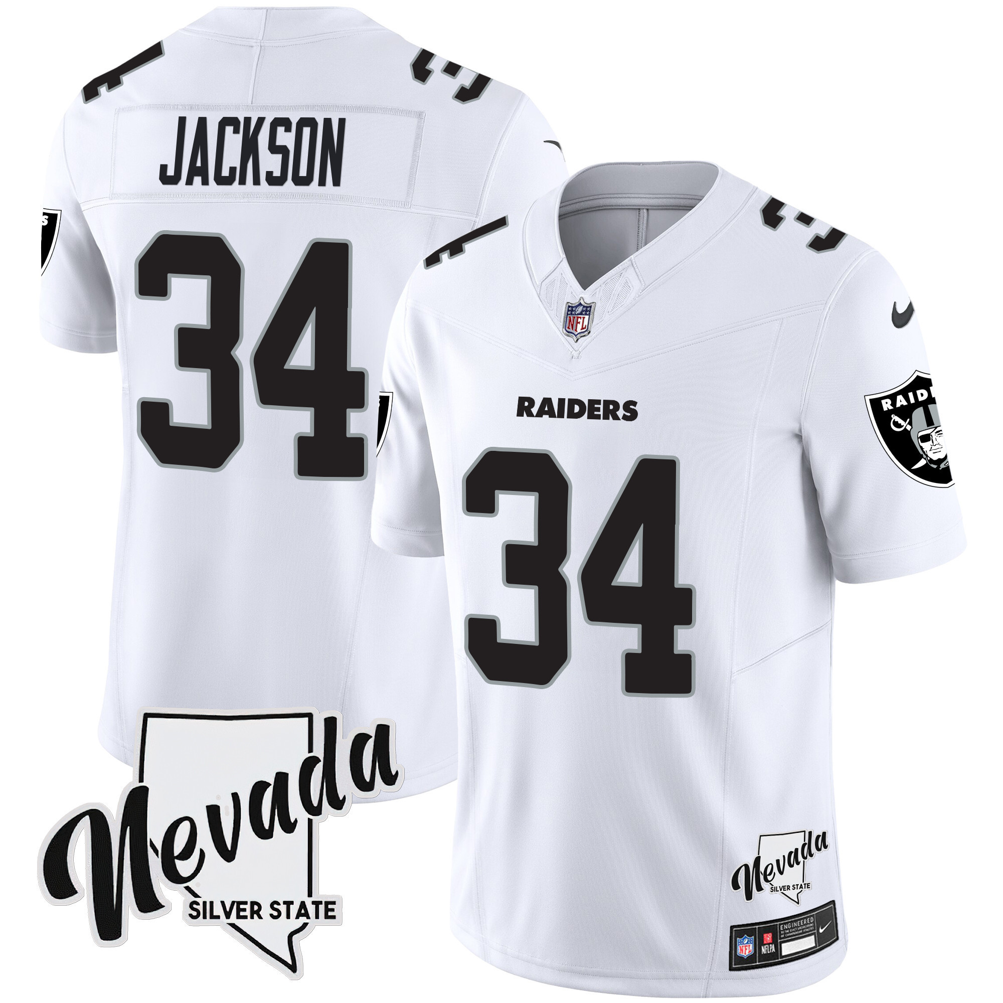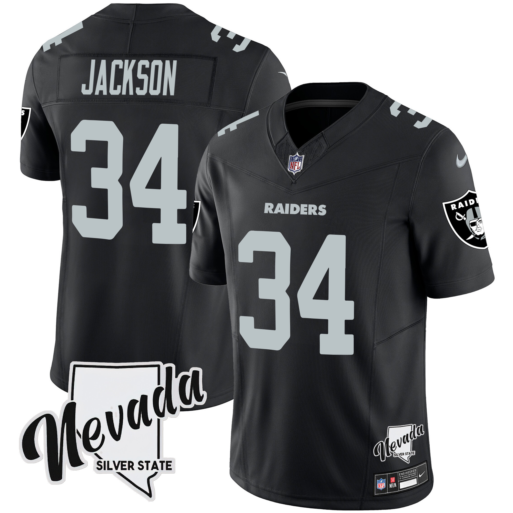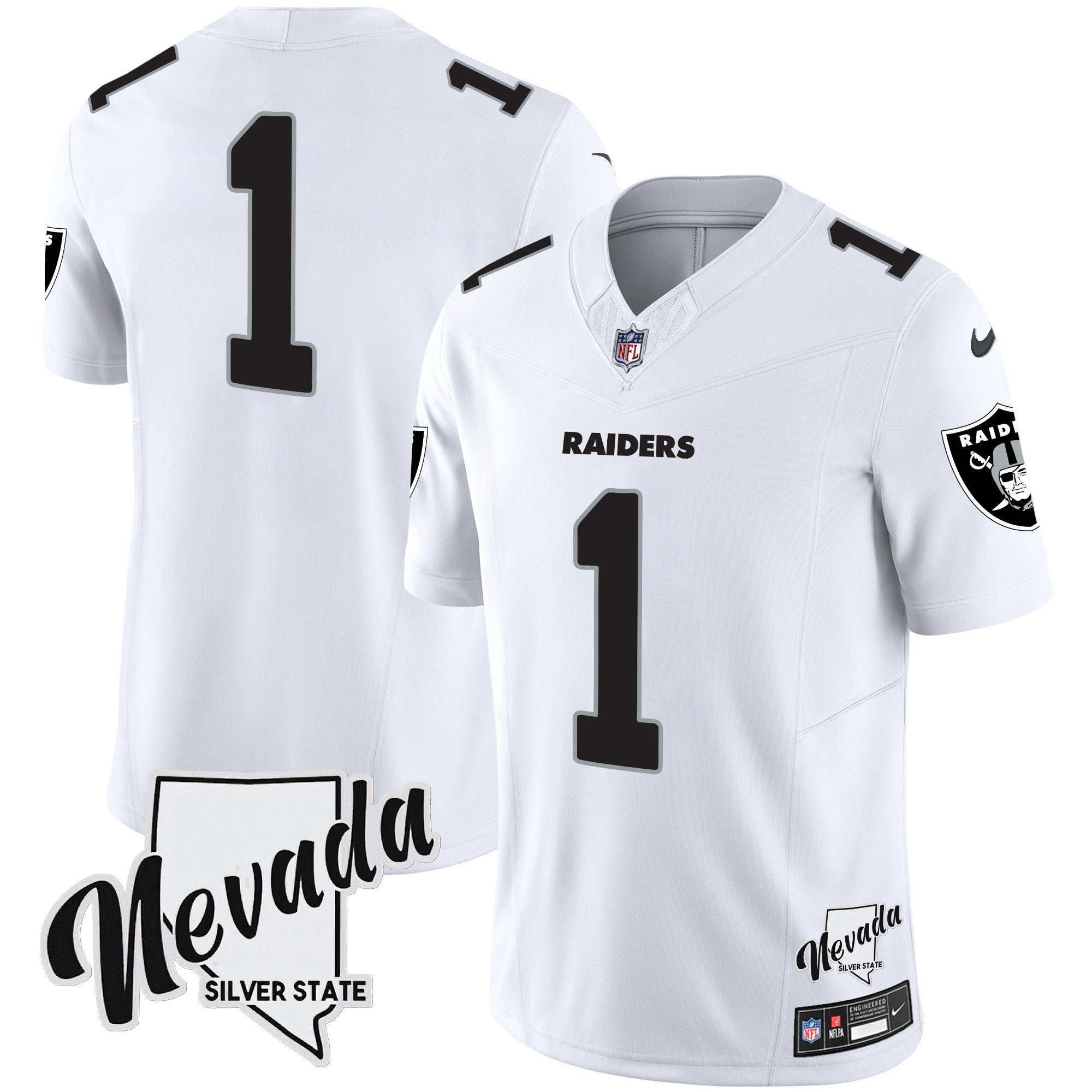 Men’s Las Vegas Raiders Nevada Silver State Patch Vapor Jersey V2 – All Stitched