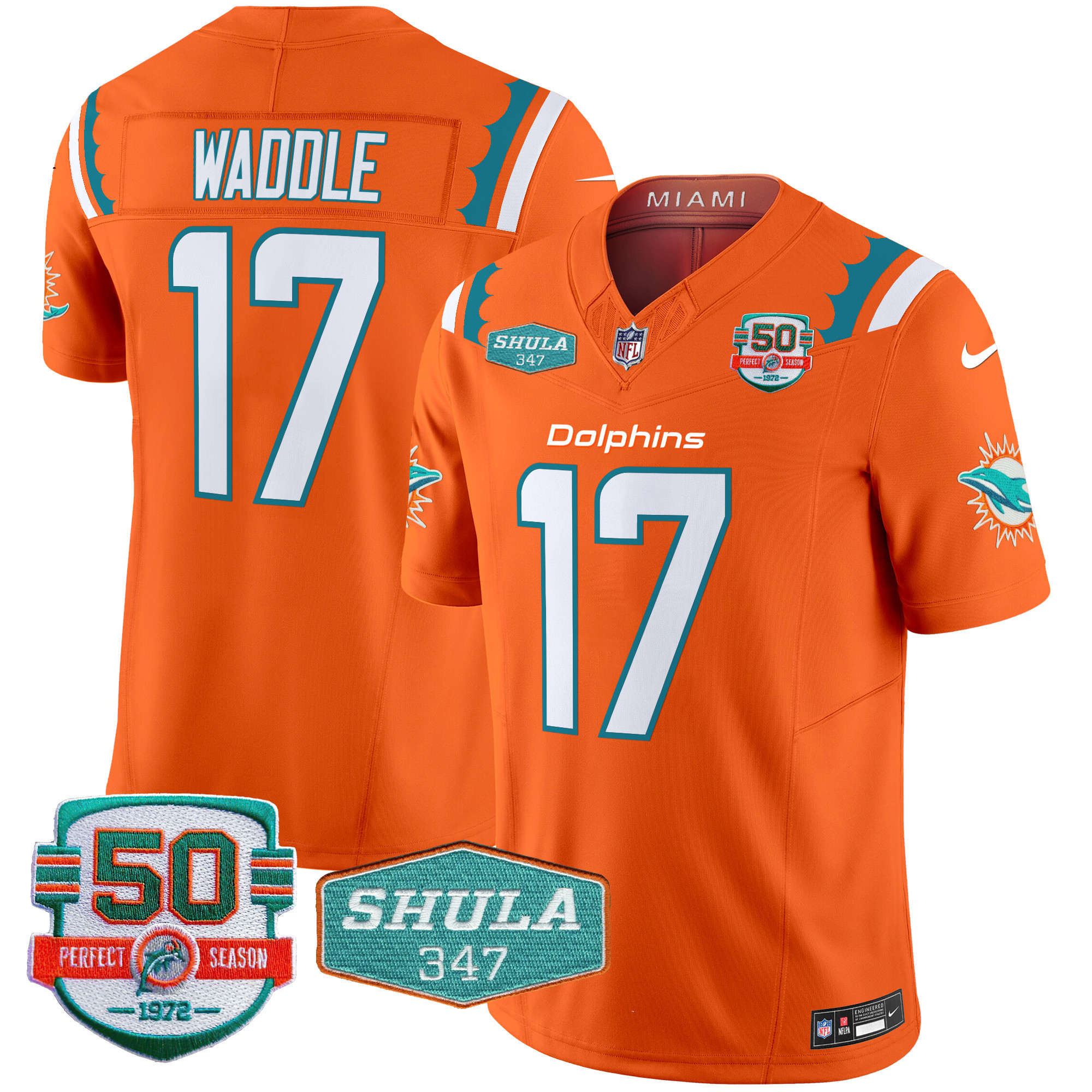 Men’s Miami Dolphins 50th & Don Shula 347 Memorial Patch Vapor Limited Jersey – All Stitched