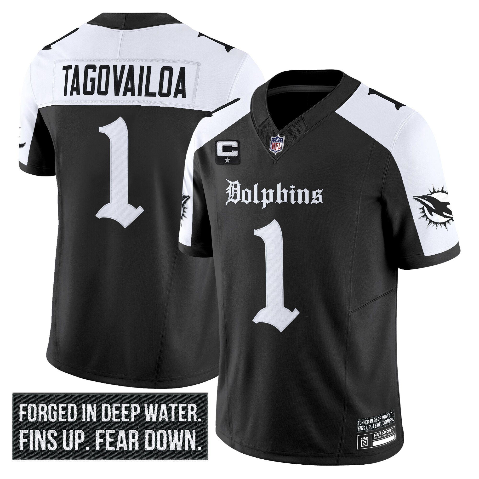 Men’s Miami Dolphins ‘Gothic Deep Water Edition’ Vapor Limited Jersey – All Stitched