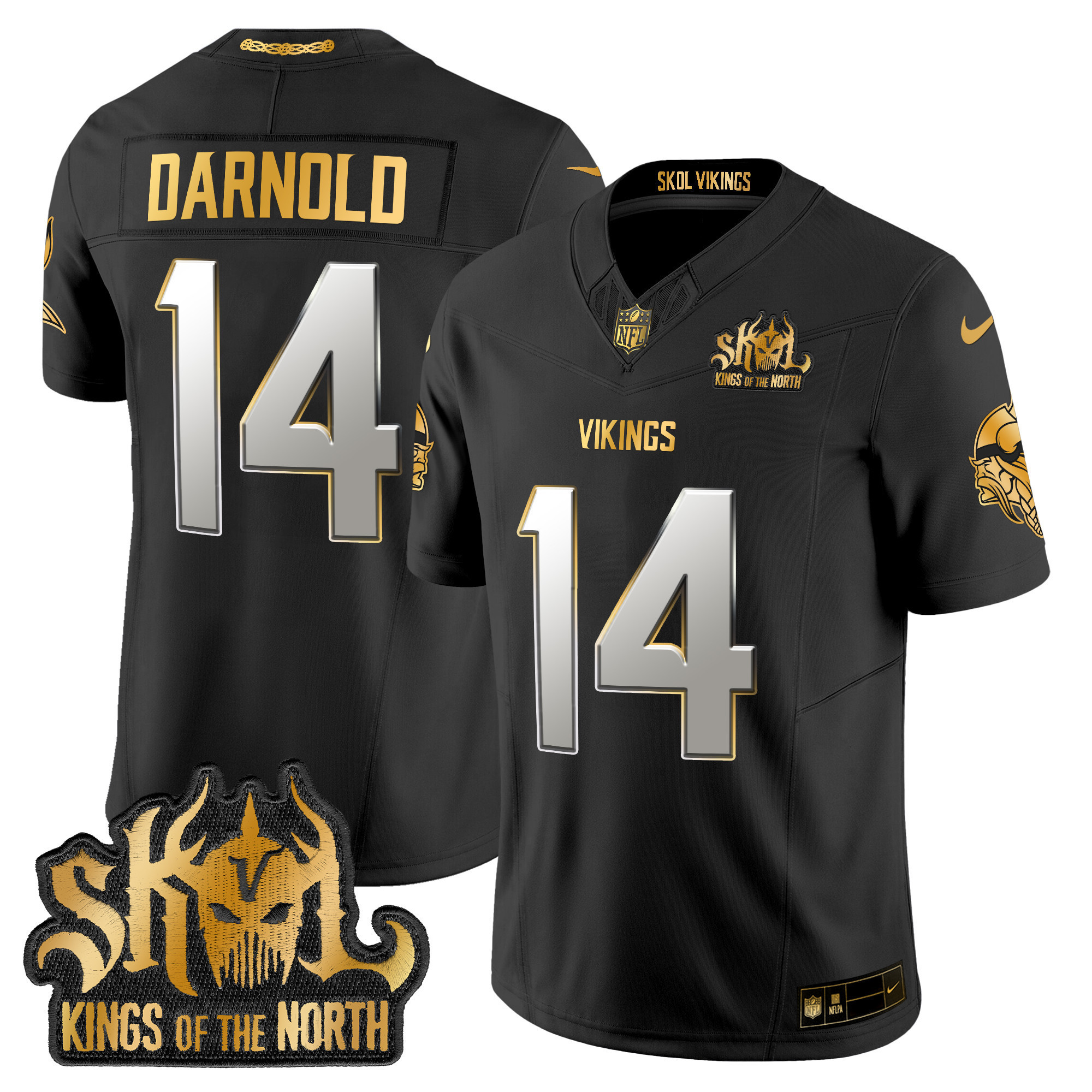 Men’s Minnesota Vikings 2024 Winter Warrior Skol Patch Gold Vapor Limited Jersey – All Stitched