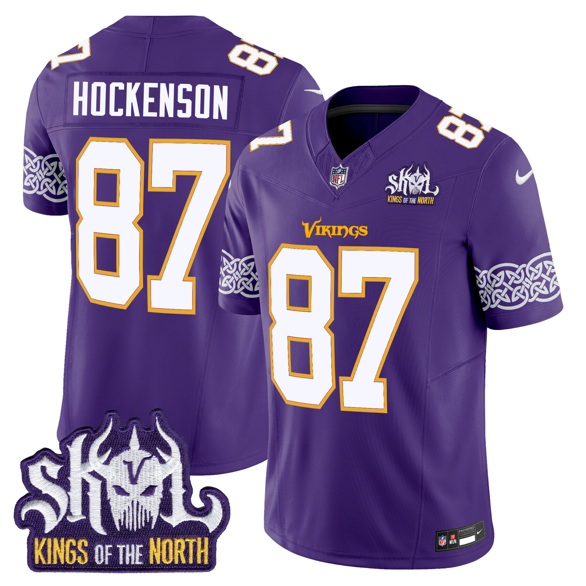 Men’s Minnesota Vikings King Of The North Patch Throwback Vapor Limited Jersey V2 – All Stitched