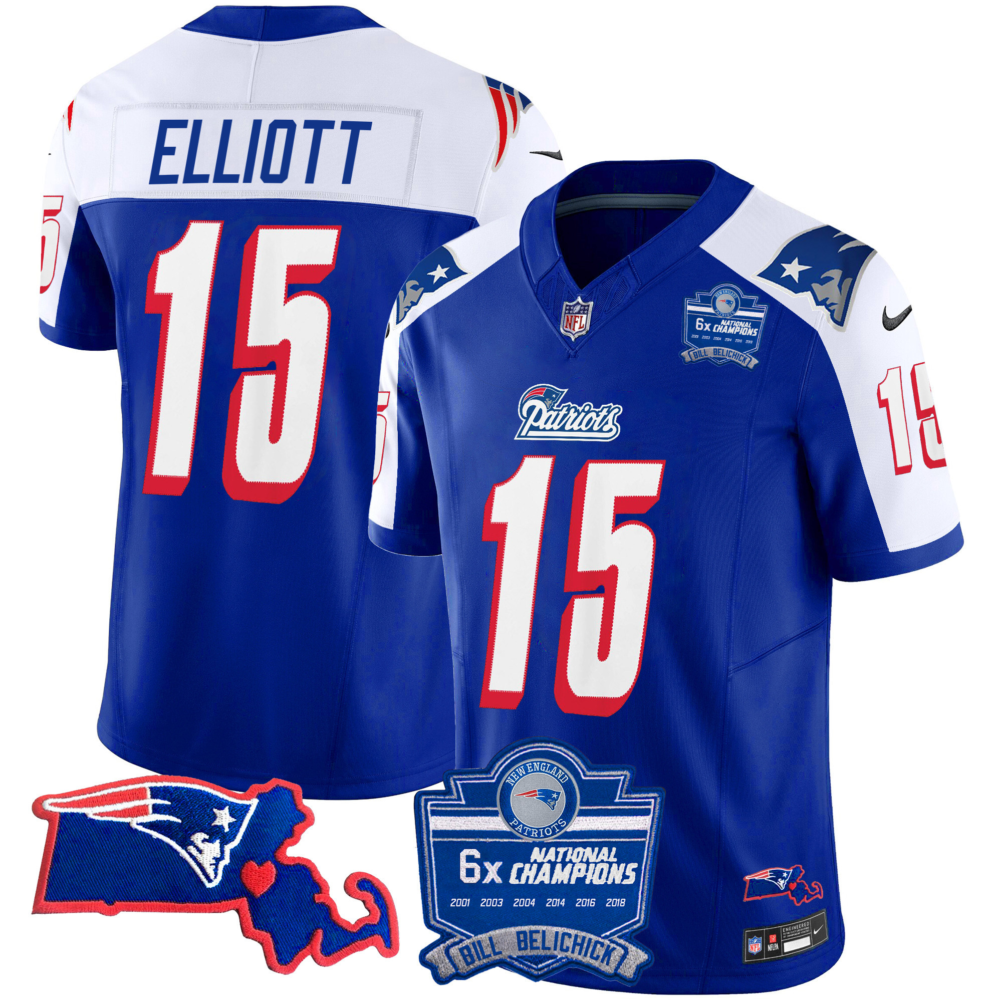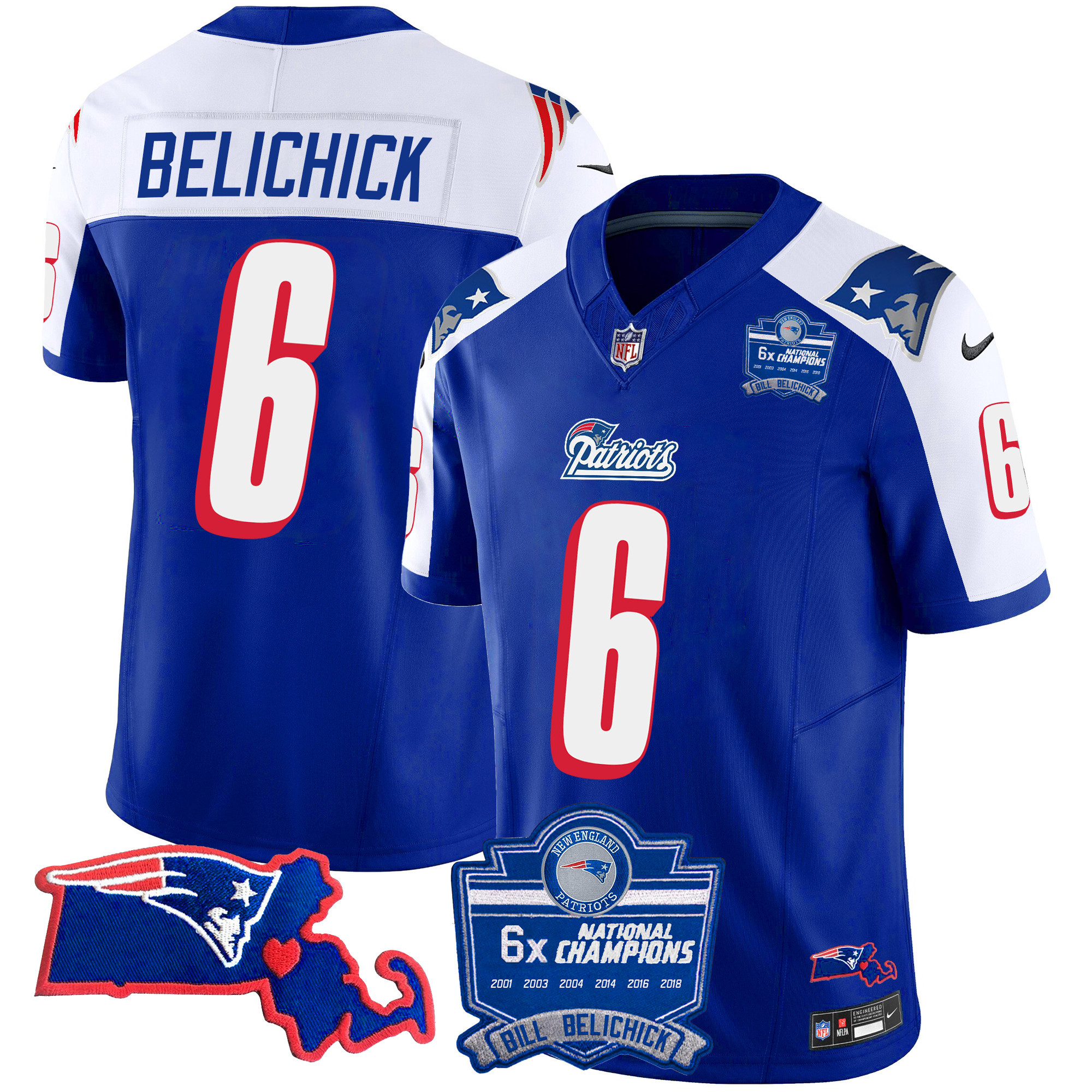 Men’s New England Patriots Bill Belichick 6x Champions Patch Vapor Jersey – All Stitched