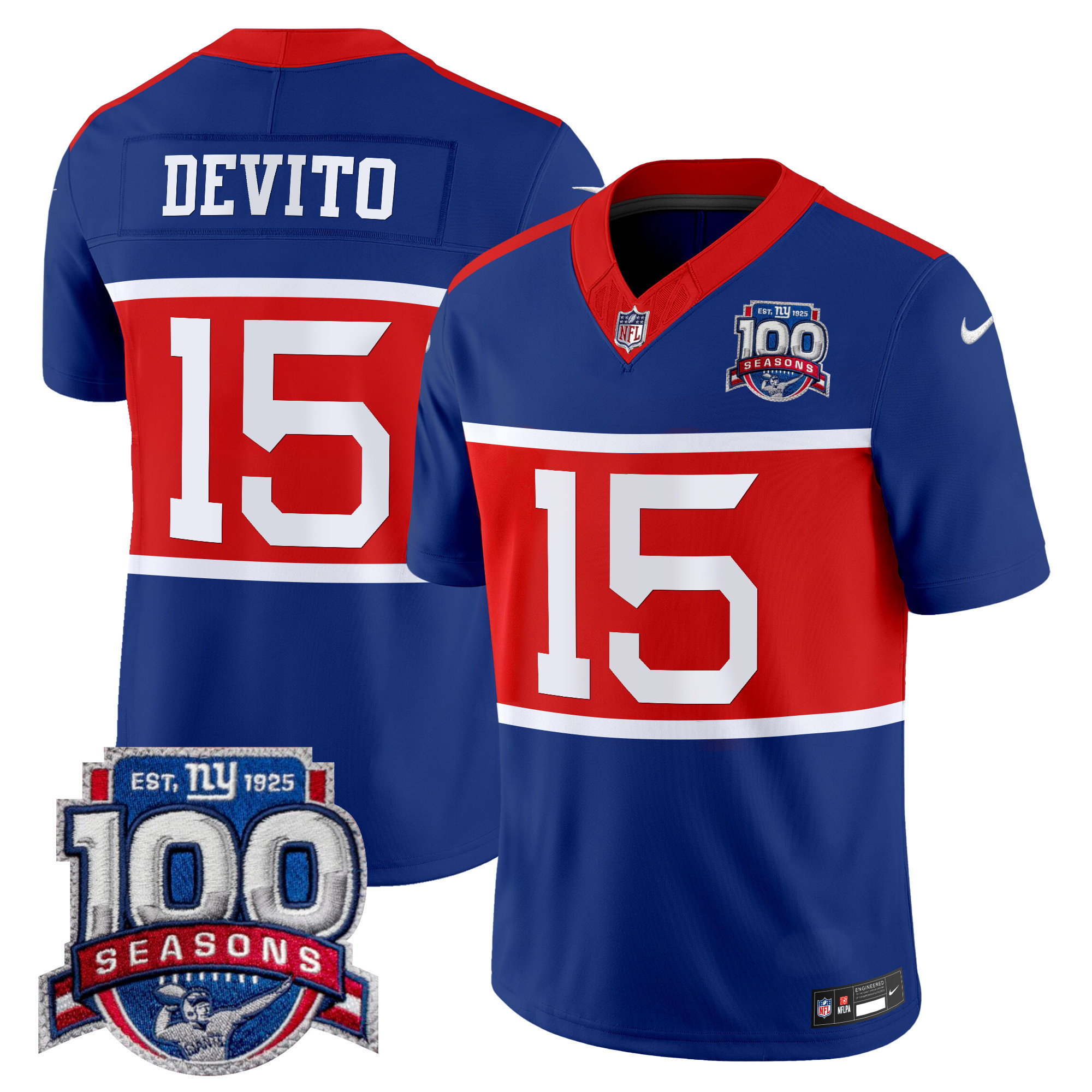 Men’s New York Giants ‘Century Red’ 100th Season Commemorative Vapor Jersey – All Stitched