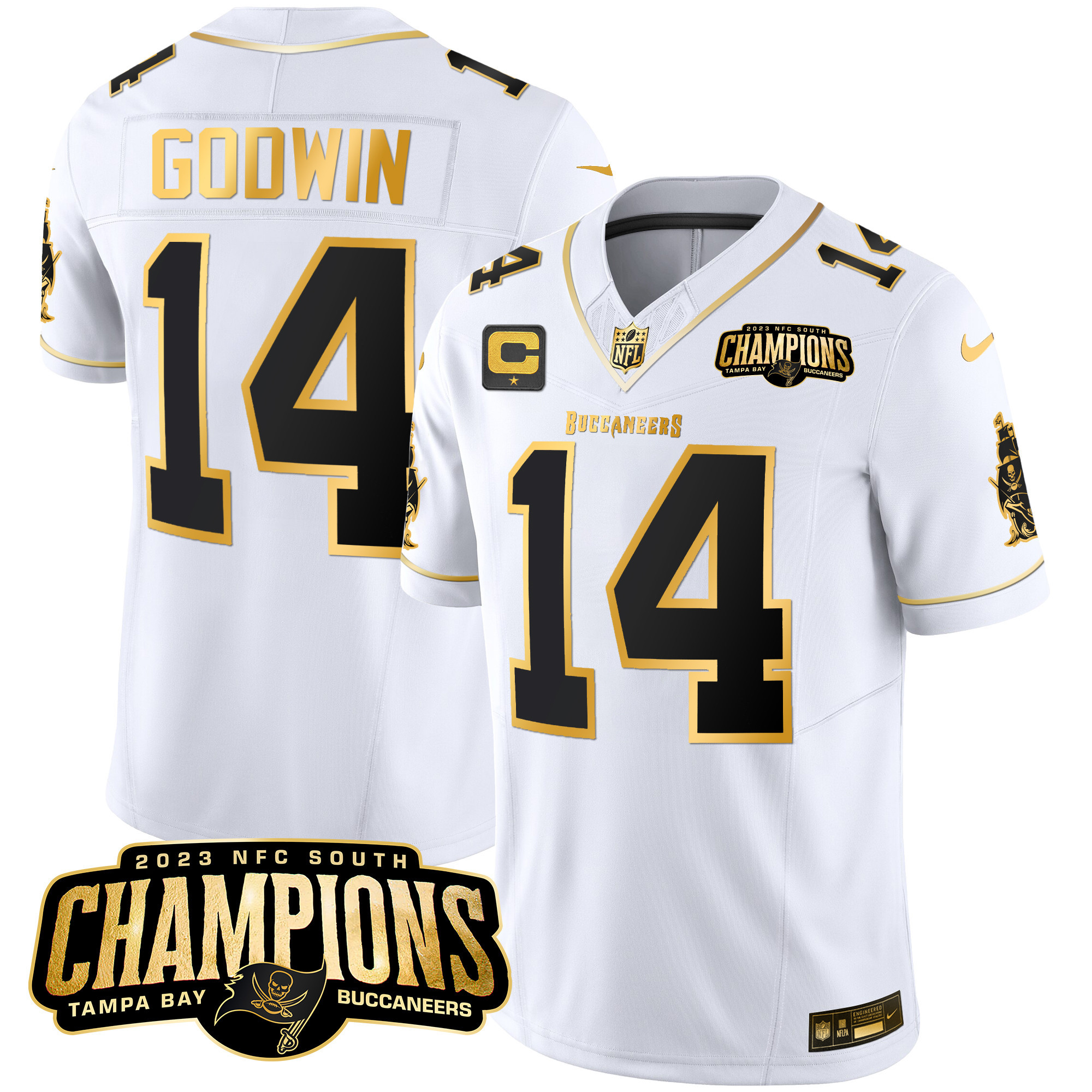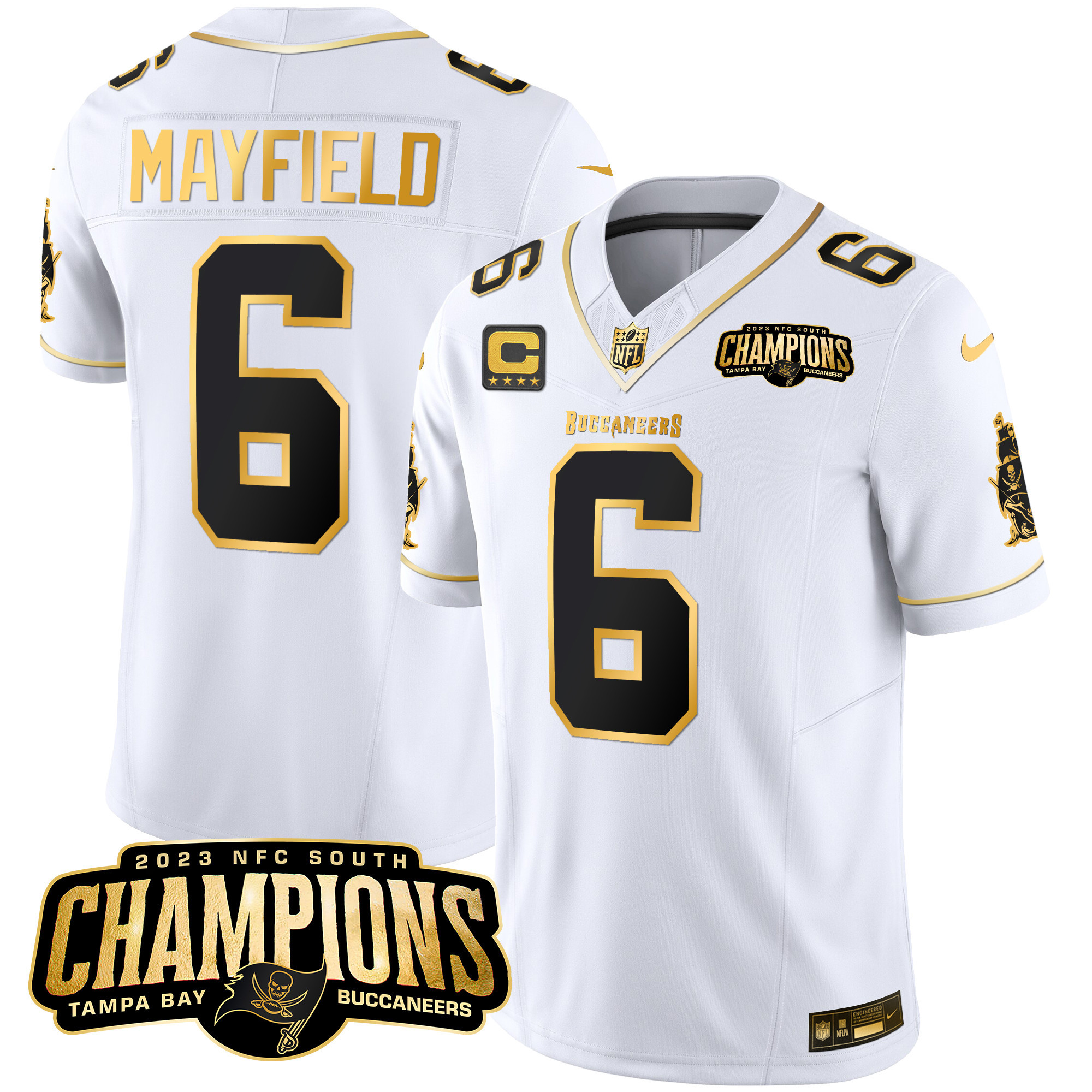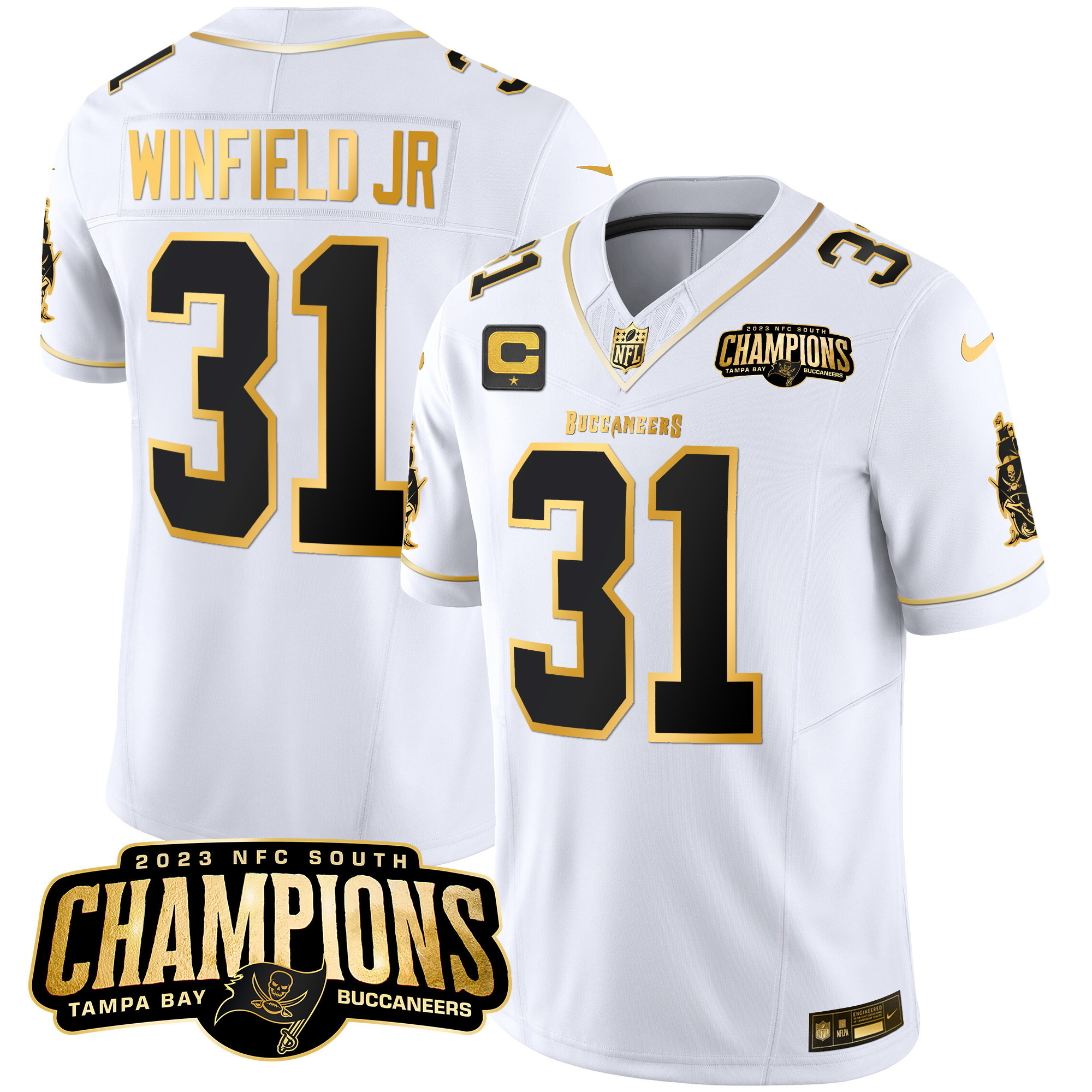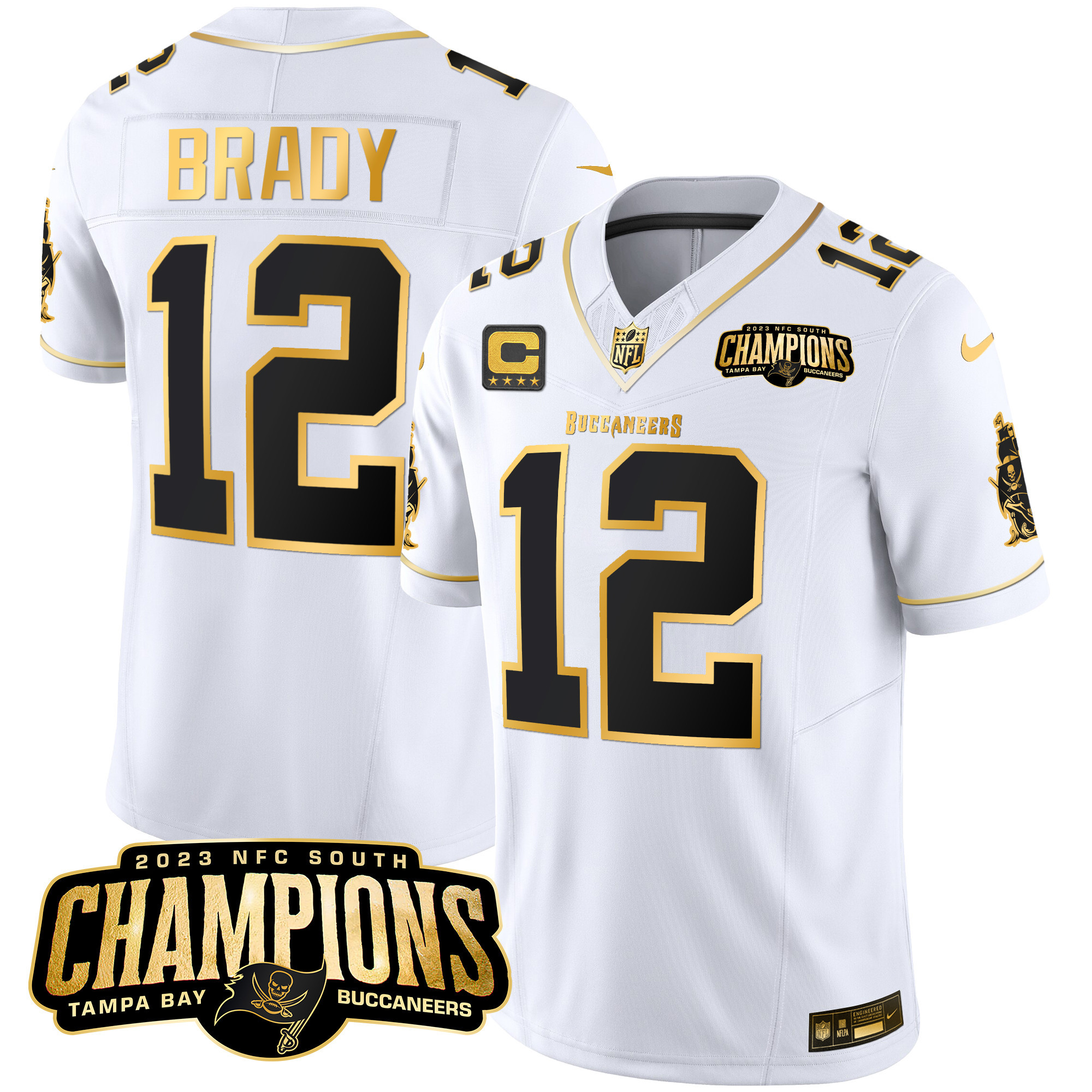 Men’s Tampa Bay Buccaneers 2023 NFC South Champions Patch Gold Vapor Jersey – All Stitched