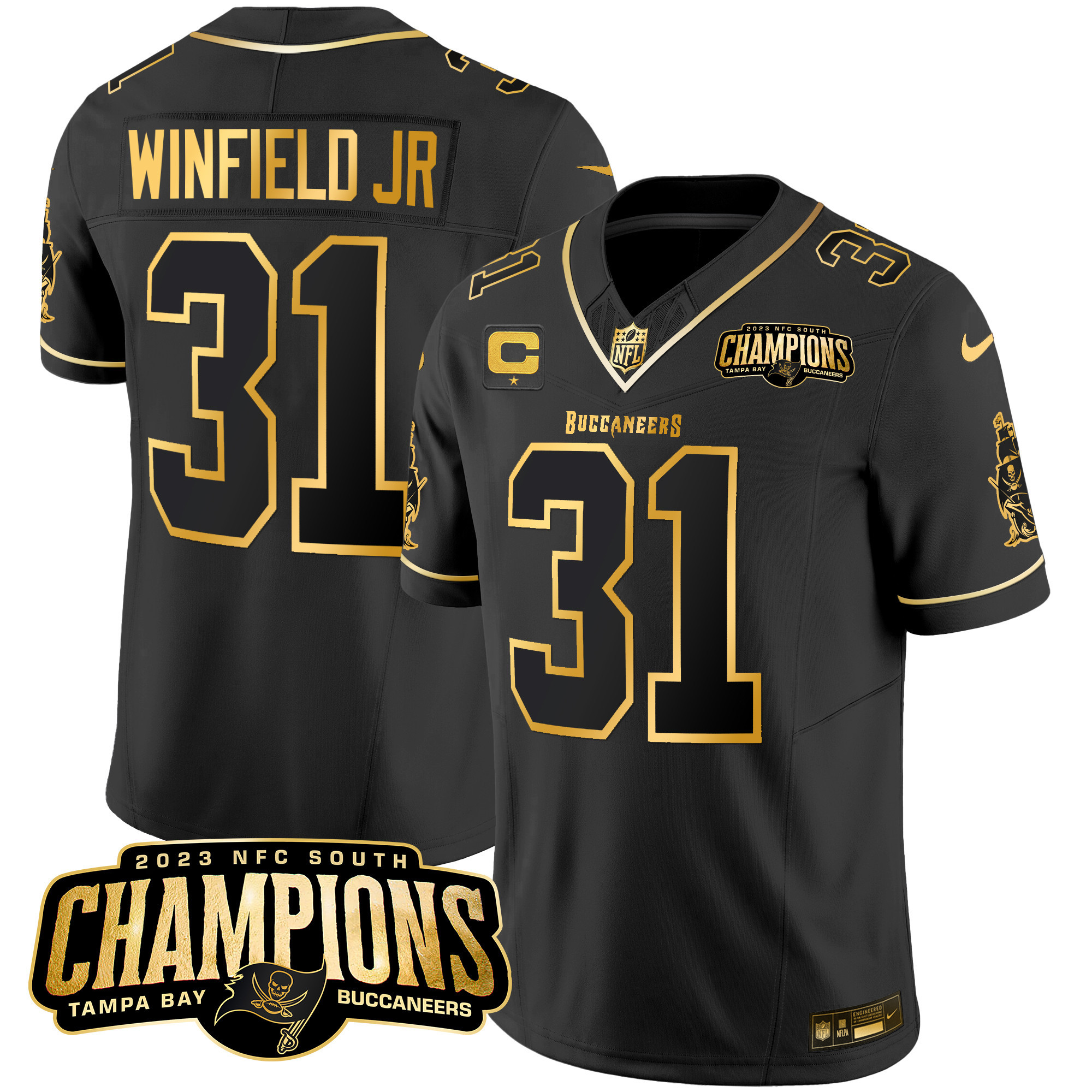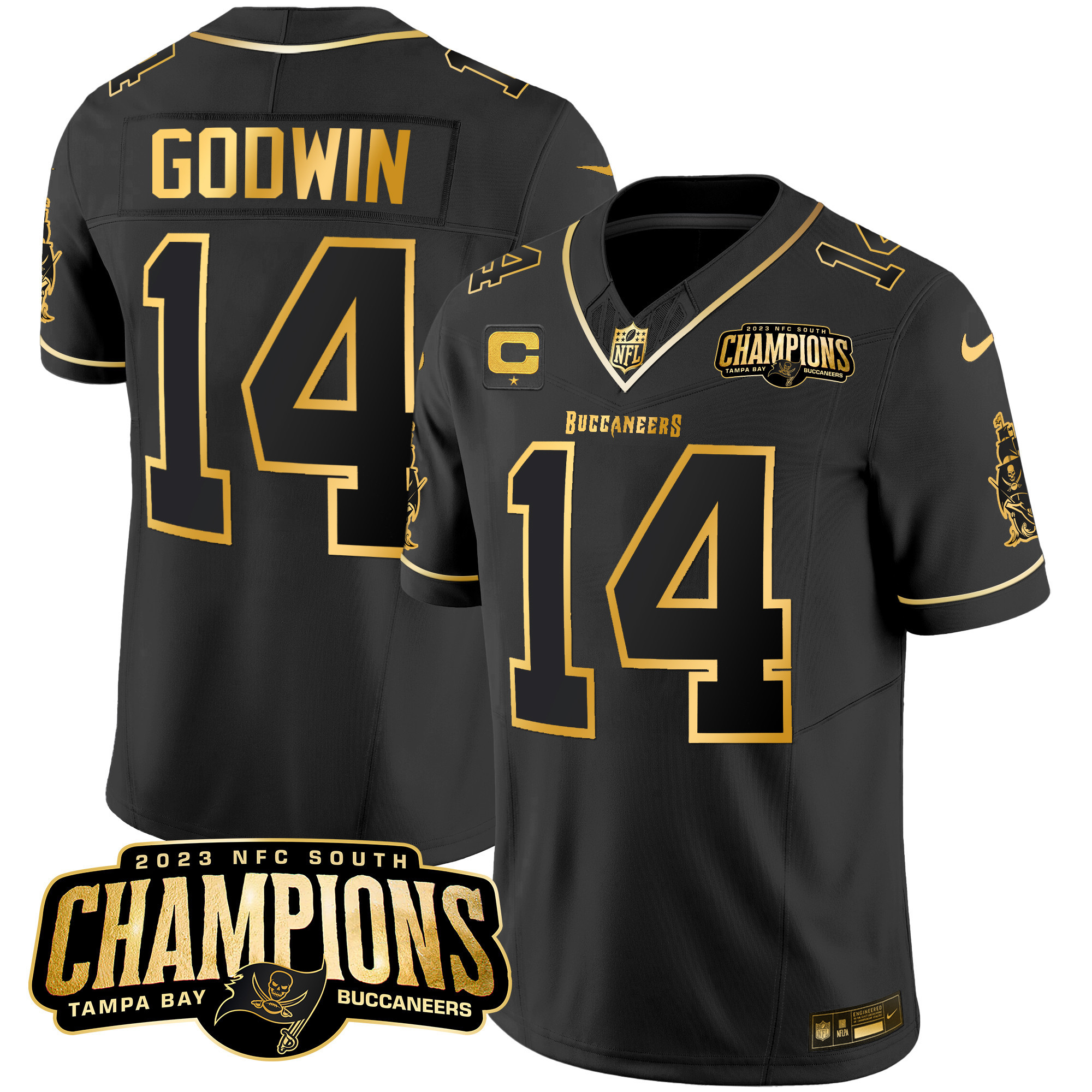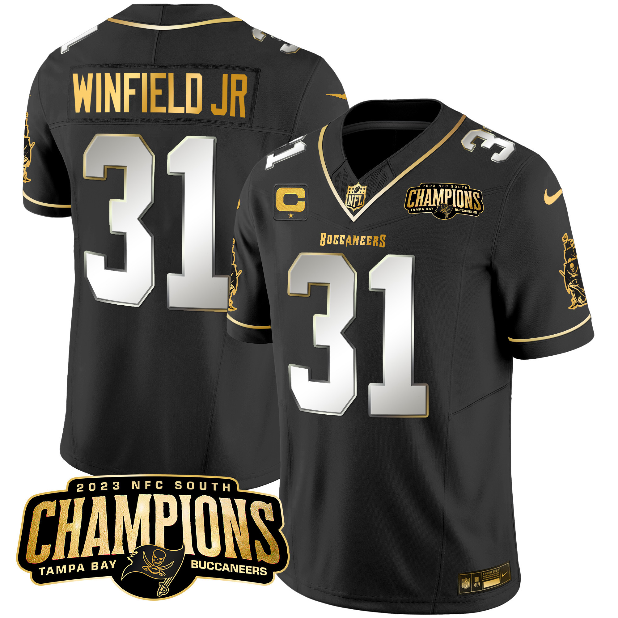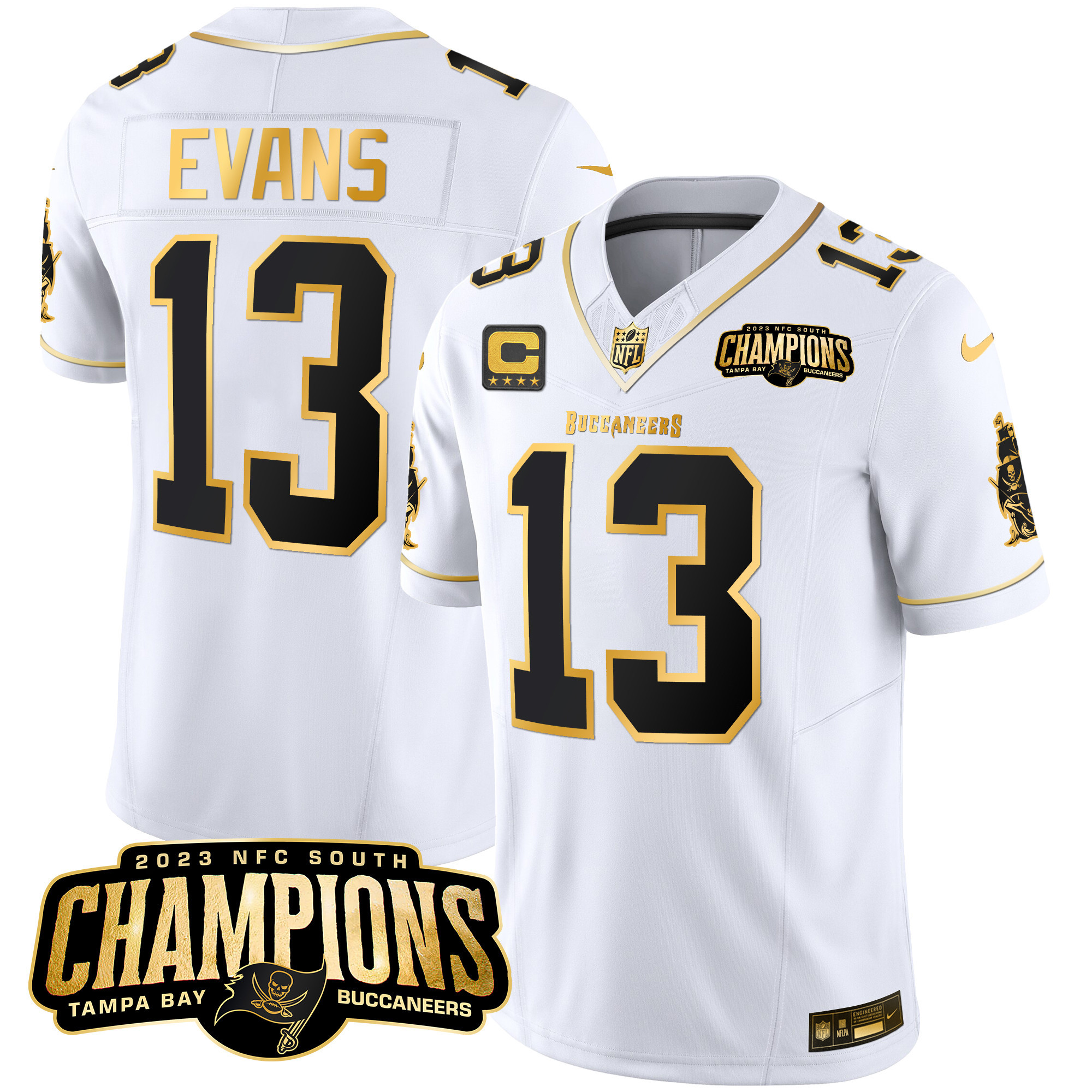 Men’s Tampa Bay Buccaneers 2023 NFC South Champions Patch Gold Vapor Jersey – All Stitched