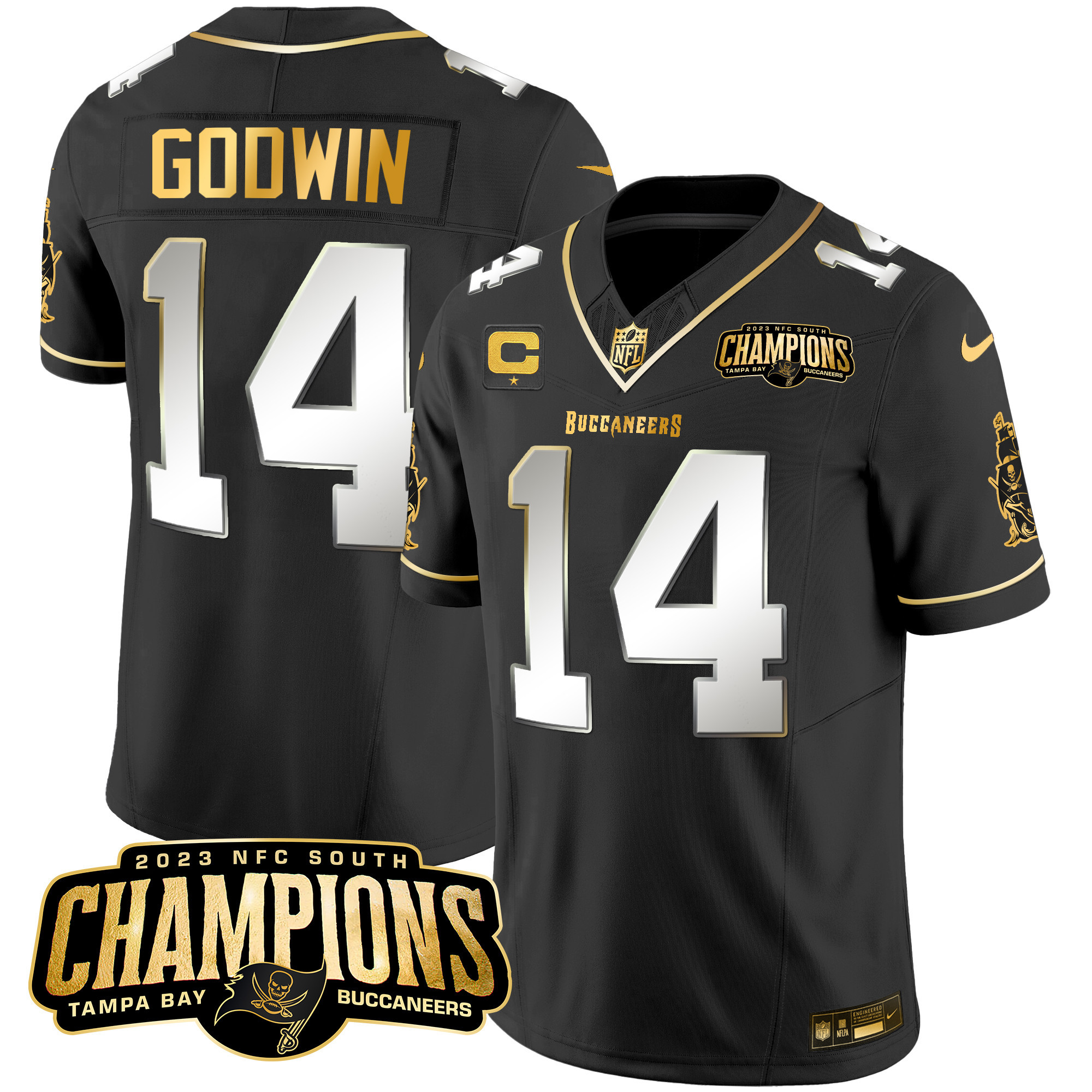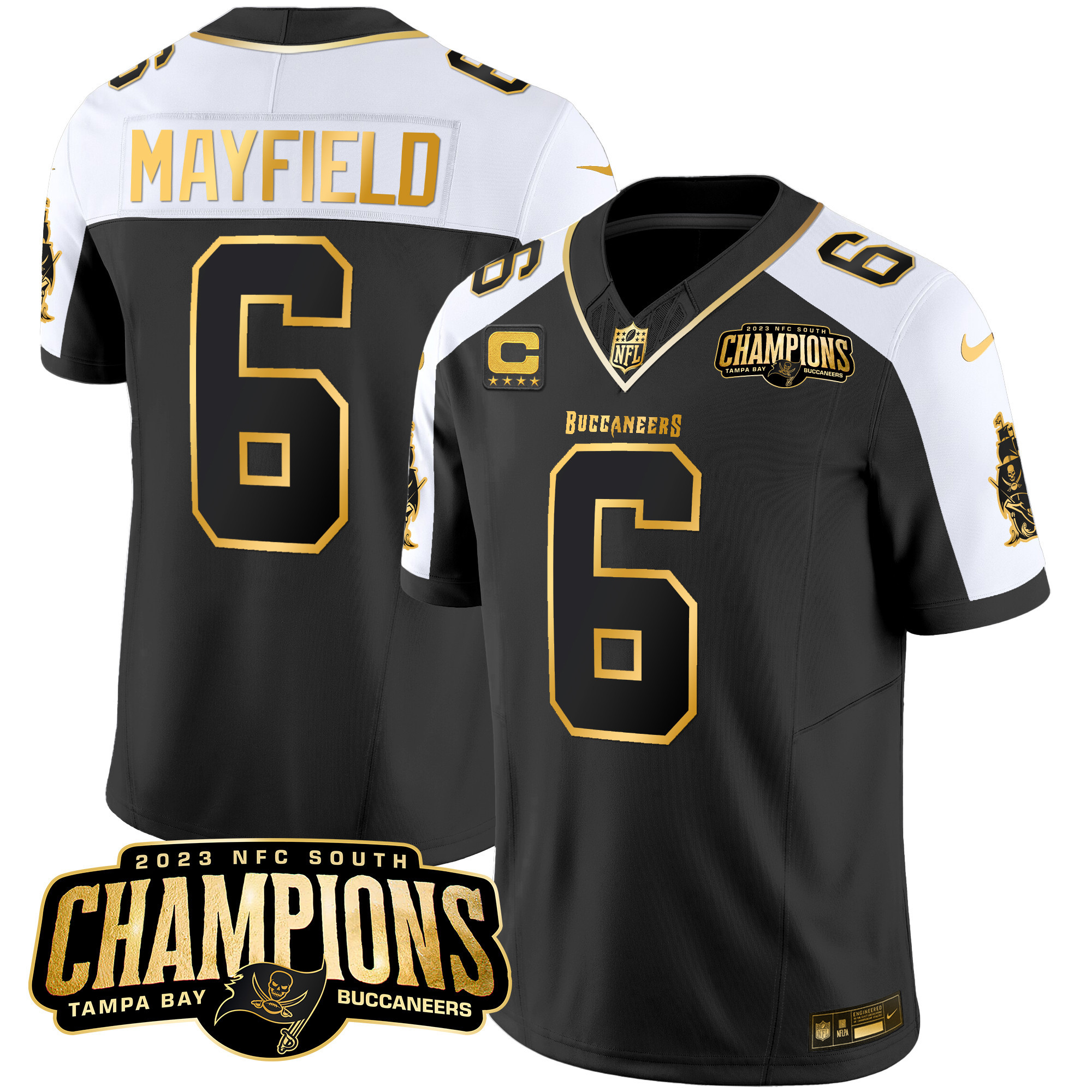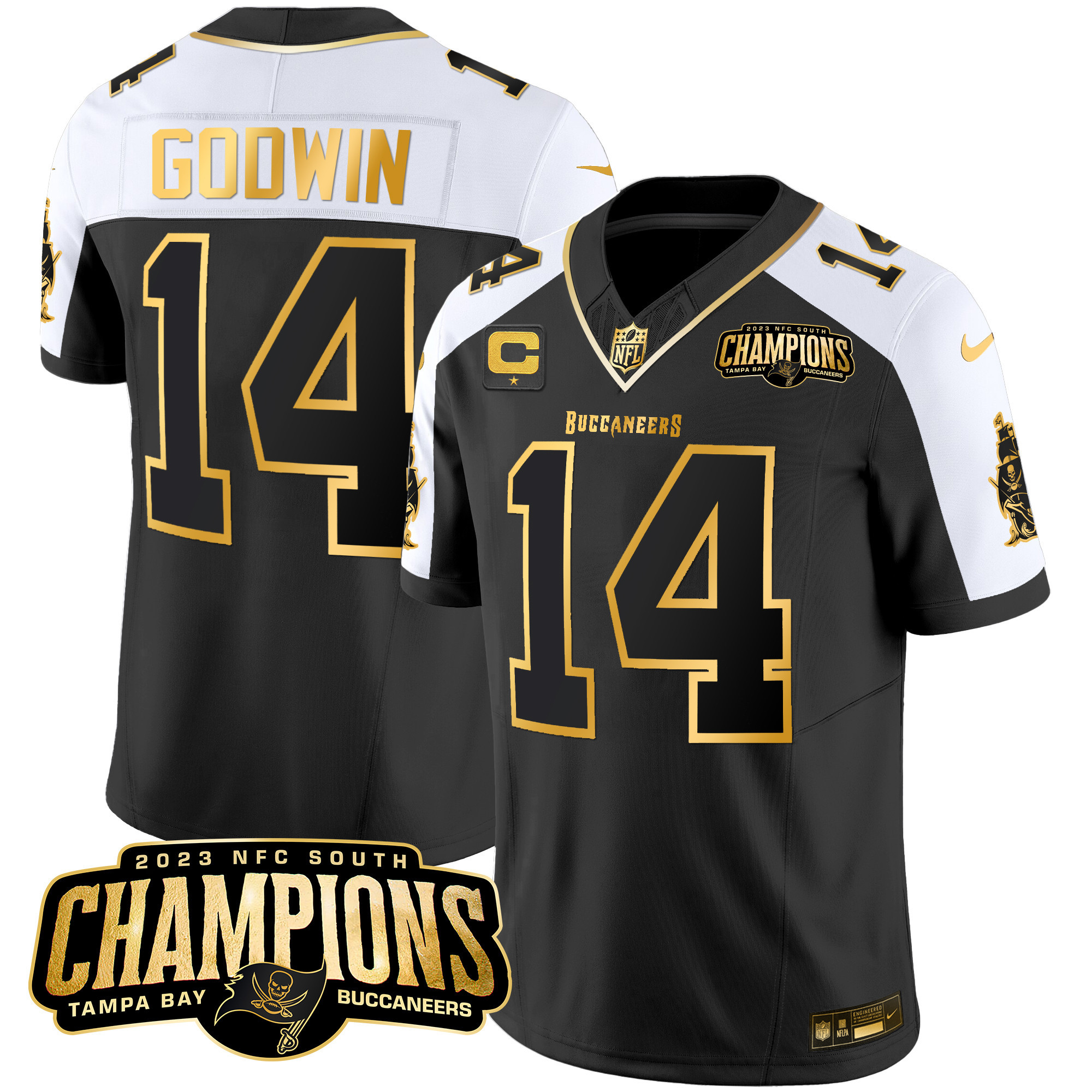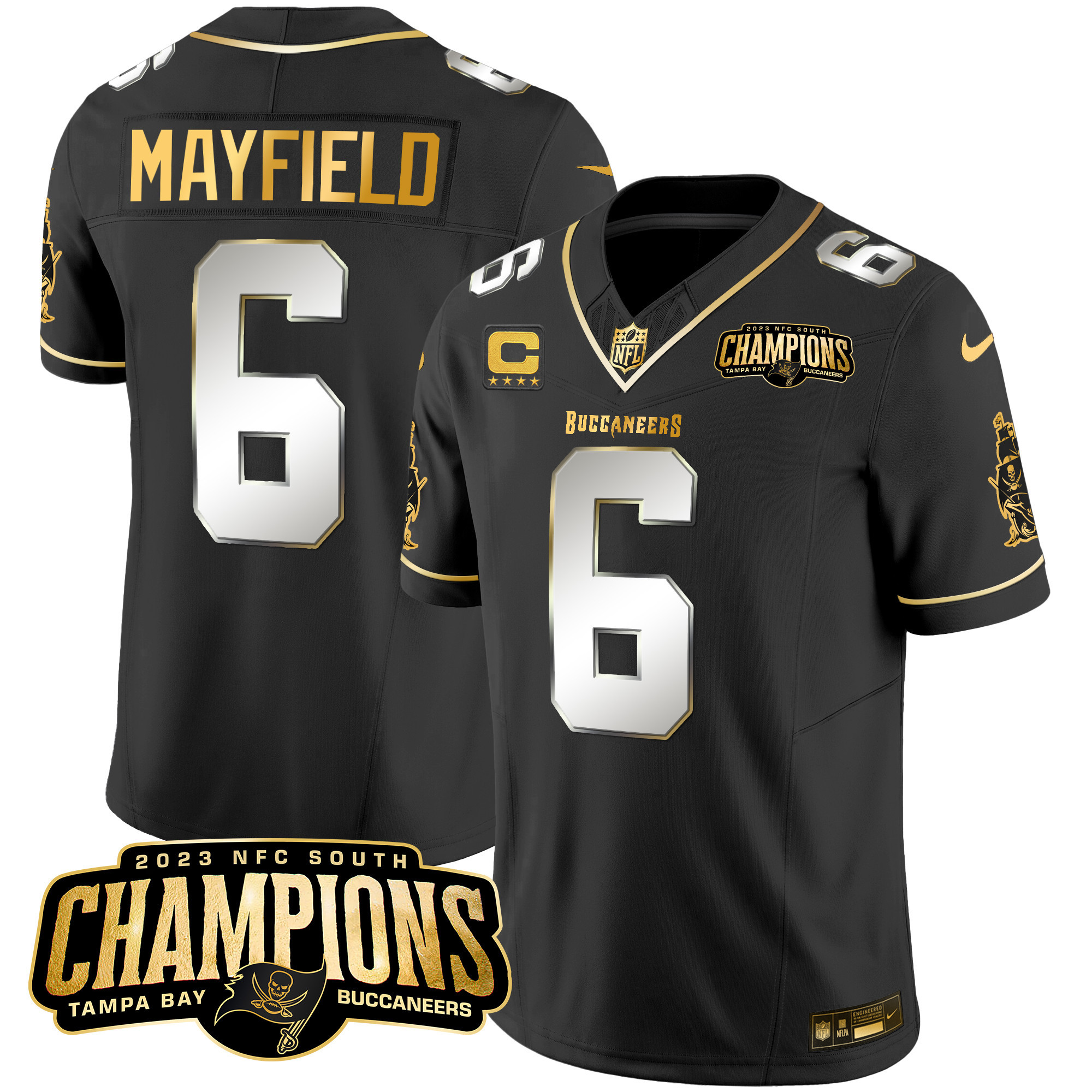 Men’s Tampa Bay Buccaneers 2023 NFC South Champions Patch Gold Vapor Jersey – All Stitched