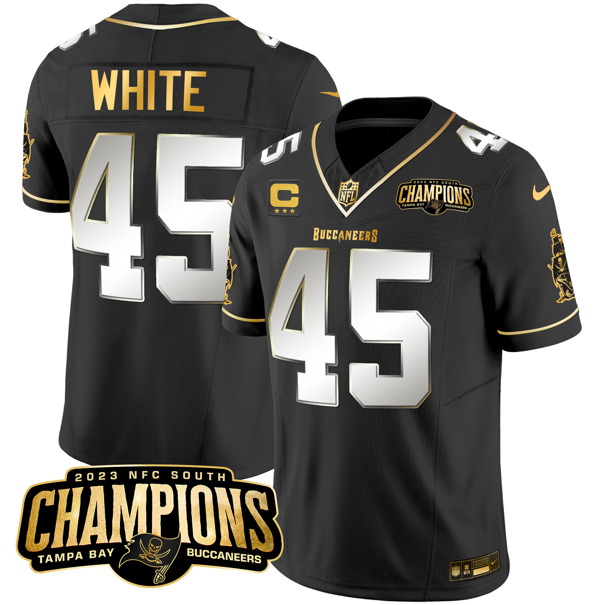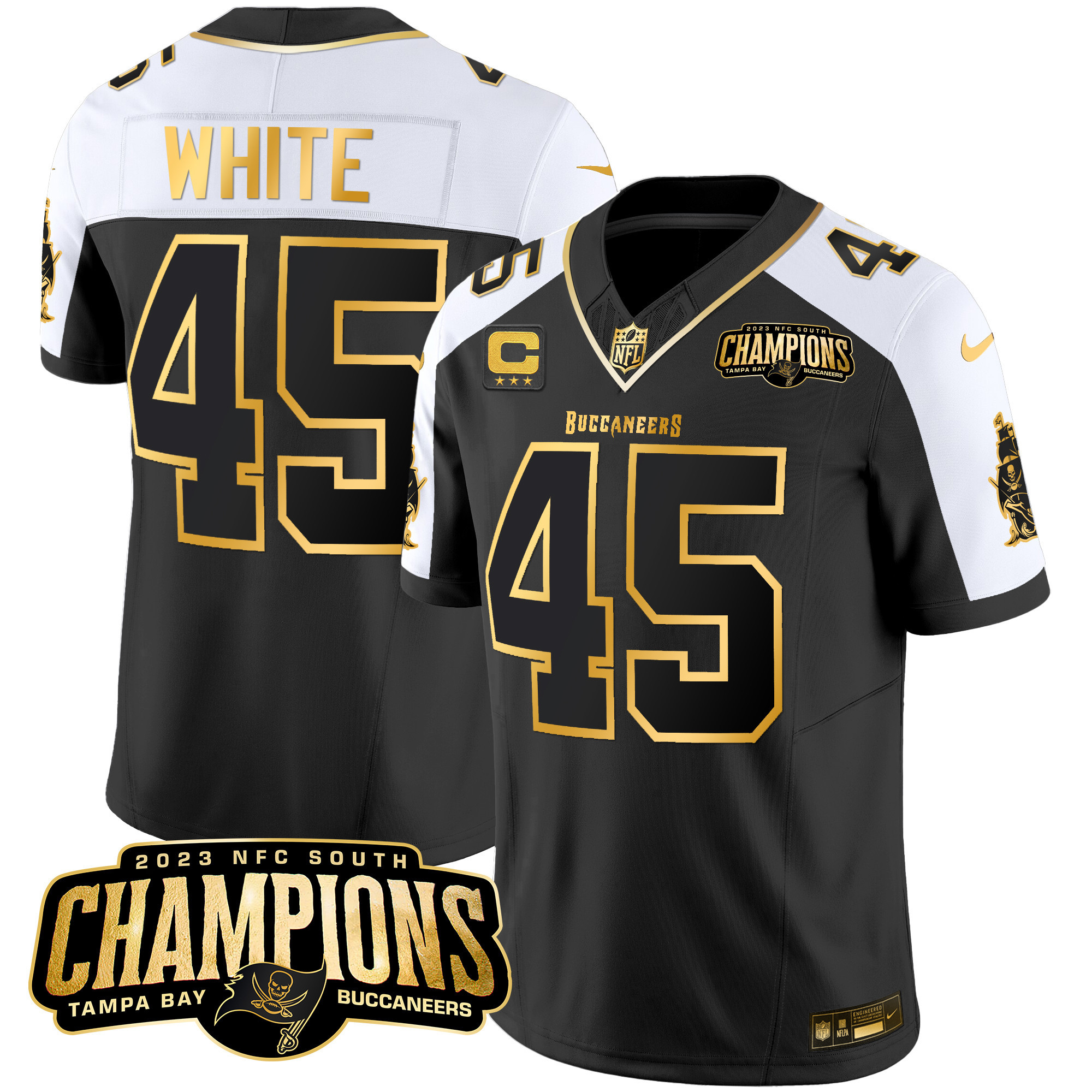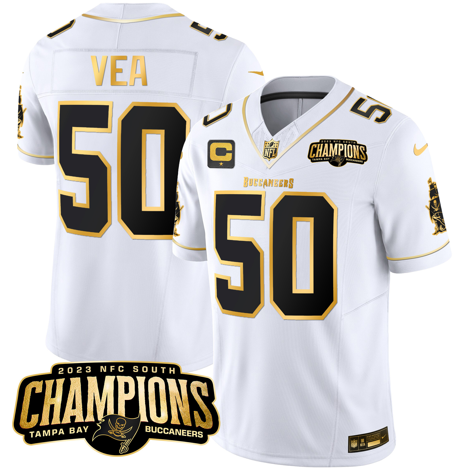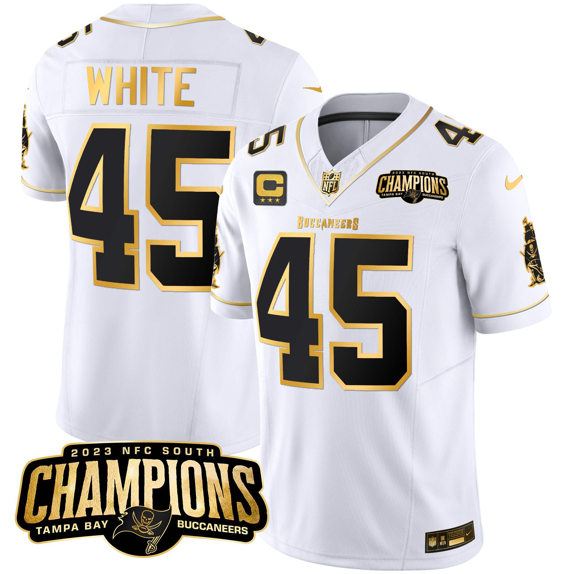 Men’s Tampa Bay Buccaneers 2023 NFC South Champions Patch Gold Vapor Jersey – All Stitched
