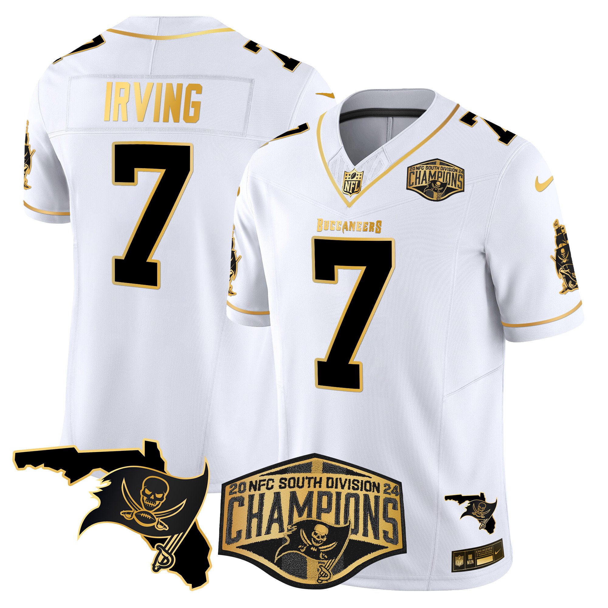 Men’s Tampa Bay Buccaneers 2024 NFC South Division Champions Patch Gold Vapor Limited Jersey – All Stitched
