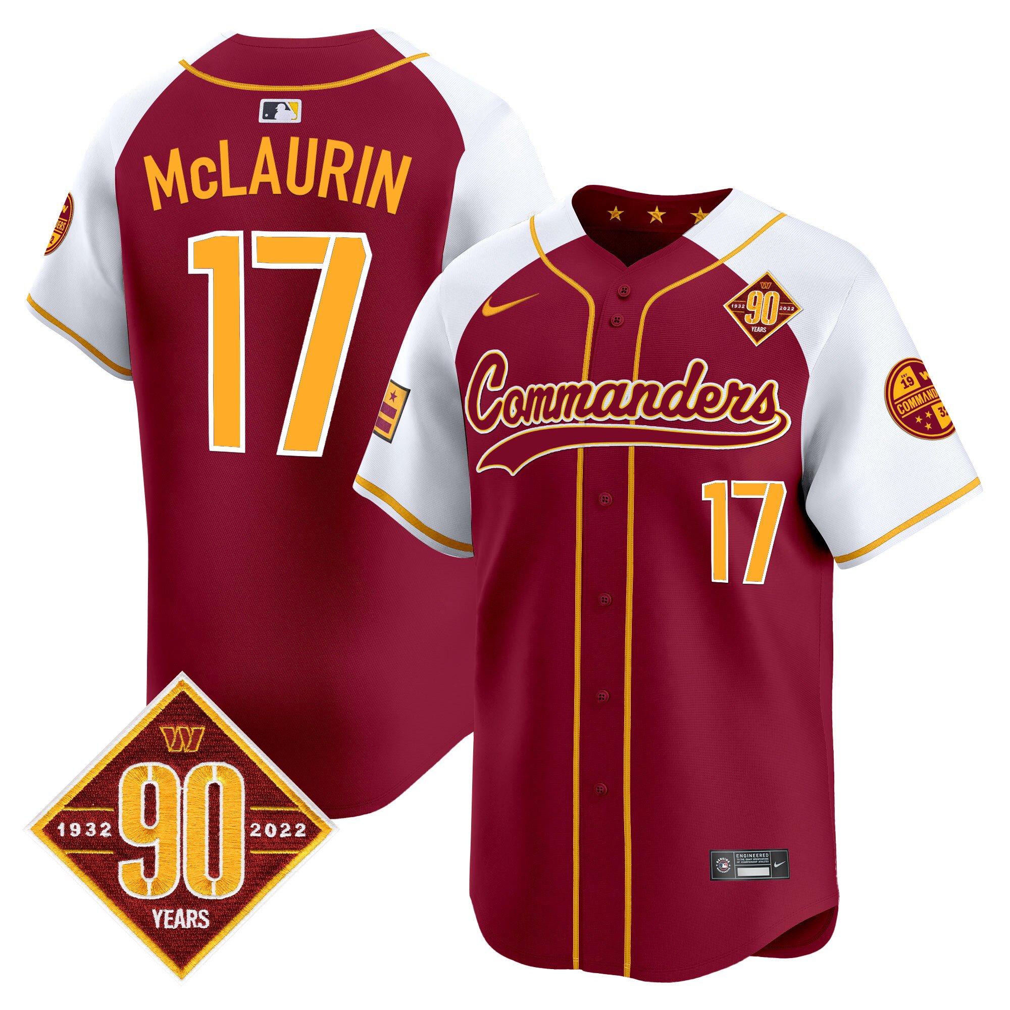 Men’s Washington Commanders 90th Anniversary Patch Vapor Premier Limited Jersey – All Stitched