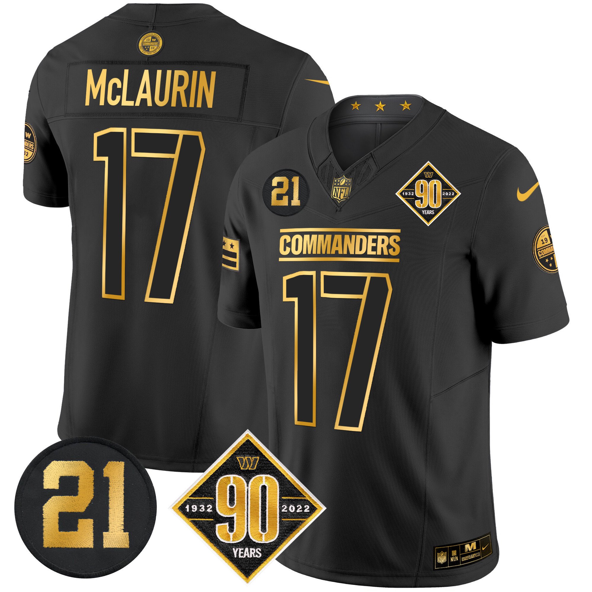 Men’s Washington Commanders 90th & Sean Taylor Patch Gold Vapor Limited Jersey – All Stitched