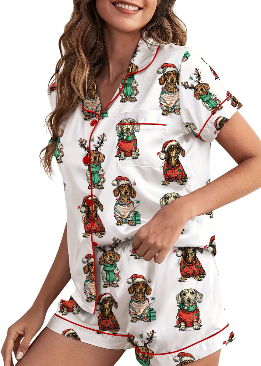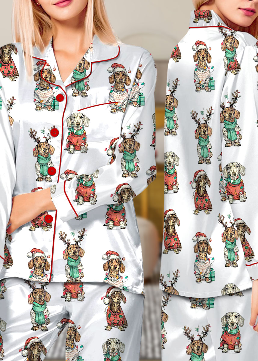 Merry Christmas Dachshund Dog Satin Pajama Set