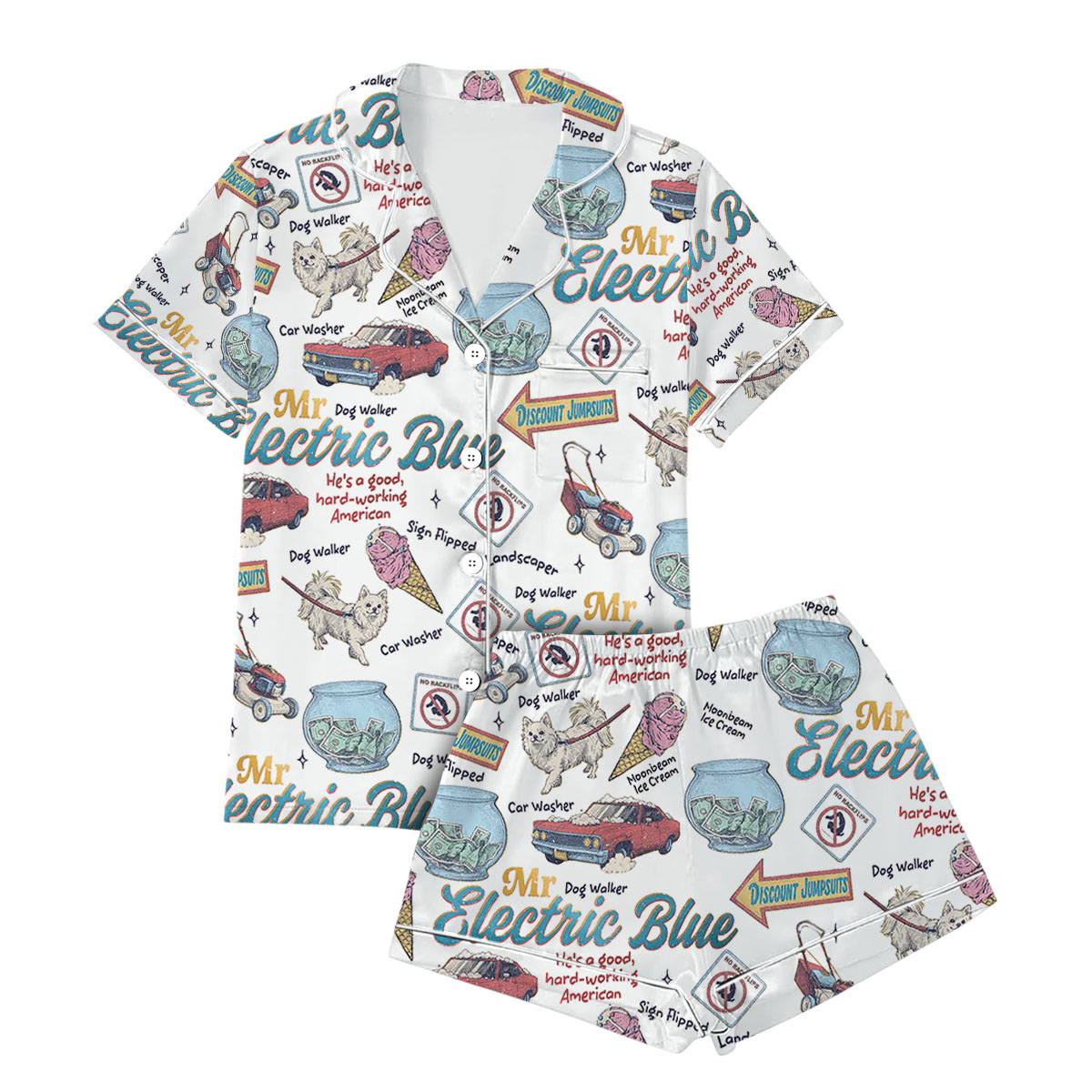 Mr Electric Blue Satin Pajamas Set For Women