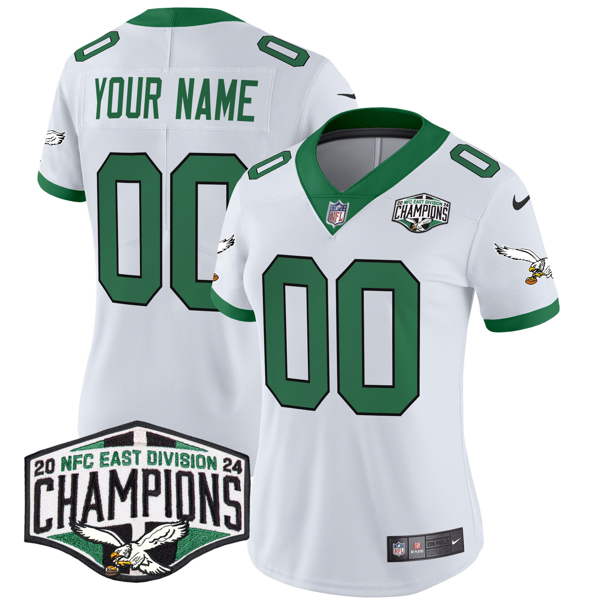 Philadelphia Eagles Kelly Green 2024 NFC East Division Champions Vapor Limited Custom Jersey – All Stitched