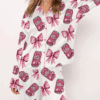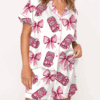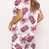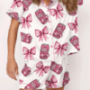 Pink Coquette Pepper Drink Satin Pajama Set For Women