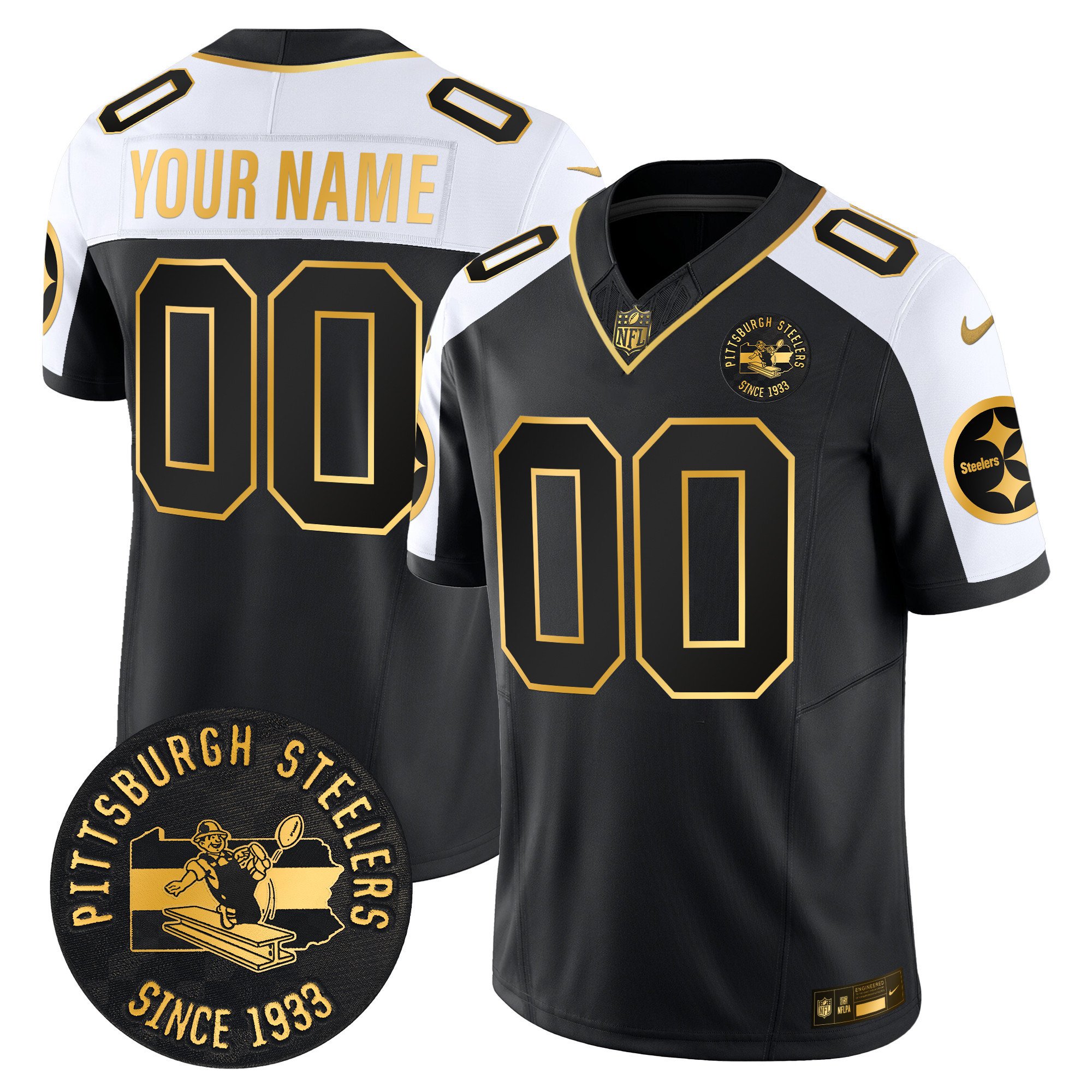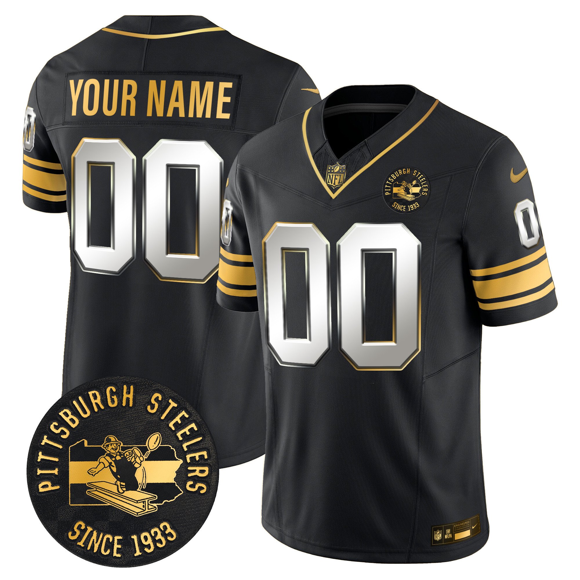 Pittsburgh Steelers Throwback 1933 Patch Gold Vapor Limited Custom Jersey – All Stitched