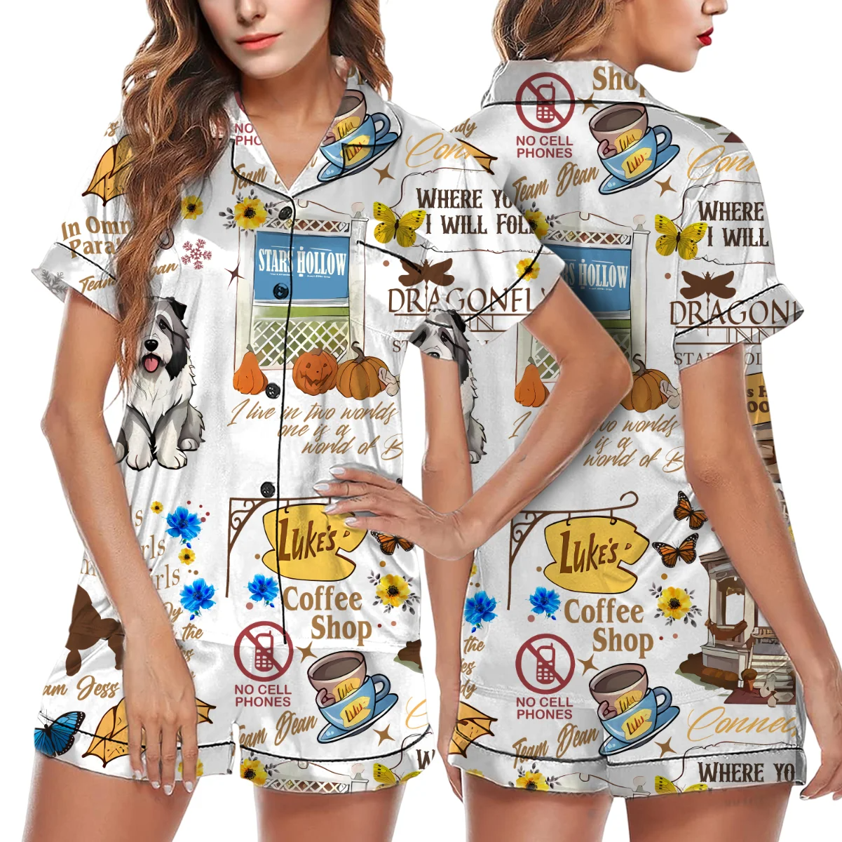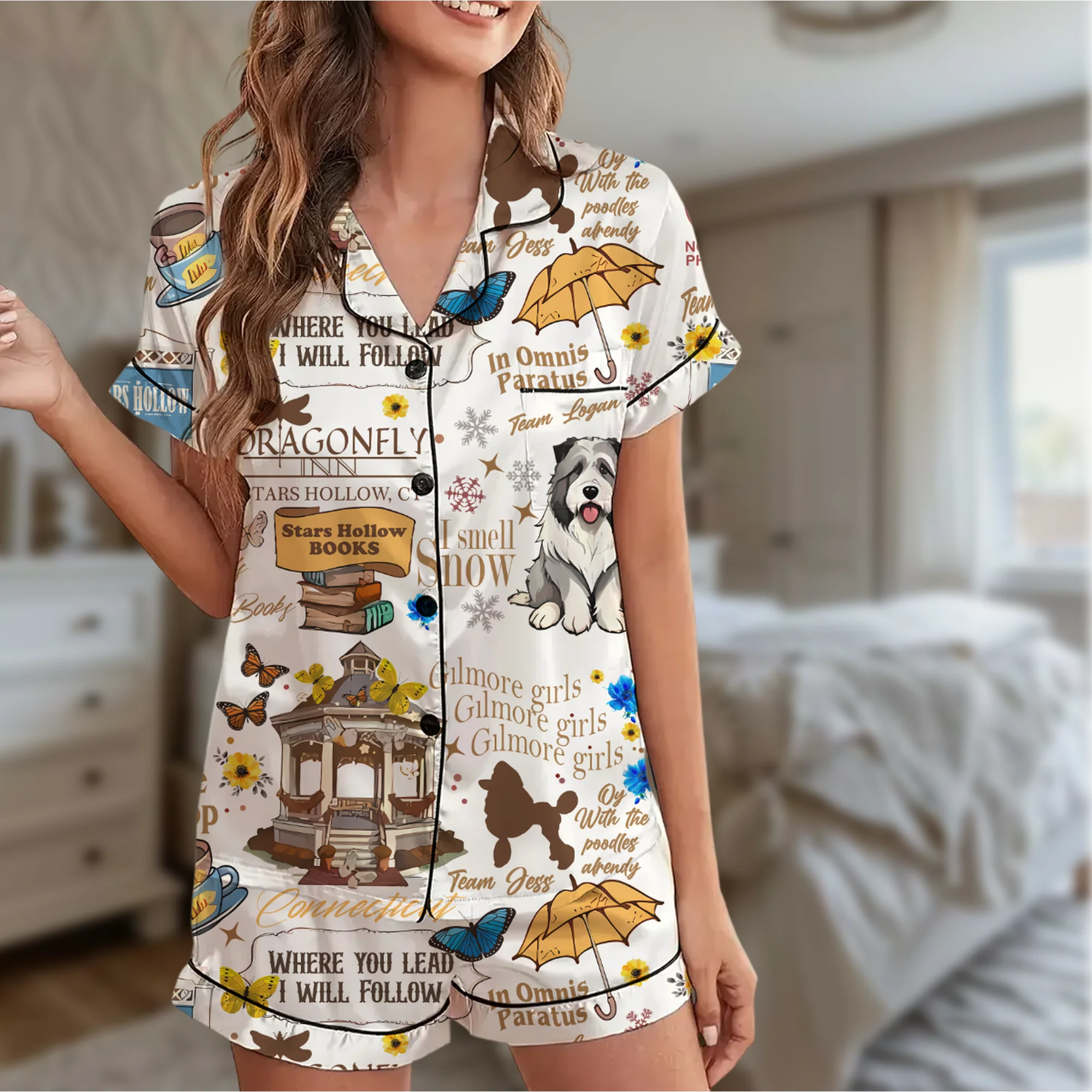 Stars Hollow Satin Pajama Set For Women, Gilmore Girls Pajama Set