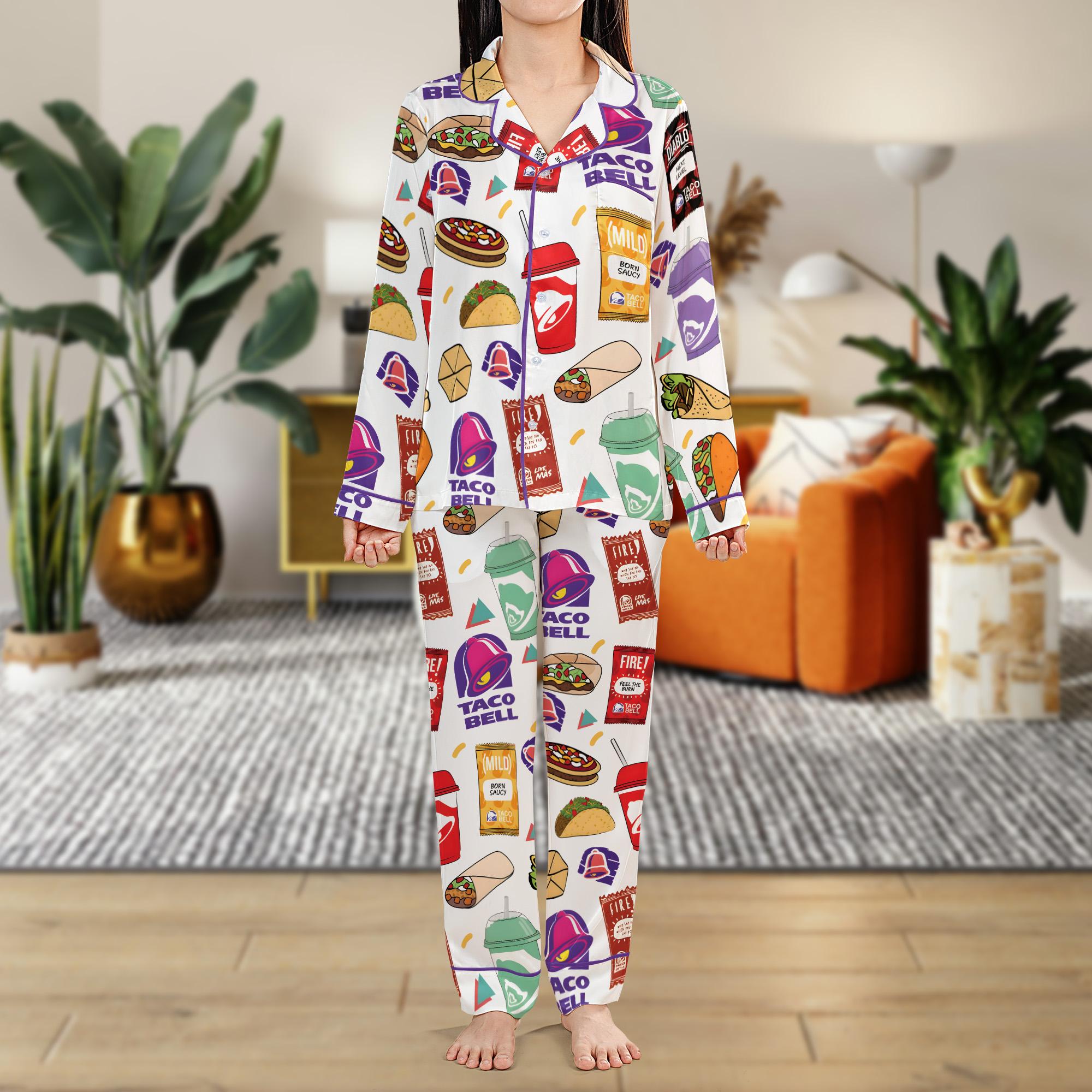 Taco Bell Pajamas Set For Women, Long Comfy Sleep, Comfort Pajama Set Gift