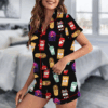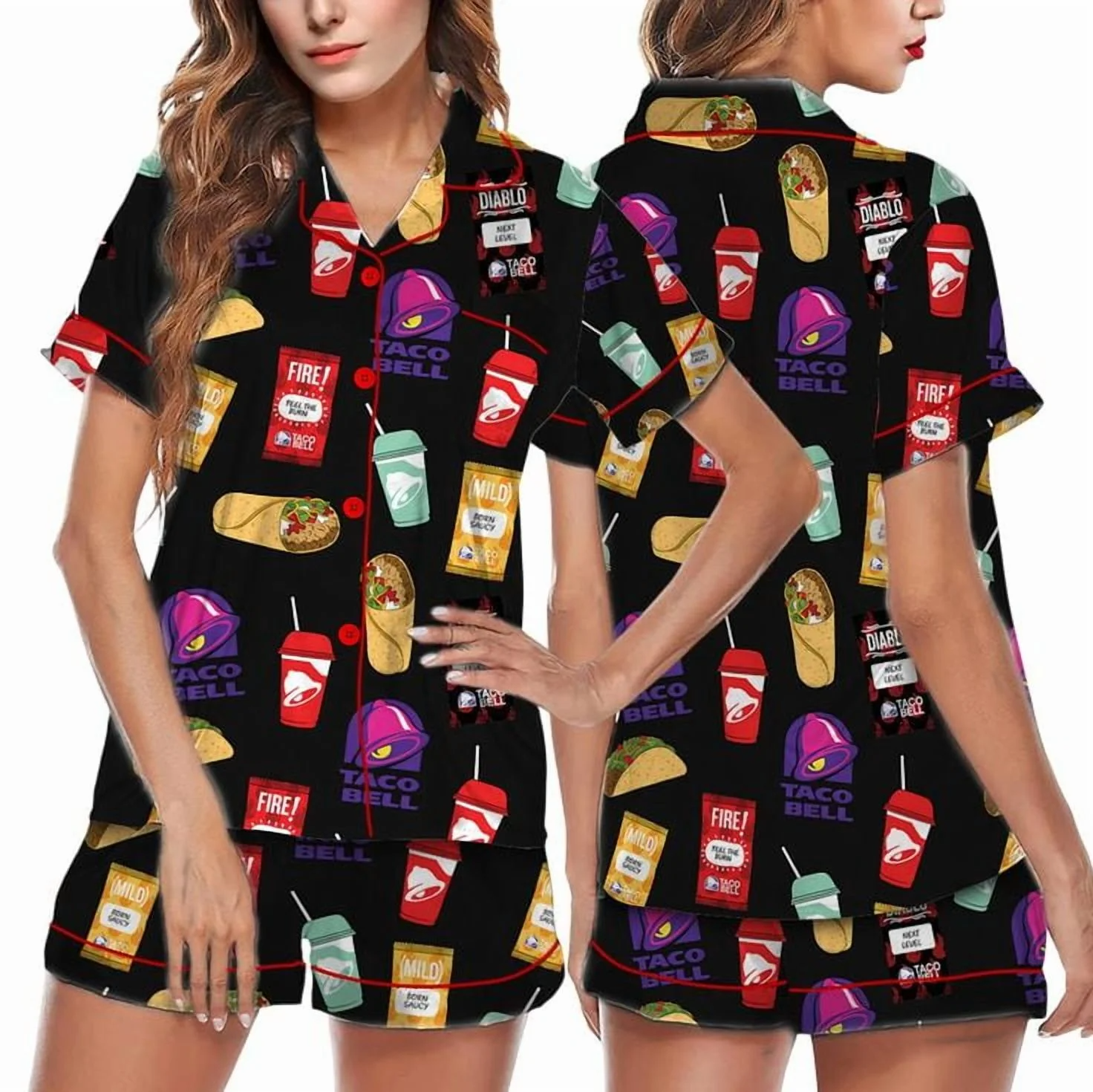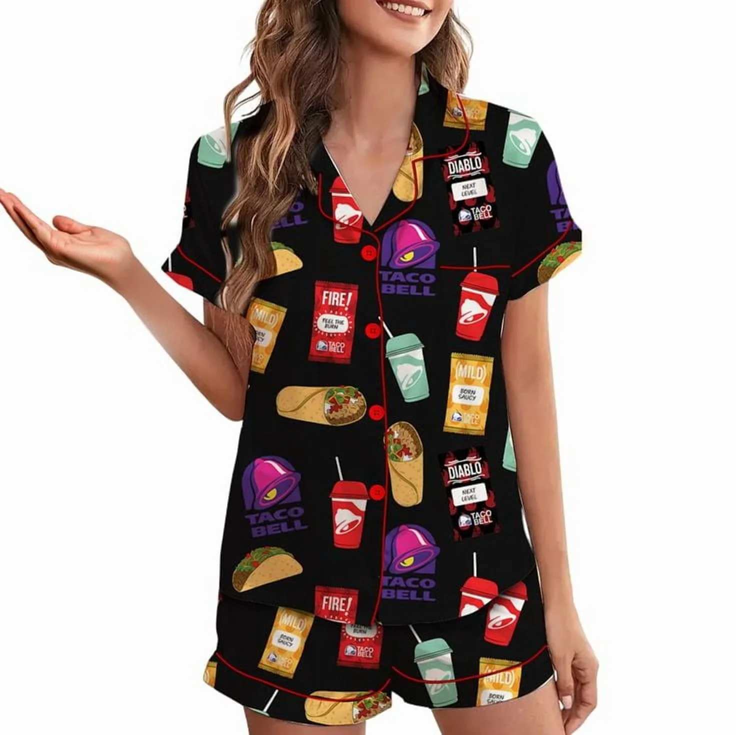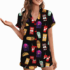 Taco Food Satin Pajamas Set, Print Silky Pajama Set For Women