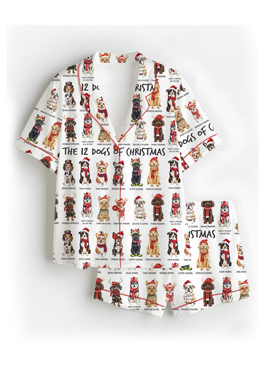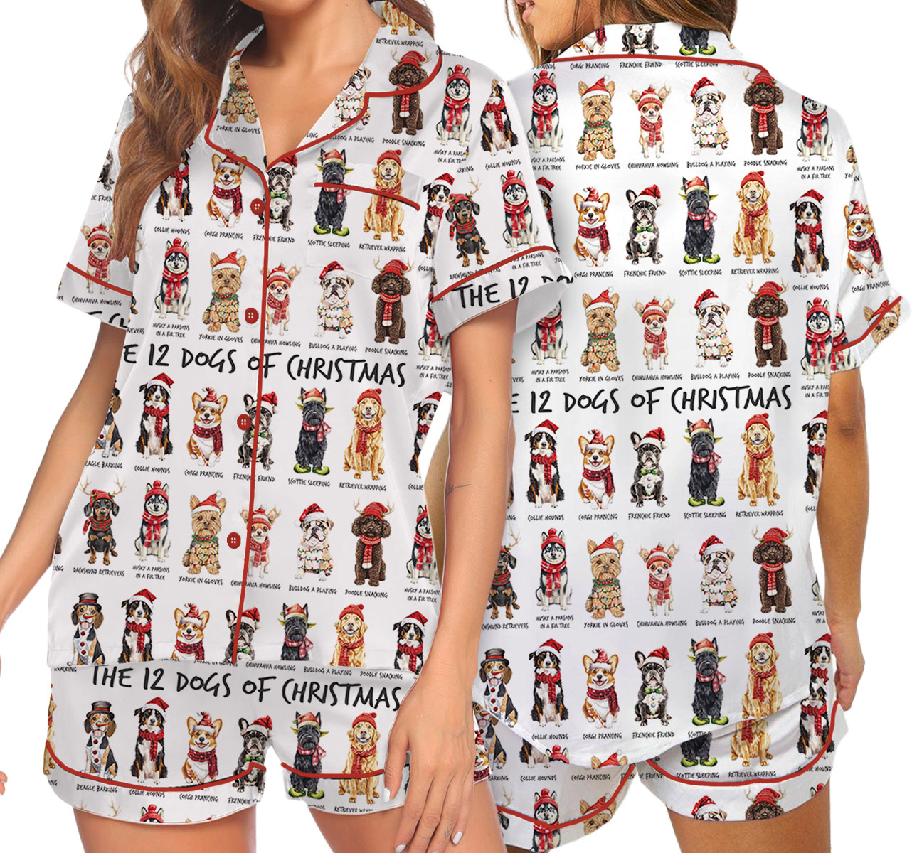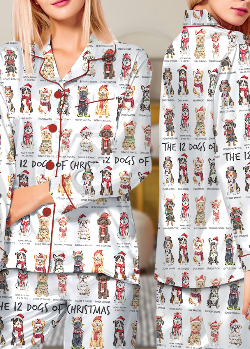 The 12 Dogs Of Christmas Satin Pajamas Set For Women